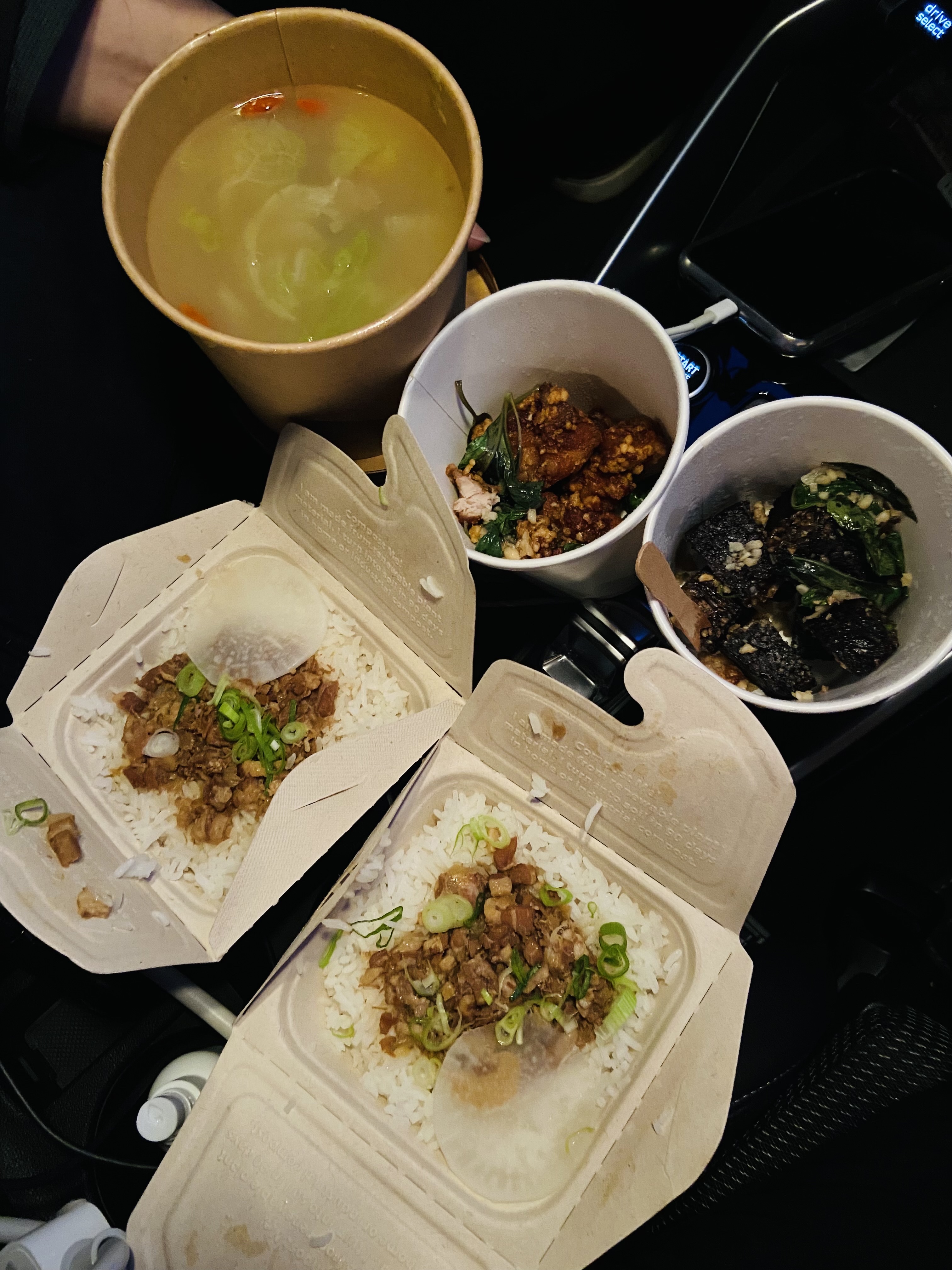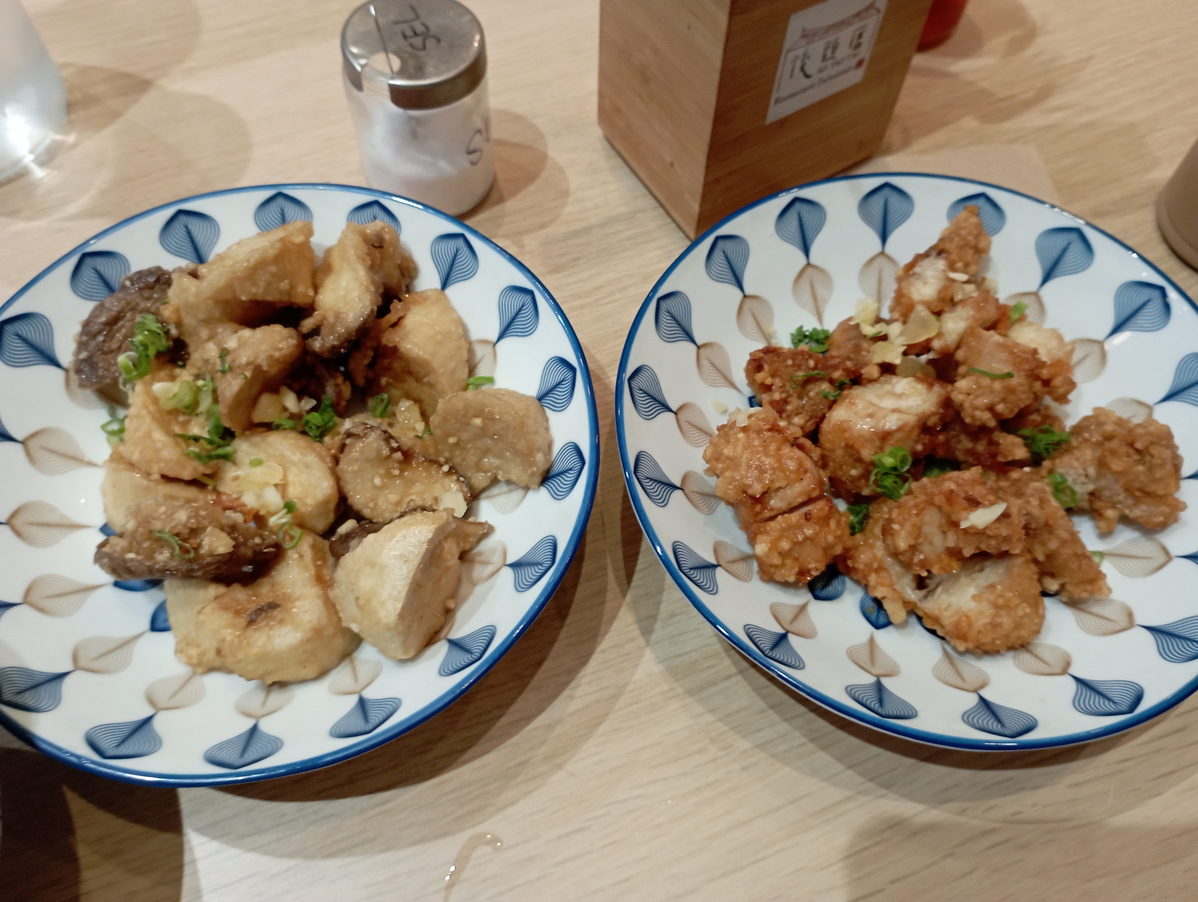 C'était la première fois que je mangeais du poulet croustillant salé et du riz au porc braisé taïwanais. Ils étaient vraiment bons. Les autocollants du pot de légumes étaient un peu cassés.