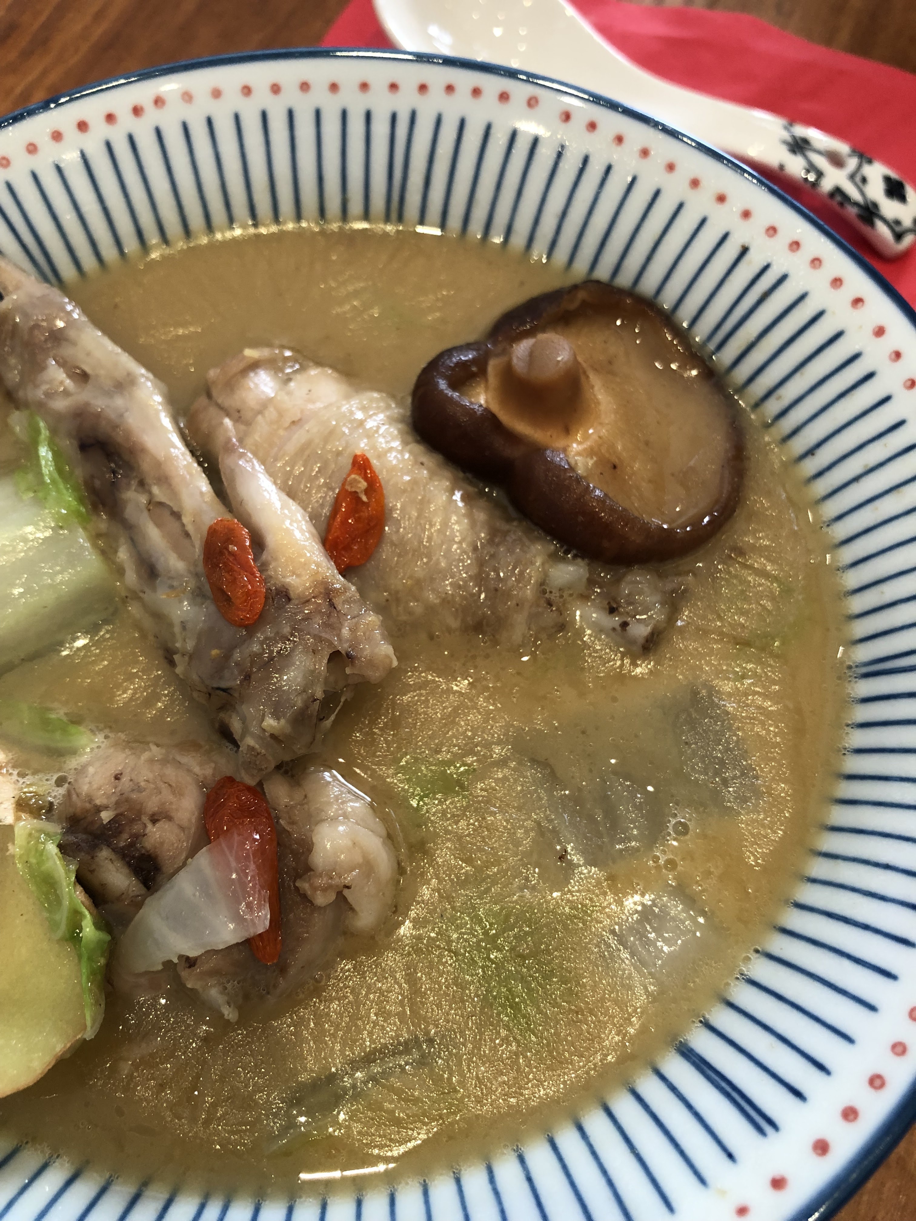 Je voudrais vous recommander de commander leur soupe au poulet C'est super bon et assez original