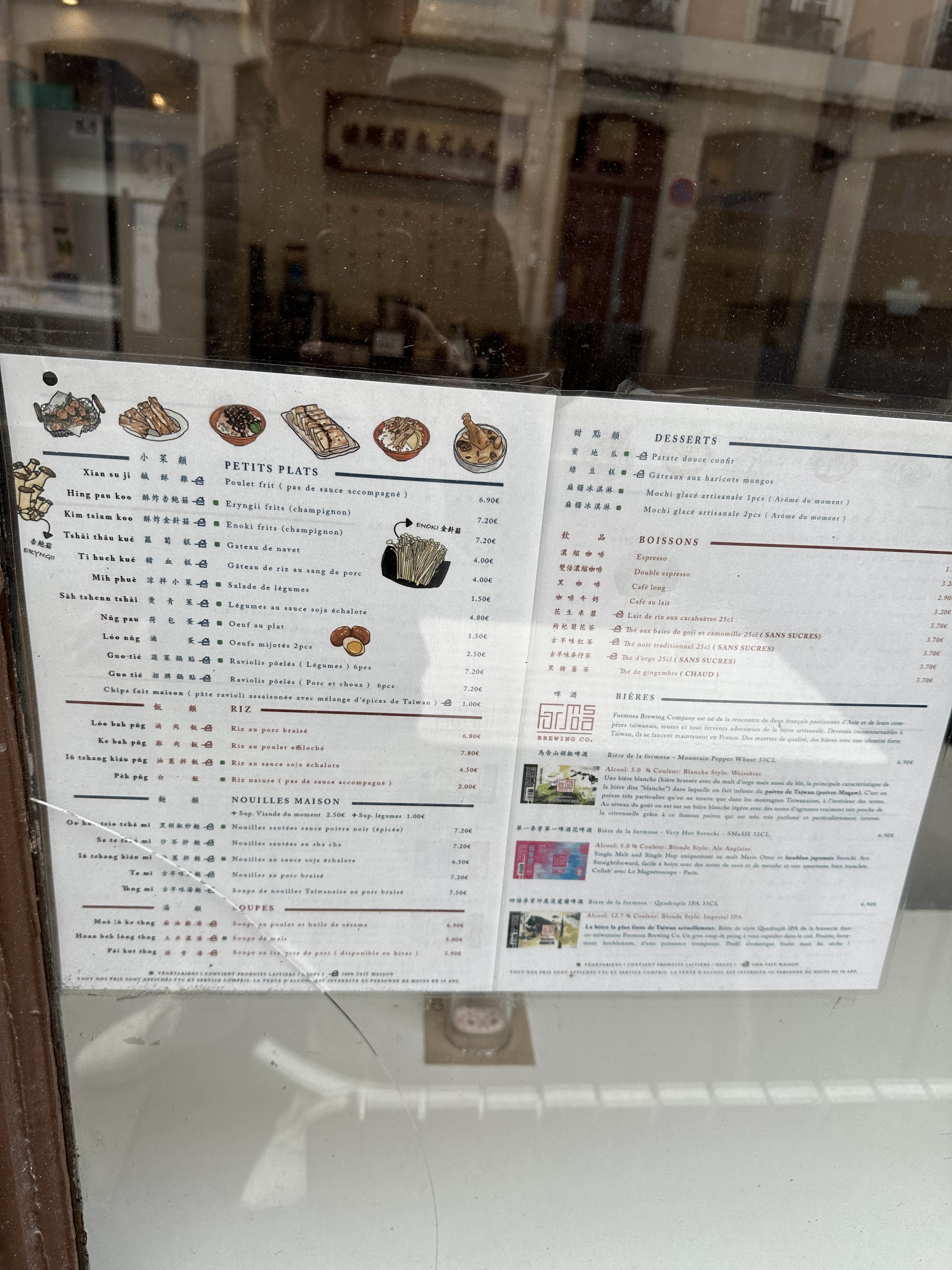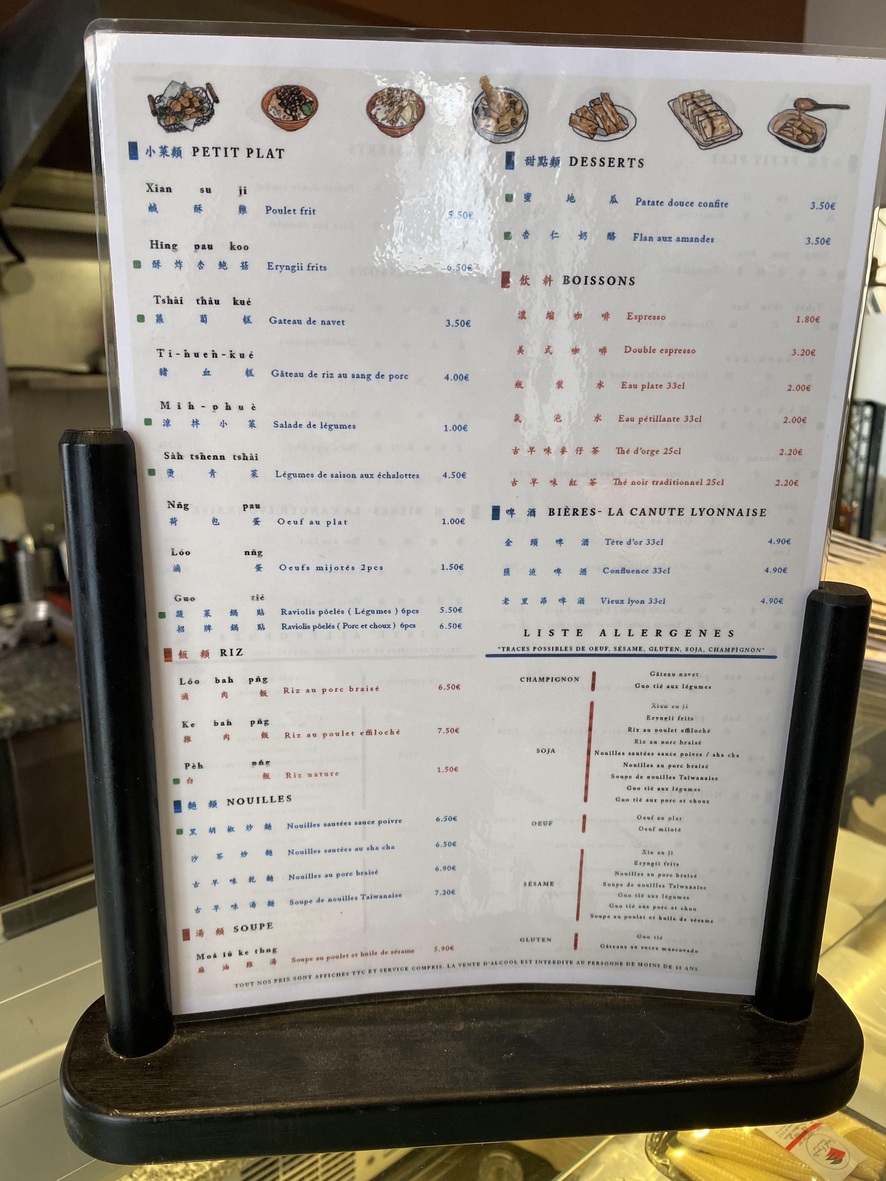 Ils cuisinent des plats de rue simples, le goût est correct et le prix n'est pas très cher. Les heures d'ouverture sont très décontractées et elles ne sont pas ouvertes le week-end. Je voulais commander les boulettes frites signature mais j'ai vu le patron sortir du réfrigérateur un sac de boulettes frites coréennes vendues dans les supermarchés. . . J'ai juste bloqué la pensée. Le menu affiché au mur est juste pour la décoration, aucun des plats n'est sur le vrai menu. . . On dit qu'il n'y a pas d'authentique restaurant taïwanais à Paris, et Lyon ne sait pas qu'il ne sera disponible que l'année du singe. . . Les jeunes créent une entreprise, donnent quatre étoiles pour encourager