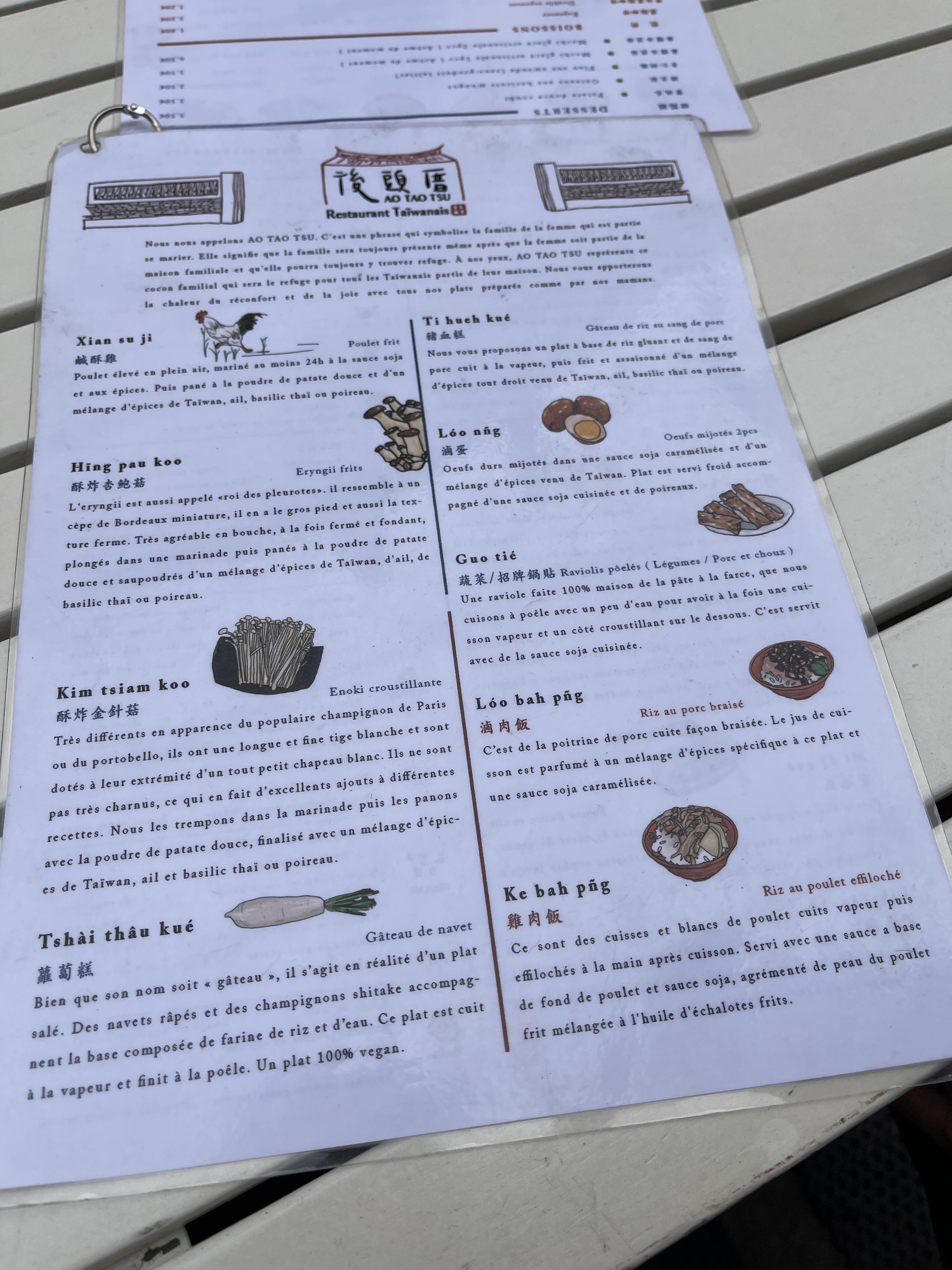 Vraiment excité en voyant qu’il y avait un restaurant taïwanais sur Lyon. Pour une fois que la cuisine Asiatique n’est pas fondue dans un melting-pot culinaire de plusieurs spécialités sous le nom générique et réducteur de « resto chinois » … Visite de l’établissement pour déjeuner. Accueil vraiment sympa, présentation des différents plats. Carte assez limitée mais il y a quelques suggestions en plus. Le menu gagnerait à être un peu plus alléchant. Pour quelqu’un qui n’a aucune idée de ce qu’est la cuisine Taïwanaises, cela pourrait paraît un peu simpliste. Ma sélection, poulet frit, gâteaux de Navet et cube de riz gluant au sang séché frit. Les points positifs: Les arômes sont bien présents et on sent que les produits sont fait maisons. Ne serait-ce que par l’odeur, je me suis revue dans les rues Marchandes de Taipei ! Les sauces sont délicieuses. Points négatifs: Je ne sais pas la raison mais pour les 2 plats frit (poulet et riz gluant) l’extérieur était très dur. Notamment pour le riz gluant, assez compliqué d’attaquer un morceau. C’est dommage car en soit c’était très bon. Pour le poulet, j’aurais bien aimé avoir une sauce pour arroser et peut-être attendrir la panure. Toutefois, le restaurant m’a fait bonne impression et je repasserai pour essayer un plats de riz car je suis certains que les saveurs et savoir faire sont bien présents. Aujourd’hui, je ne met que 3 étoiles mais je serais ravie de changer ma note ! Je vous invite à essayer cette adresse pour voir se développer la cuisine Taïwanaises sur Lyon !