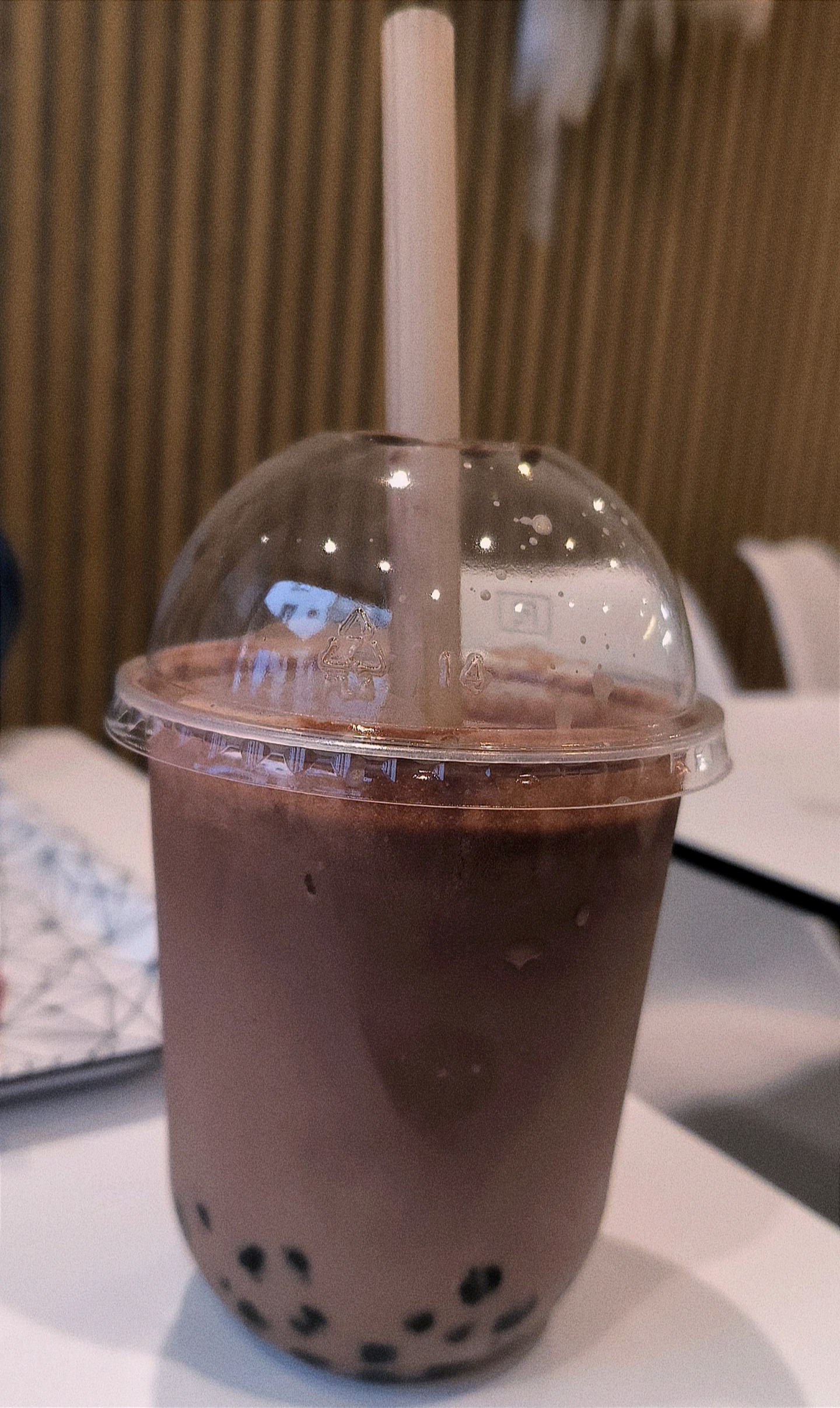 Première visite, et j'ai pris un bubble tea chocolat (5,5€). Le chocolat était vraiment bon avec le lait végétal, seulement cela ne se mélangeait pas très bien.