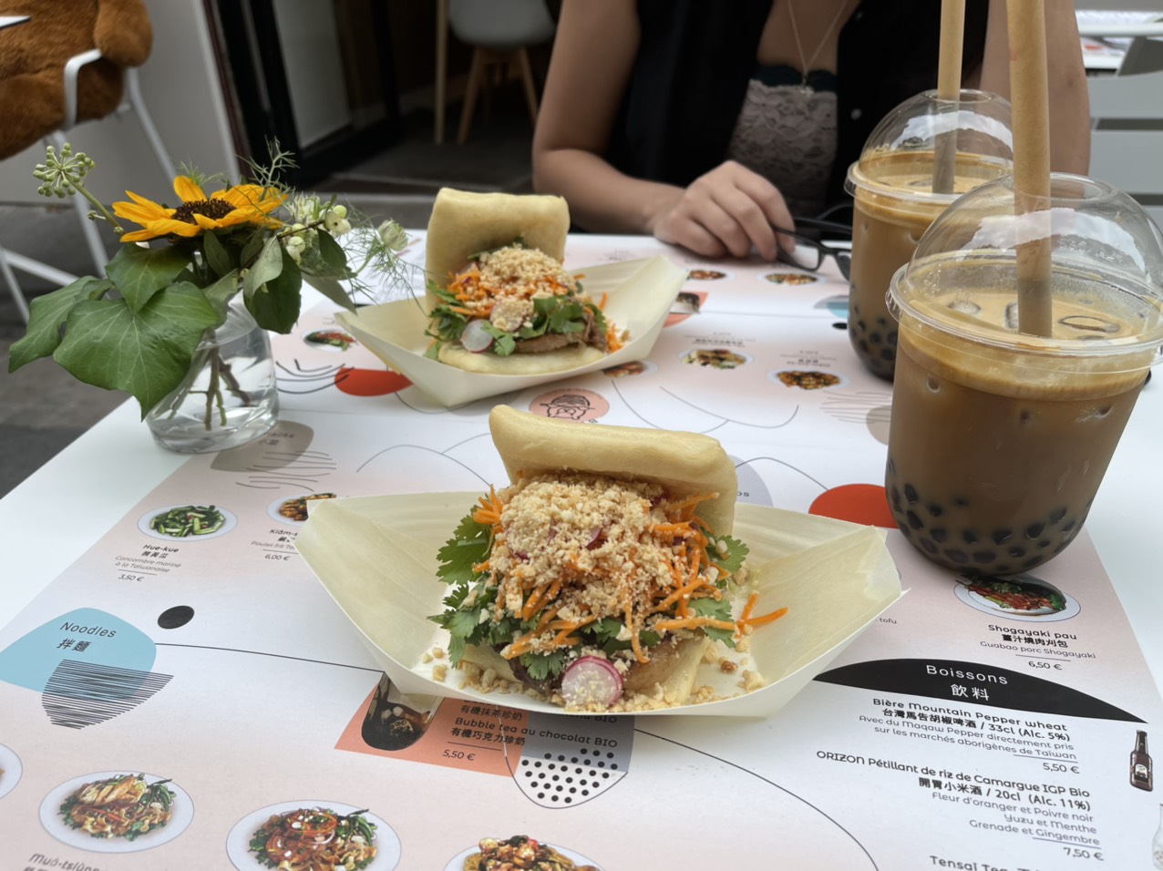 Bubble tea + Bao au canard très bons. Petit bémol sur les pailles en carton qui ne tiennent pas la route dans un bubble tea chaud. Beaucoup de monde sur place un lundi midi.