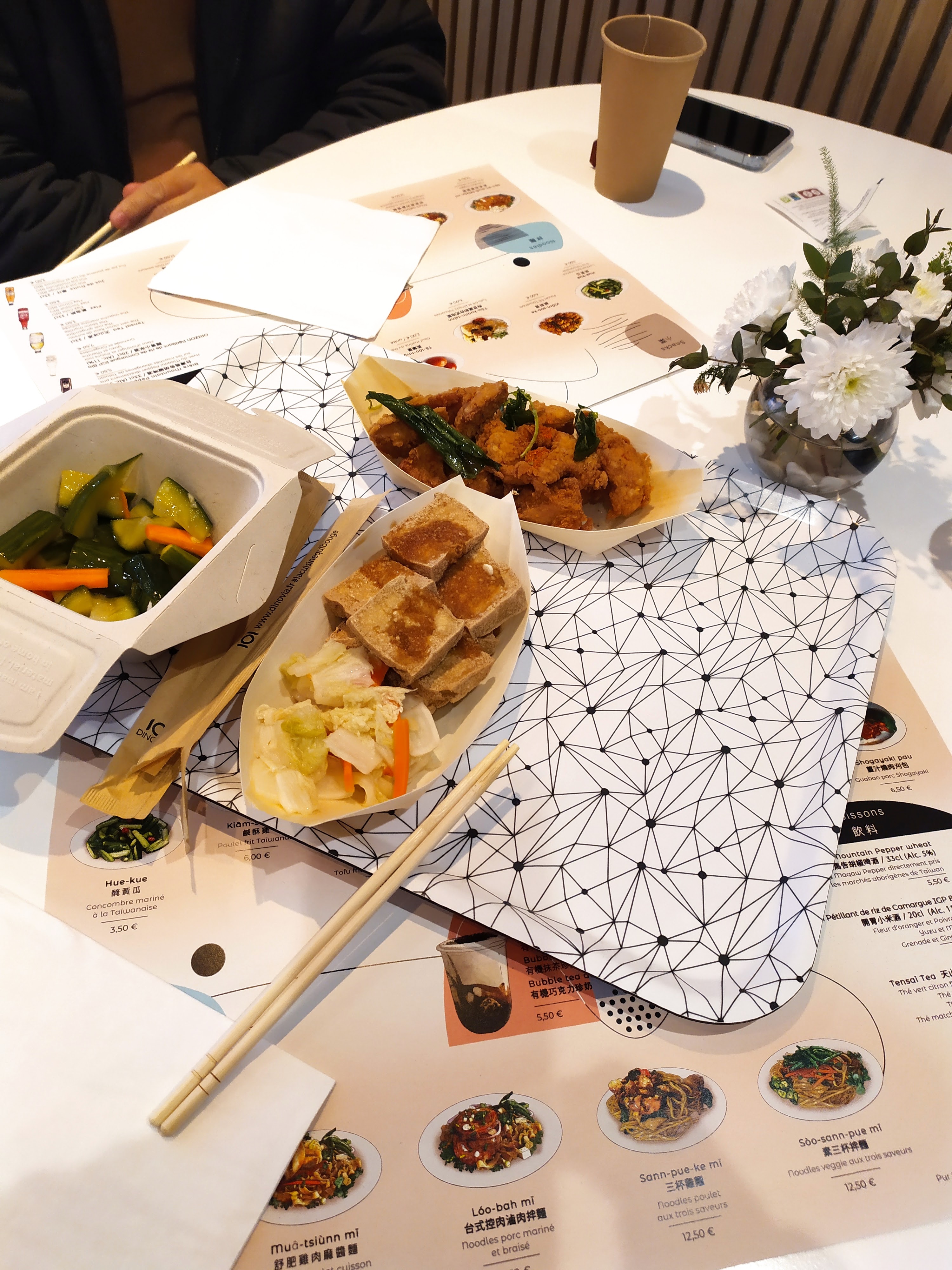 Découverte de la cuisine taïwanaise à travers différents mets : poulet frit, gua baos, noodles ou encore bubble tea ! Il y en a pour tous les goûts, avec ou sans viande. Tout est excellent et le service au top.