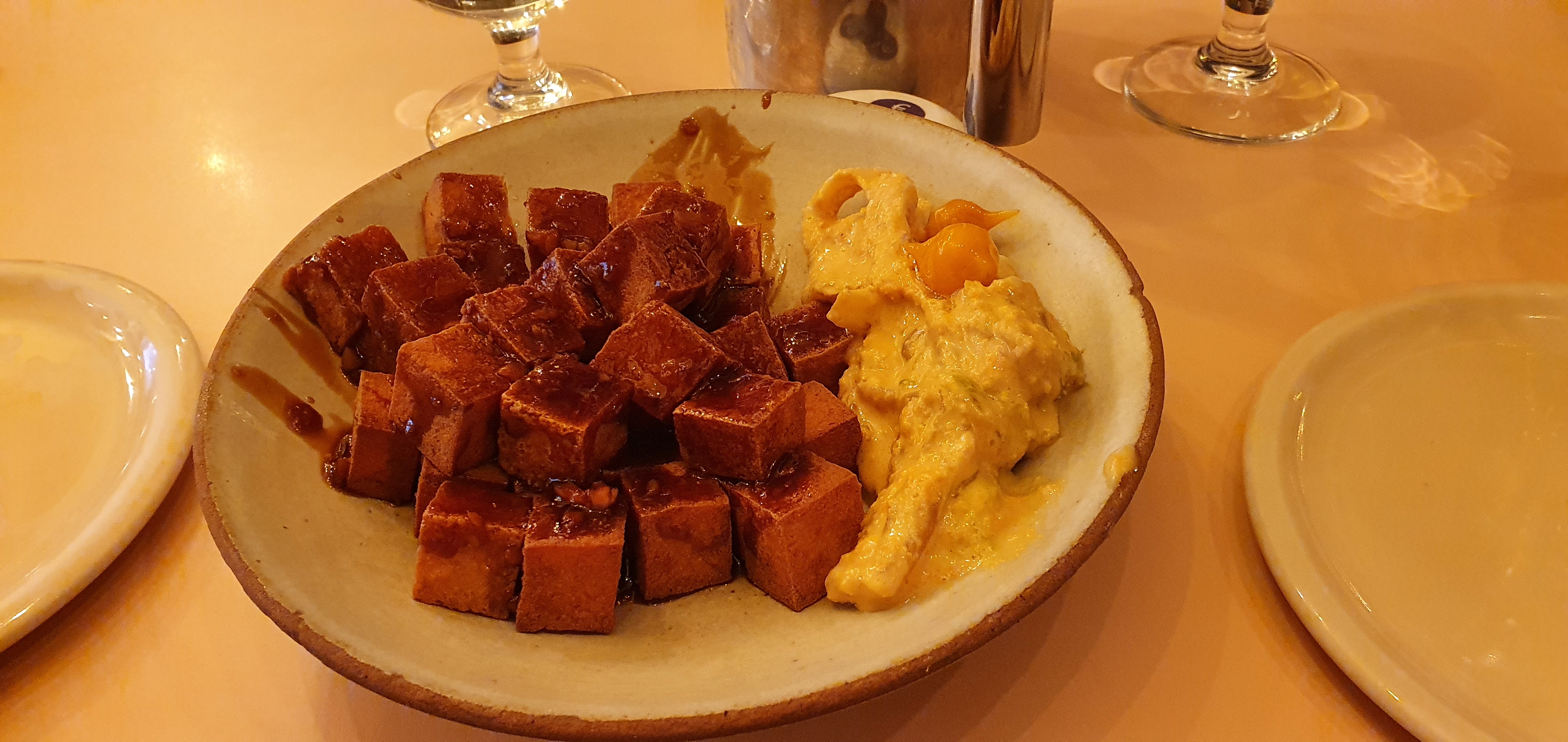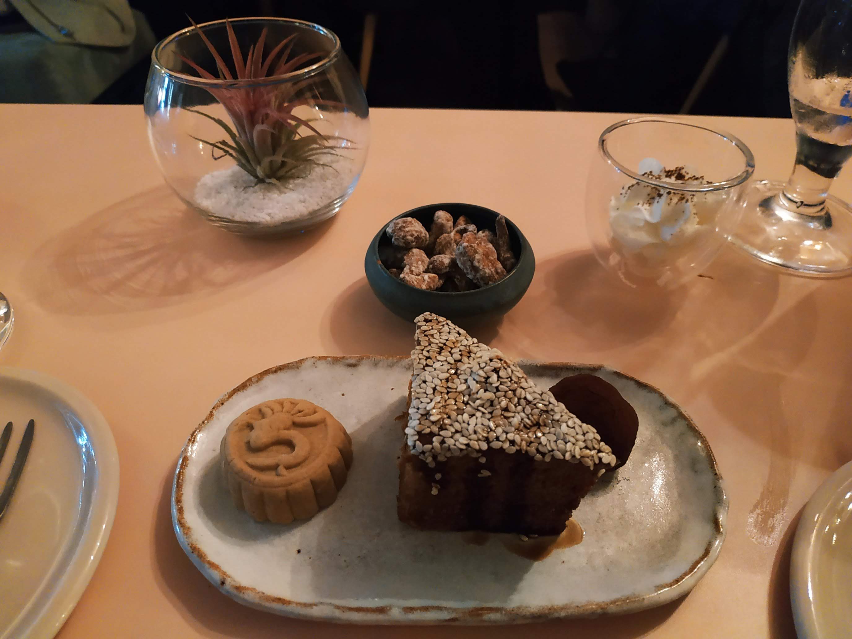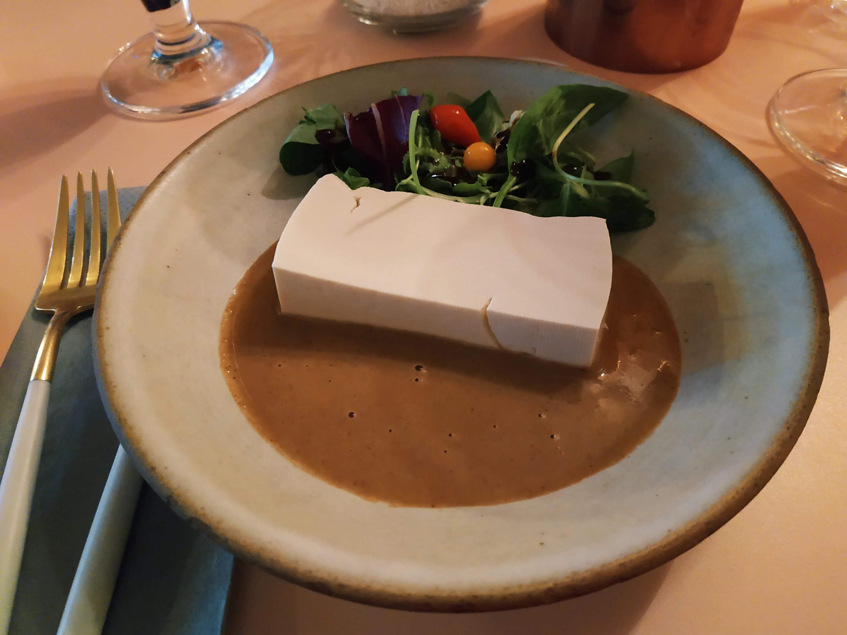 J'ai adoré... L'ambiance cool, le service pro et précis, les plats, un tofu chaud exceptionnel, le sans gluten super bien géré, le dessert hyper original (photo) Bref, retour obligatoire !