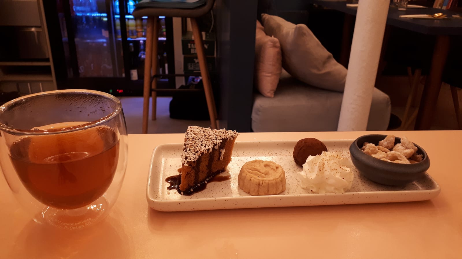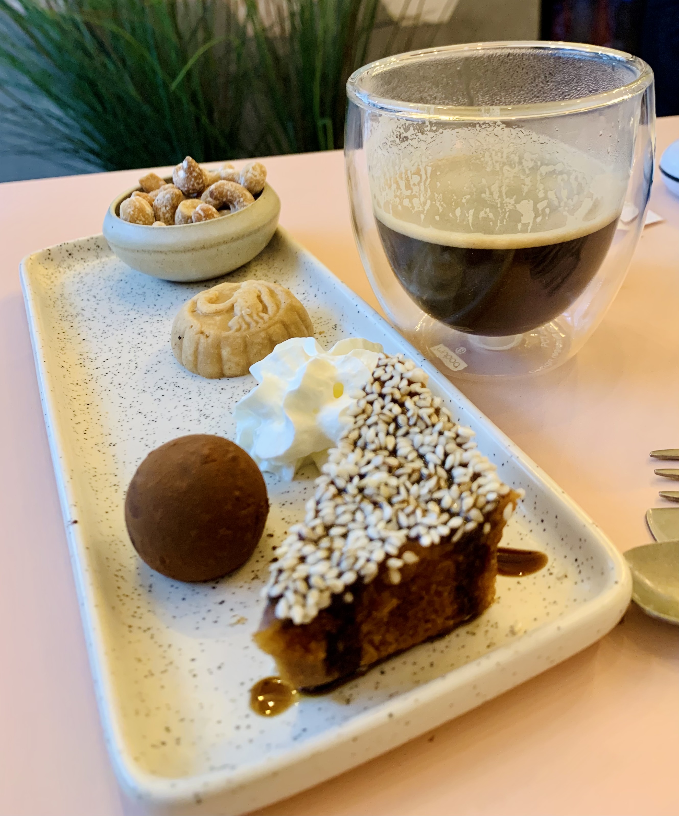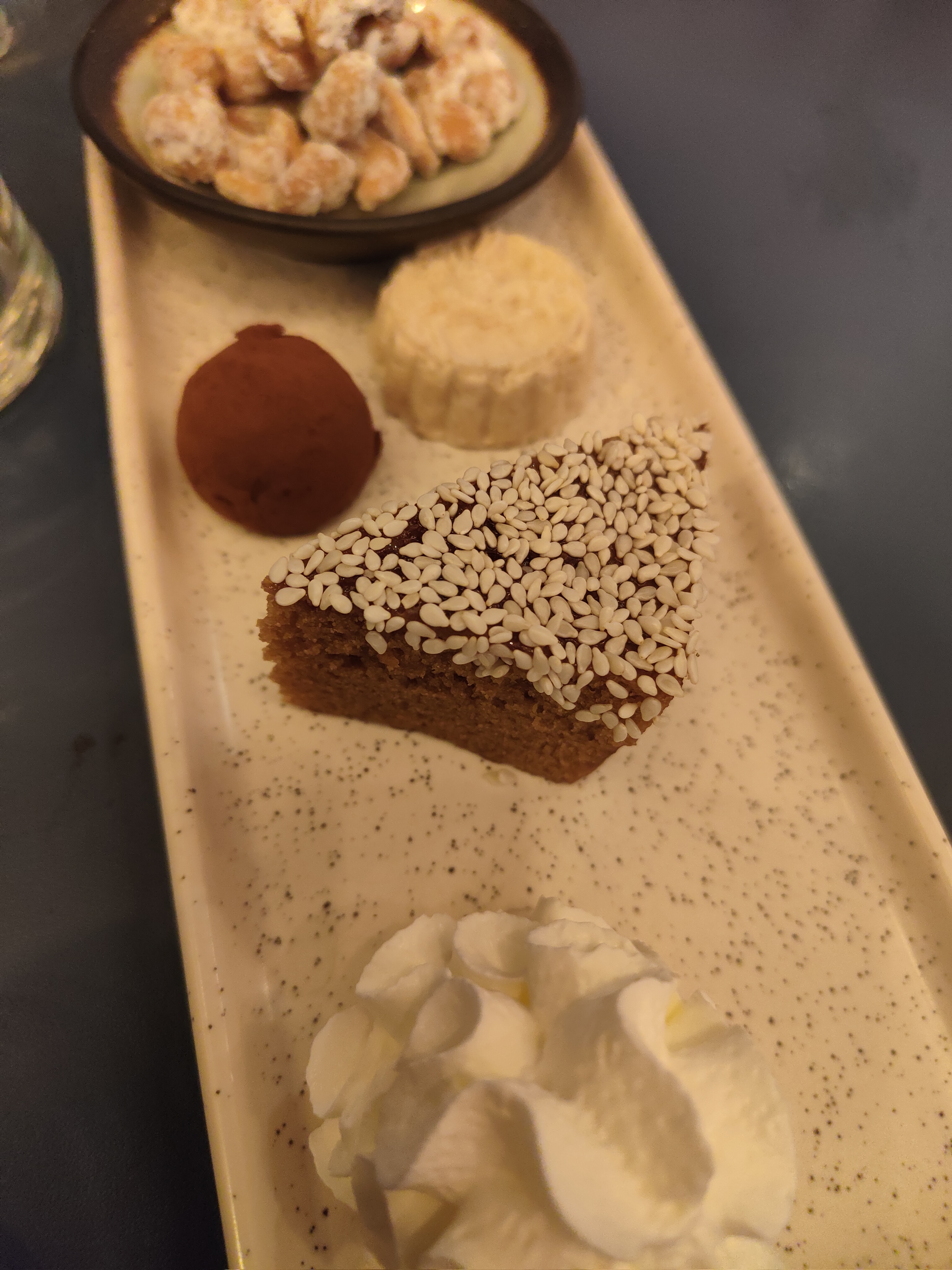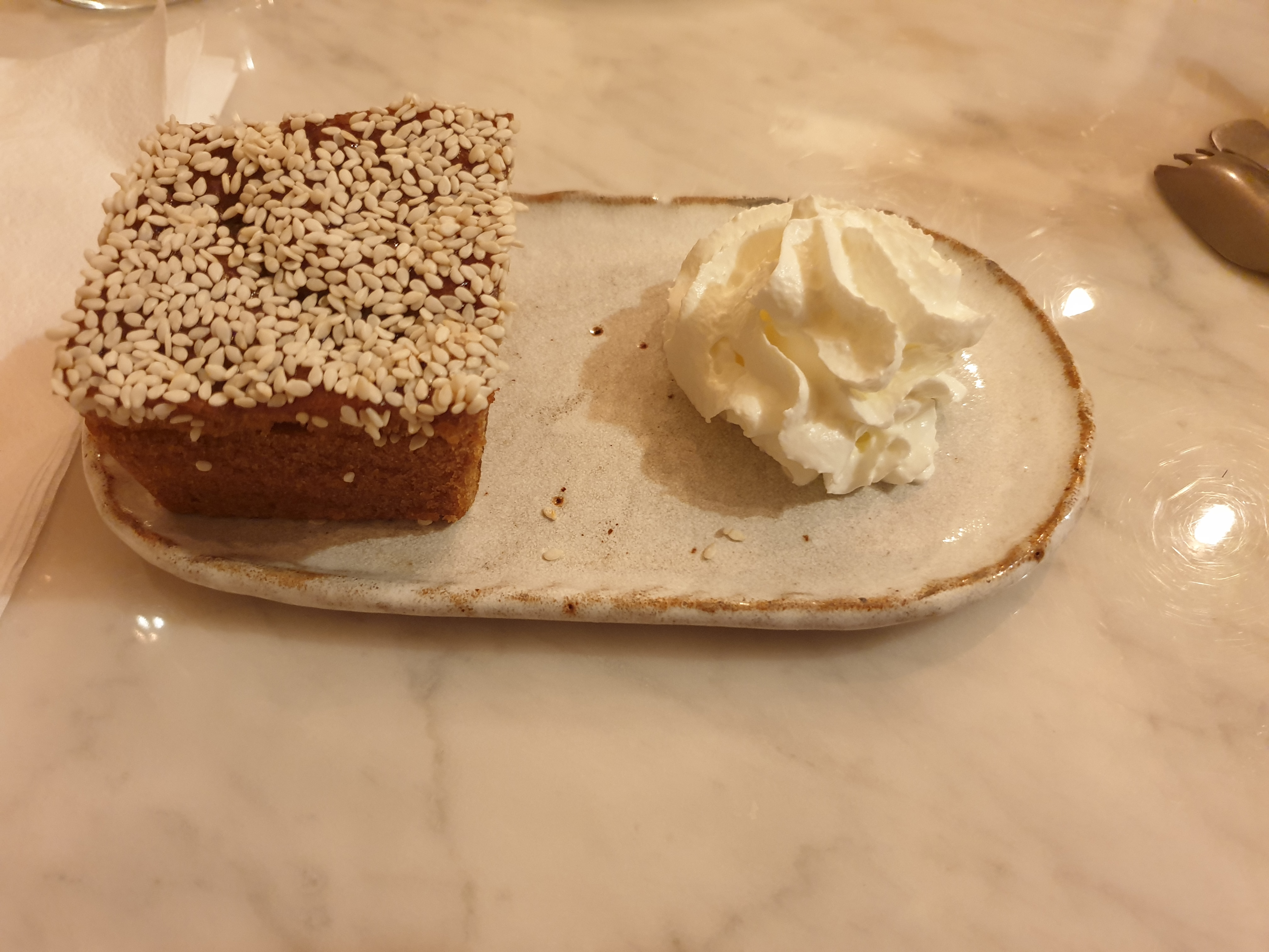 J'ai adoré... L'ambiance cool, le service pro et précis, les plats, un tofu chaud exceptionnel, le sans gluten super bien géré, le dessert hyper original (photo) Bref, retour obligatoire !