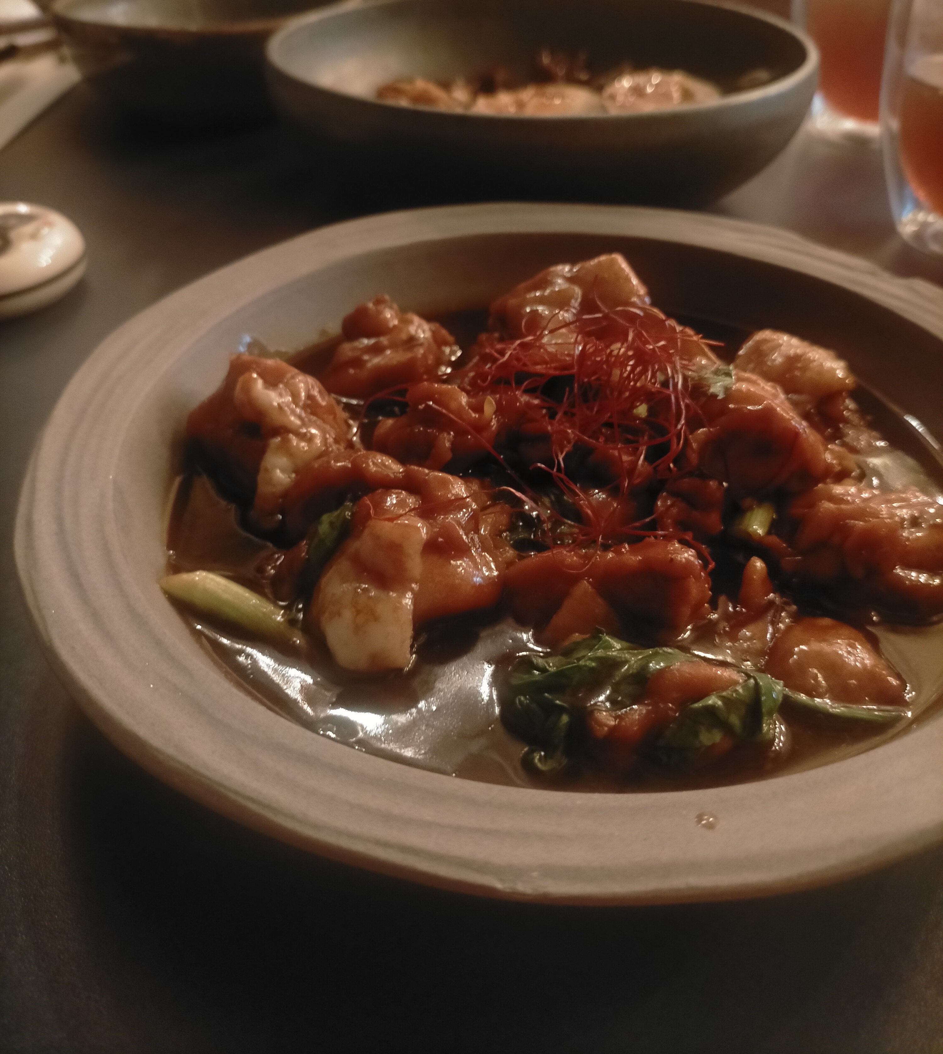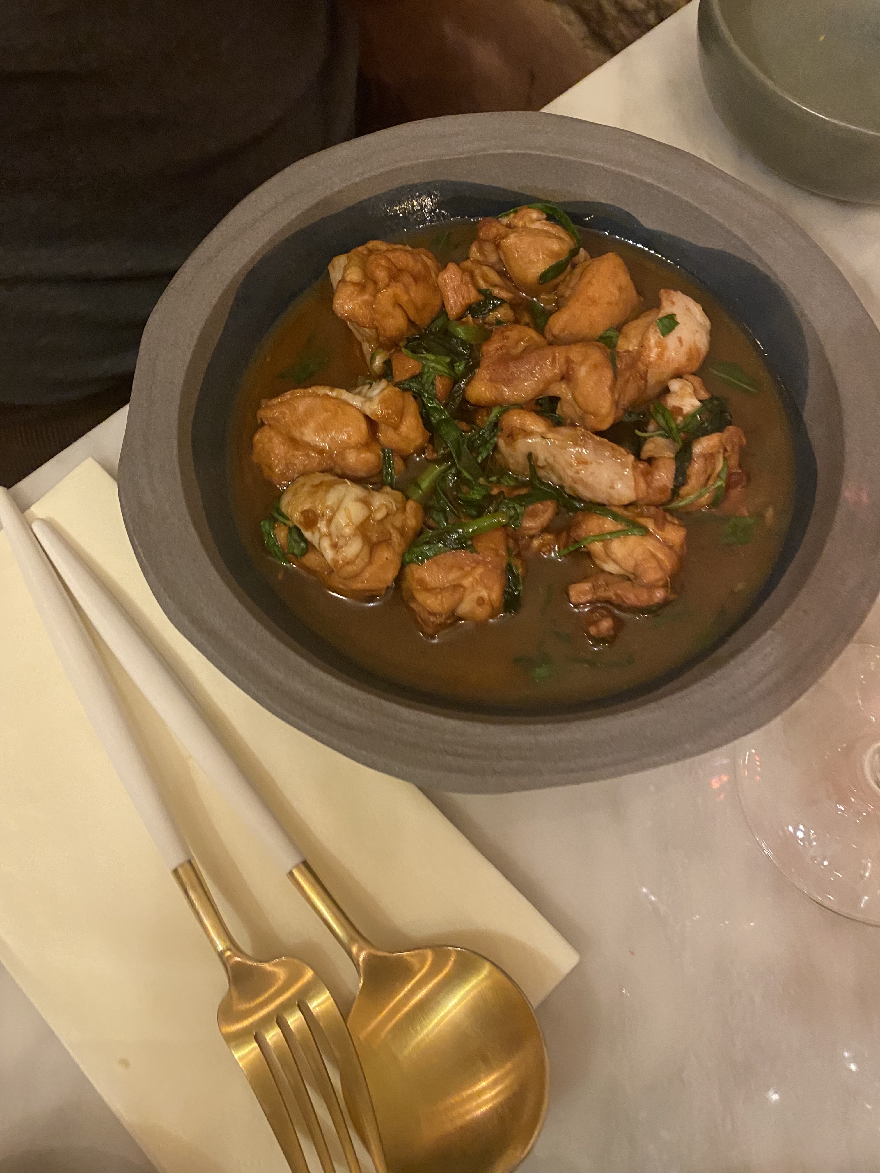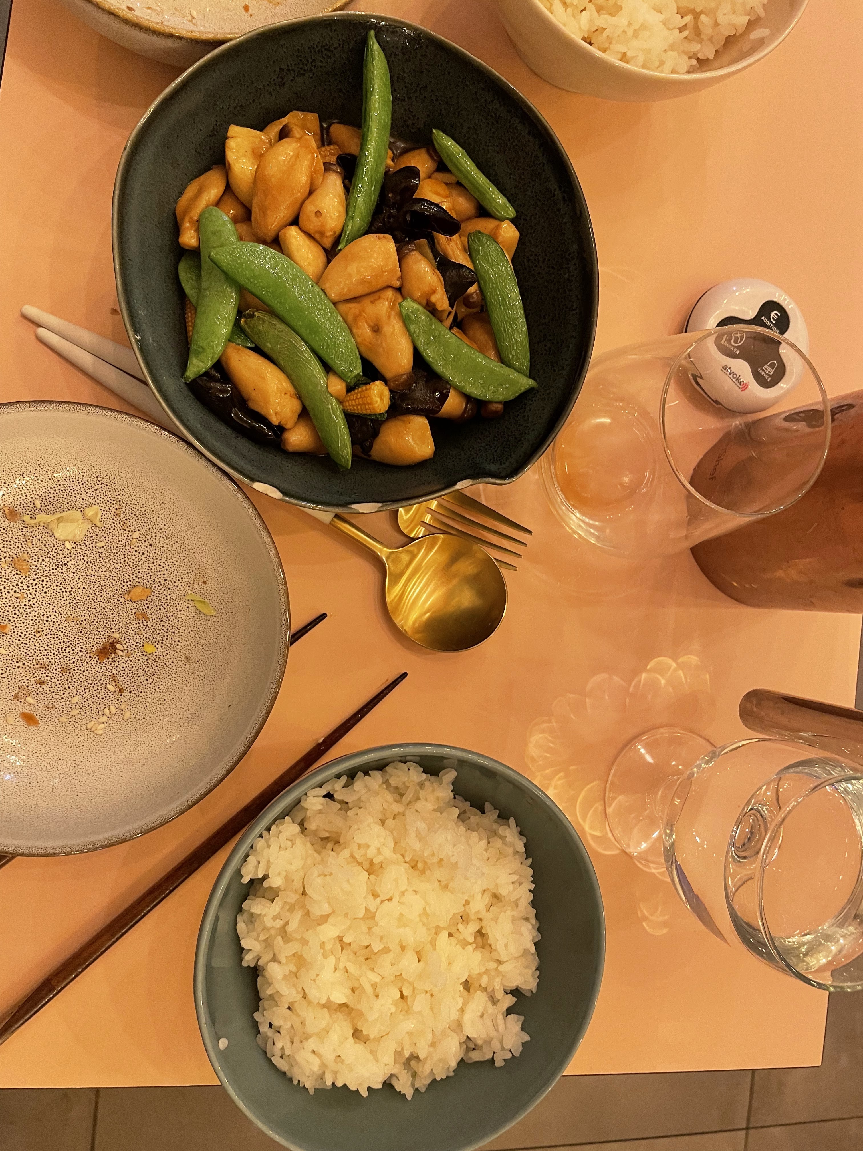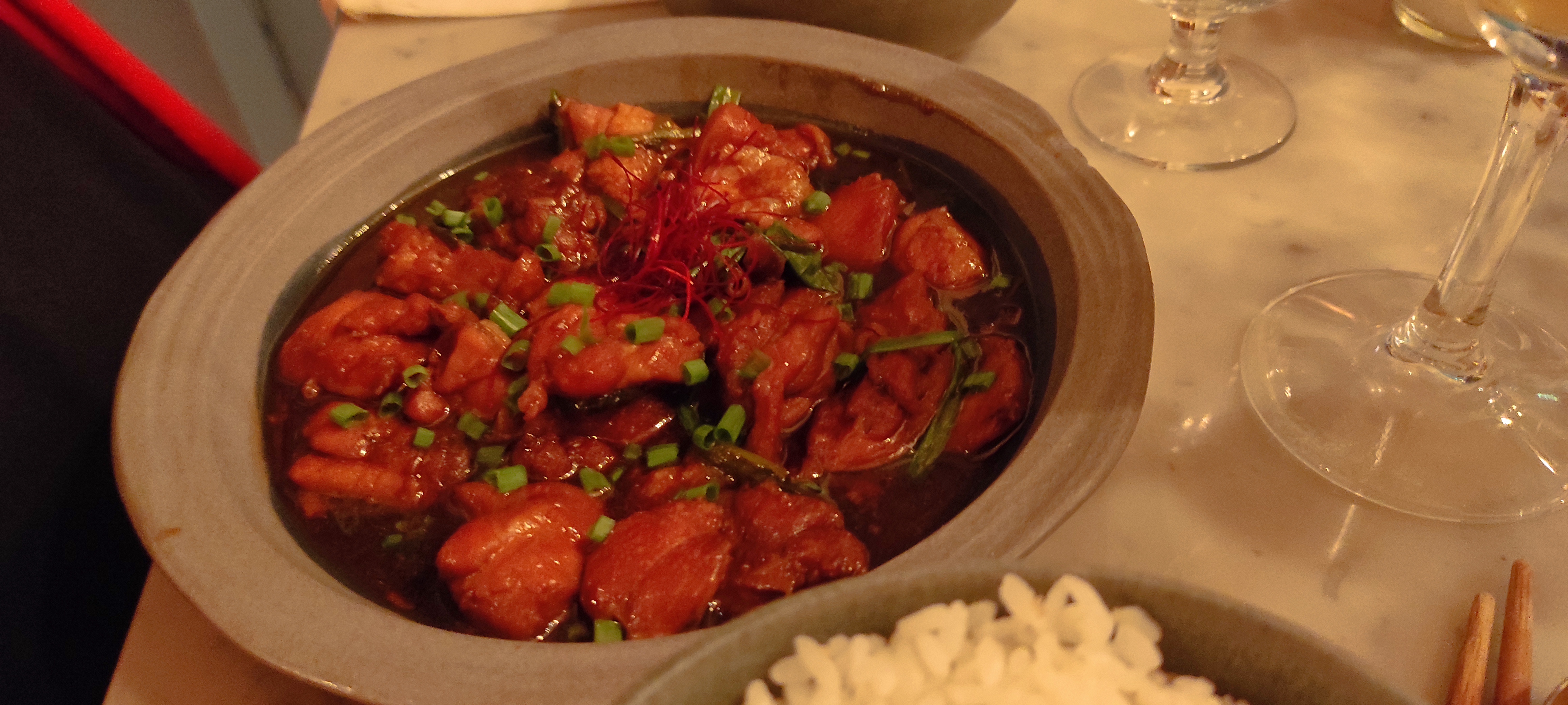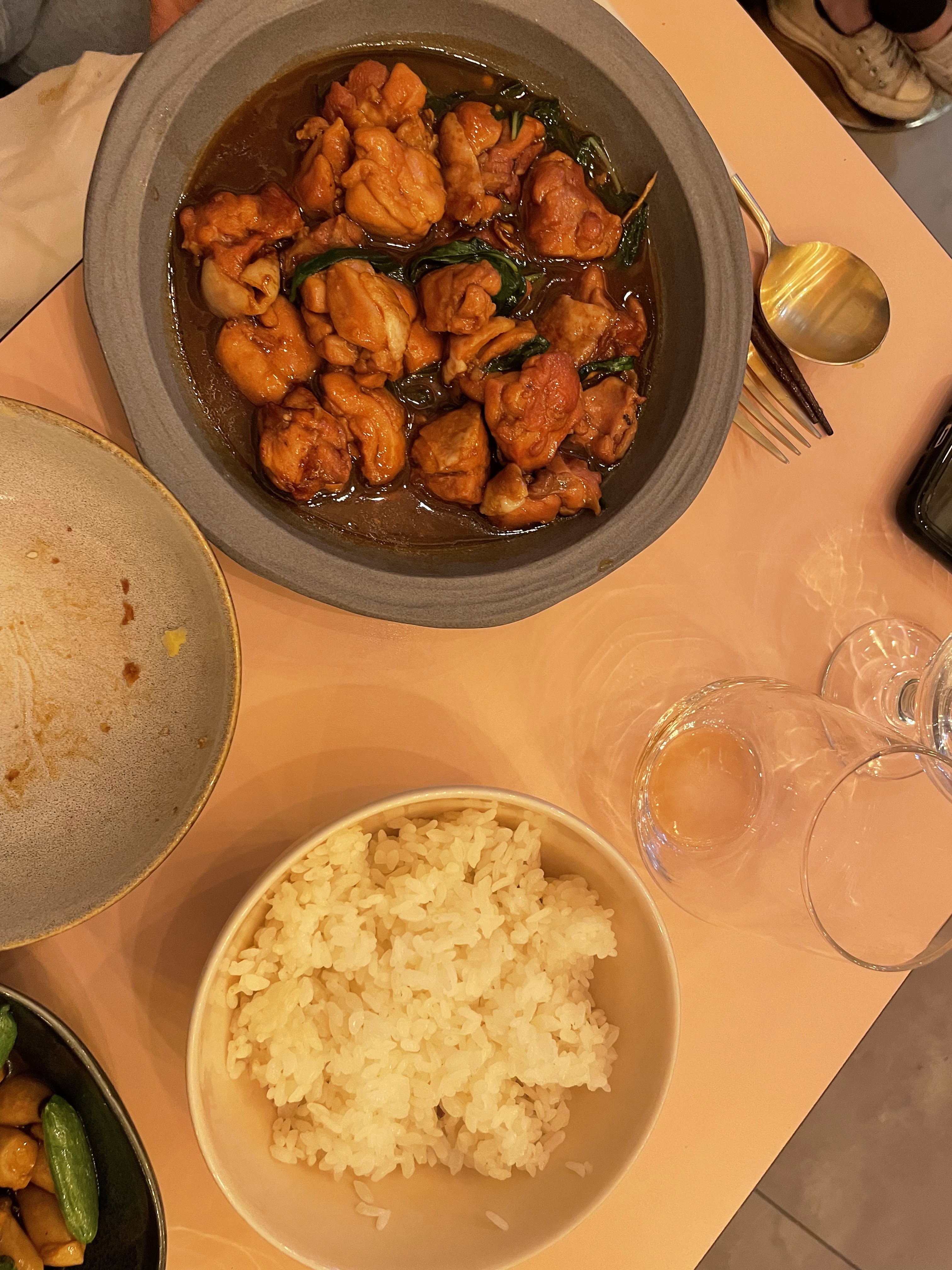 Le décor était sympathique et très agréable. Les serveurs sont très polis et attentionnés et enfin le temps d'attente était raisonnable. Malheureusement les quantités sont largement insuffisantes pour les plats à partager. Pourtant le serveur nous avait certifié qu'il y en aurait assez pour trois. Les crevettes et les palourdes étaient excellentes mais nous aurions apprécié que le riz soit offert en accompagnement. D'ailleurs le prix de la coupelle (3€) me semble un peu cher au vu de la quantité servie.