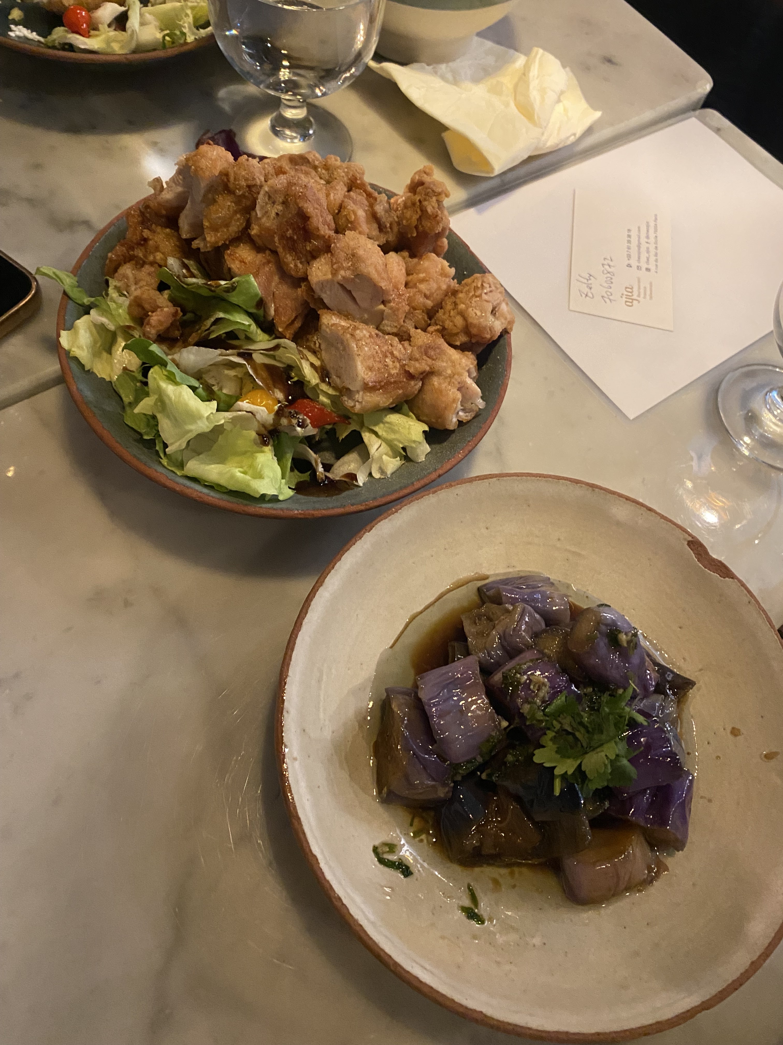 Vraiment un super dîner ! Tout d'abord nous avons été reçues comme des reines. On nous a donné tout plein d'explications sur le restaurant, les plats, leur composition, cuisson, etc. On nous a également super gentiment guidé par rapport aux plats sans gluten. L'équipe est vraiment disponible. Les plats étaient délicieux, j'ai pu retrouver les saveurs de Taiwan, énooorme big up aux aubergines marinées qui est déjà un de mes plats asiatiques préférées, mais alors là, un dé-li-ce, elles fondent en bouche, le goût est vraiment là. L'atmosphère générale est très chill et cosy. (Pour les amateurs d'alcool, Chez Ajia propose du whisky Kavalan, provenant de la première distillerie taiwanaise du même nom et qui se trouve dans le comté de Yilan (d'où le nom Kavalan - groupe ethnique de cette région).) Merci à toute l'équipe pour ce super accueil et très belle soirée !