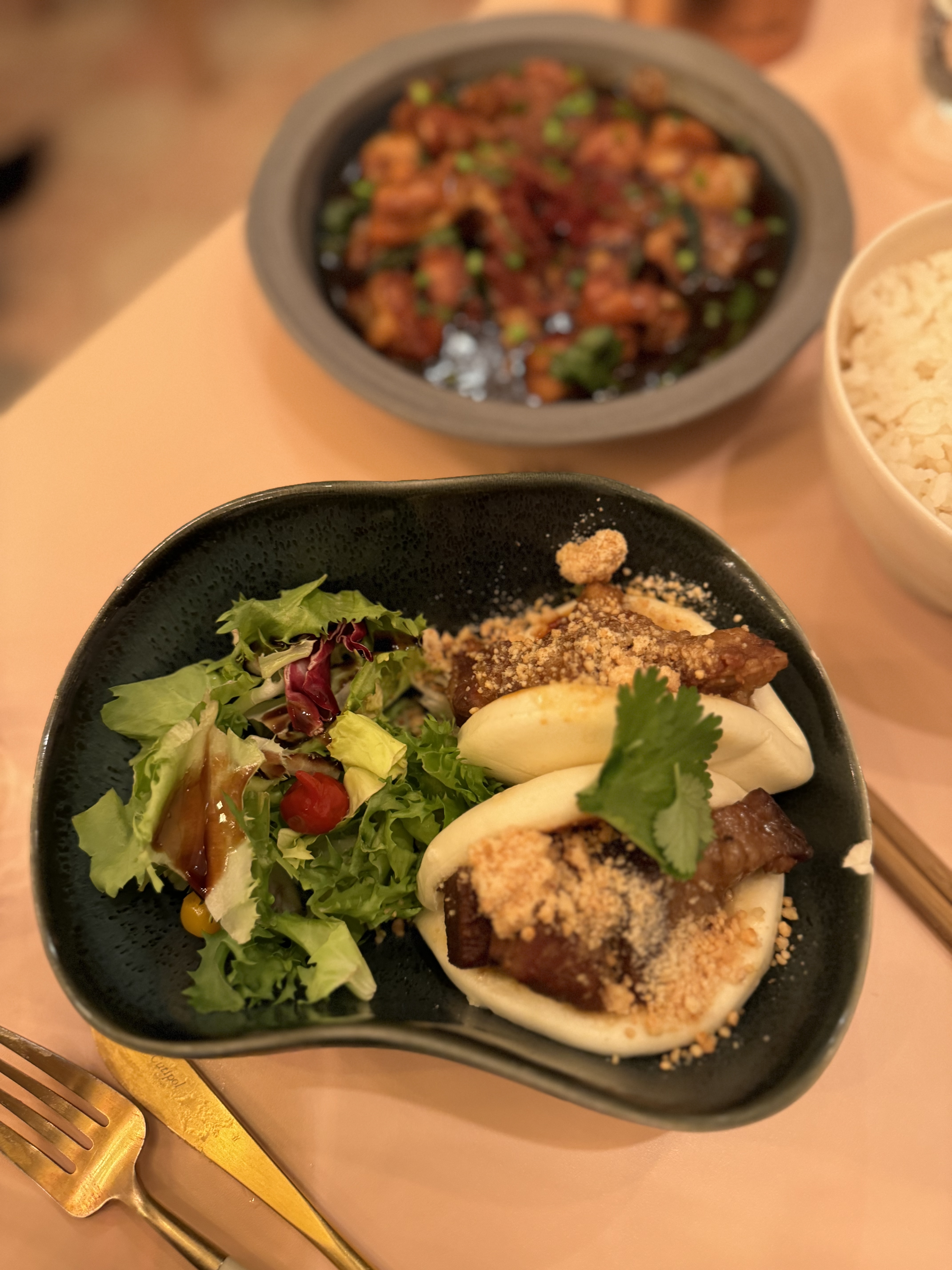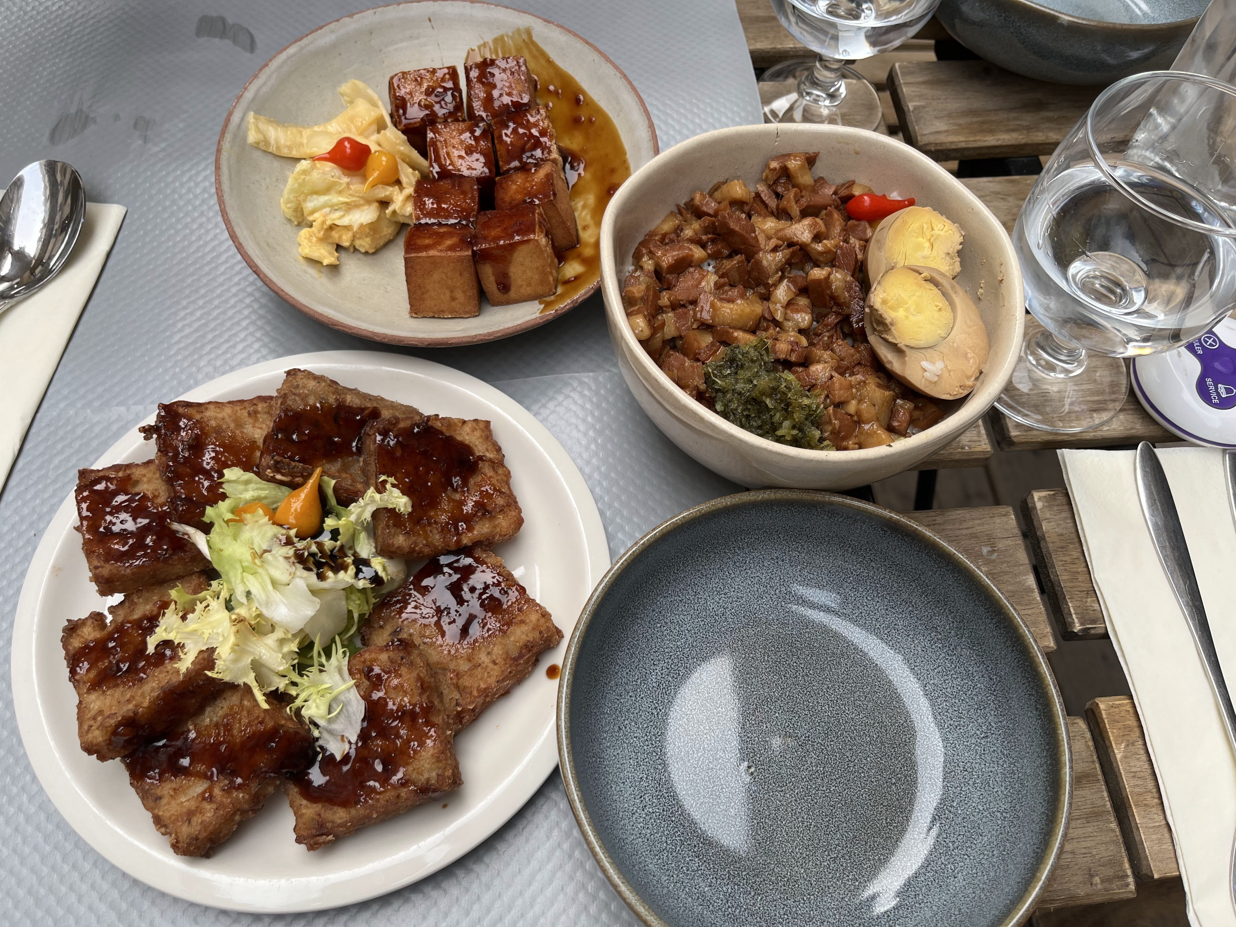 Énorme coup de cœur pour cette adresse ! Une carte variée qui nous fait voyager à Taïwan tout au long du repas. Mention spéciale pour le gâteau de radis blanc et le gua bao !