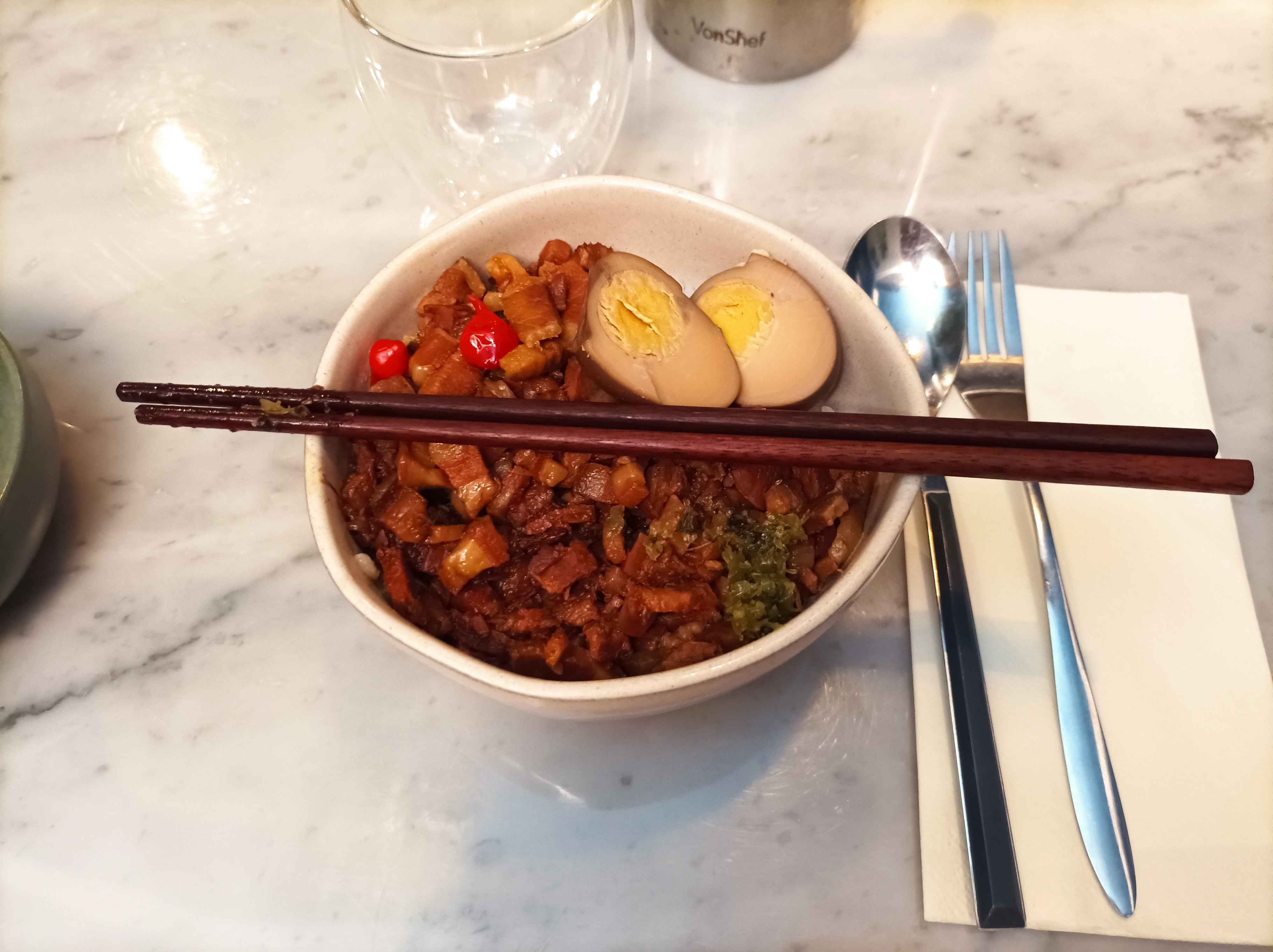Un resto délicieux, le service est top, l’ambiance est agréable. Mention particulière pour le riz au porc braisé et la dessert avec la crème fait à maison (je crois), très savoureux. Je recommande. 🙌