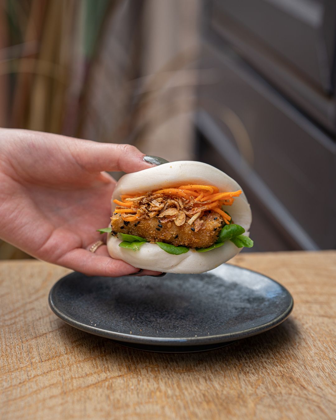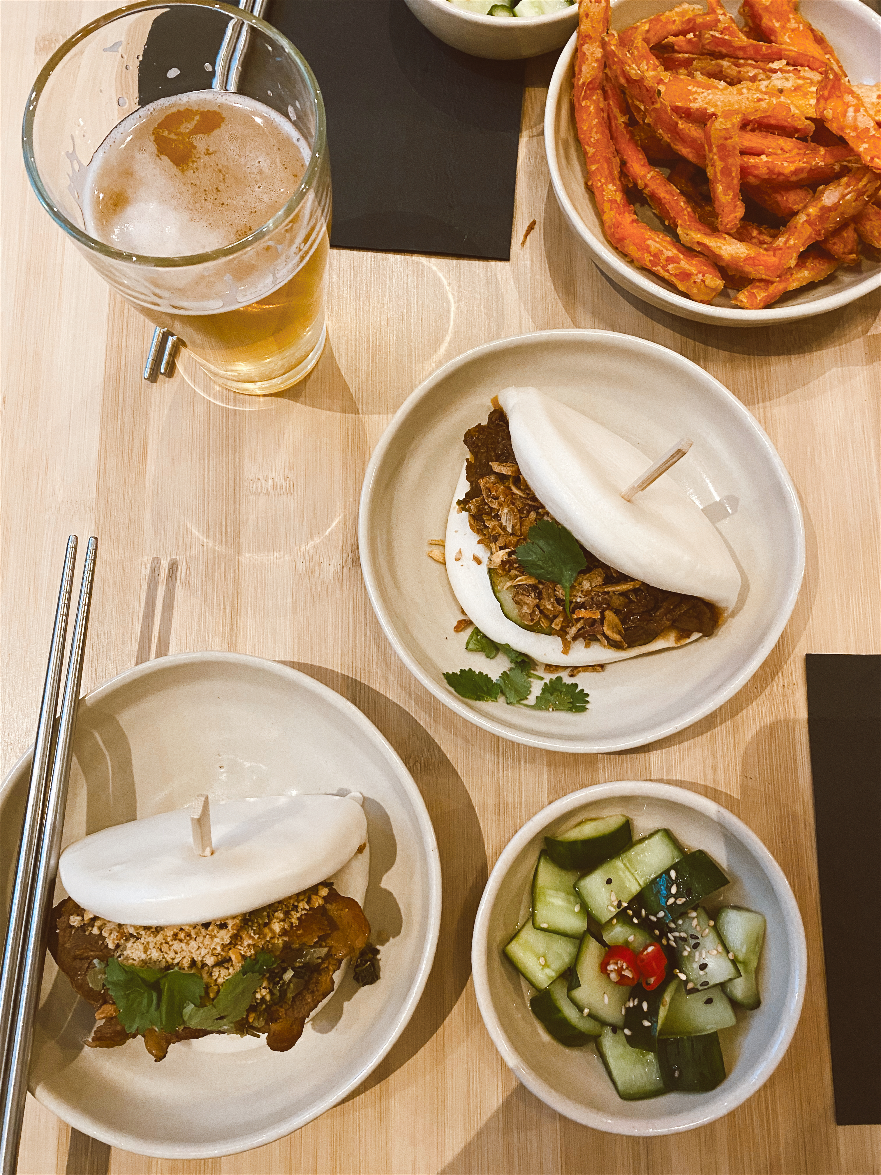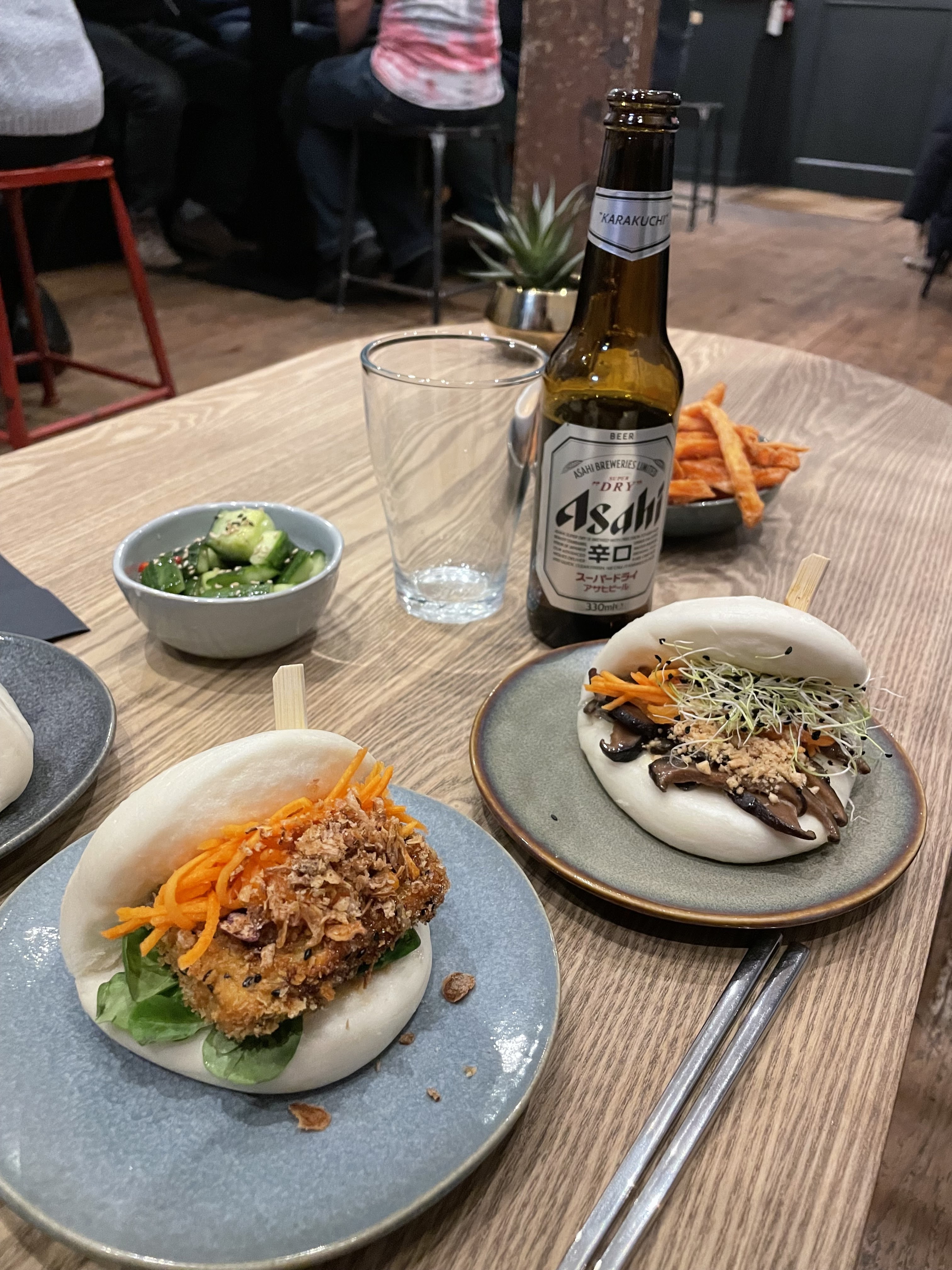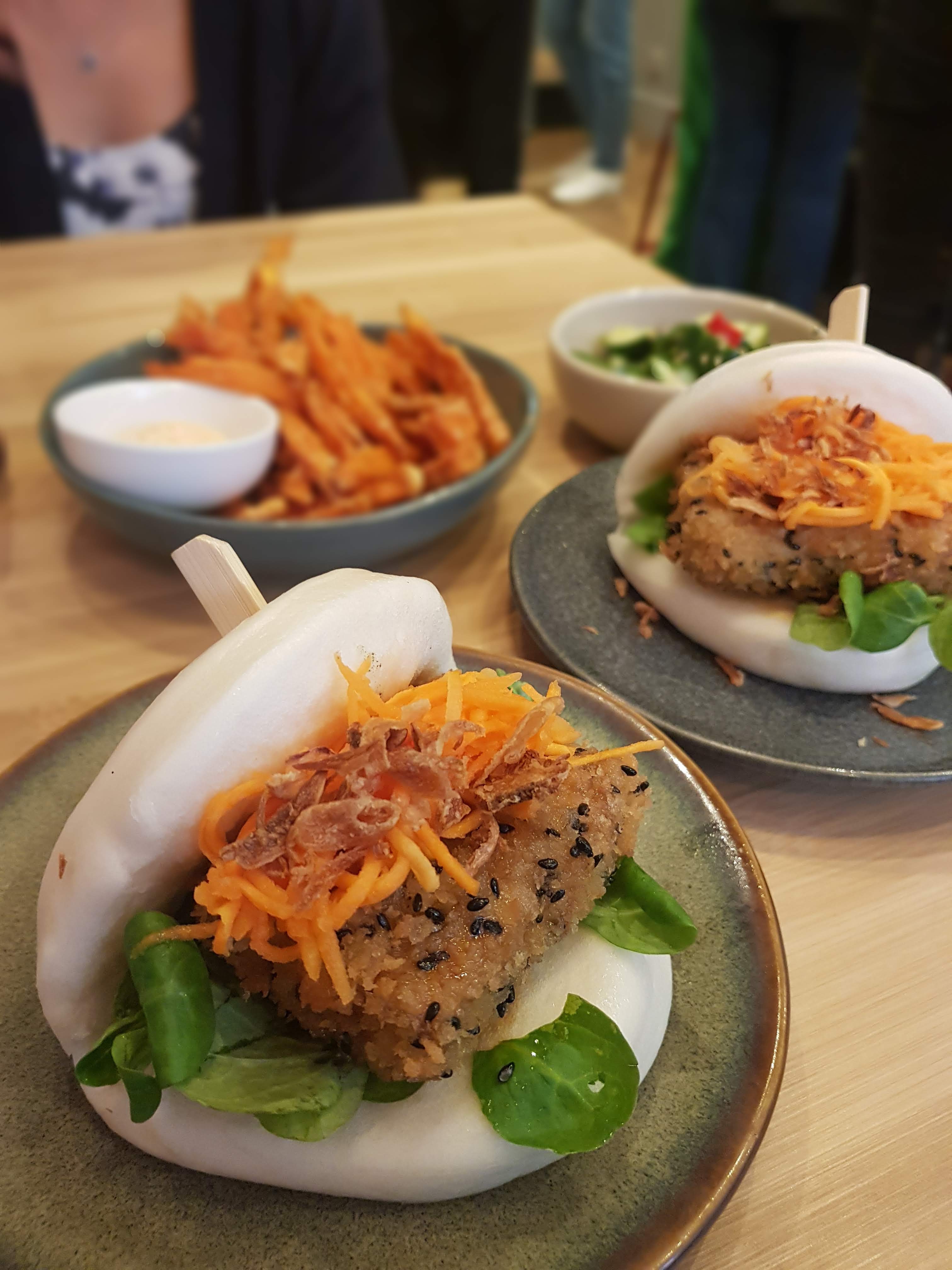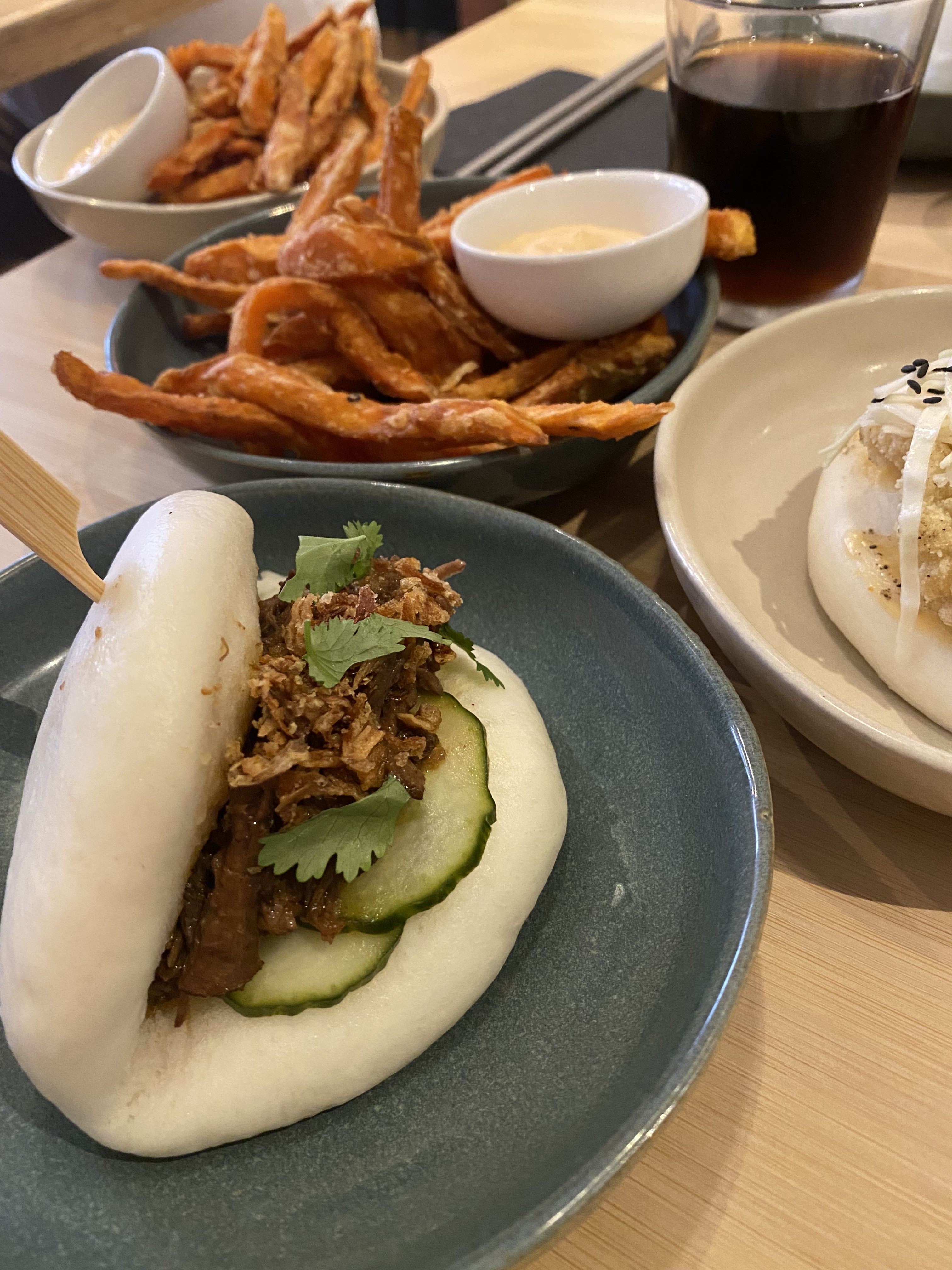 Bien accueilli et bonne ambiance, menu délicieux avec des gua bao végétarien panko tofu et shiitake, frites de patates douces extra croustillantes. Bonus bao choco super gourmand 😋