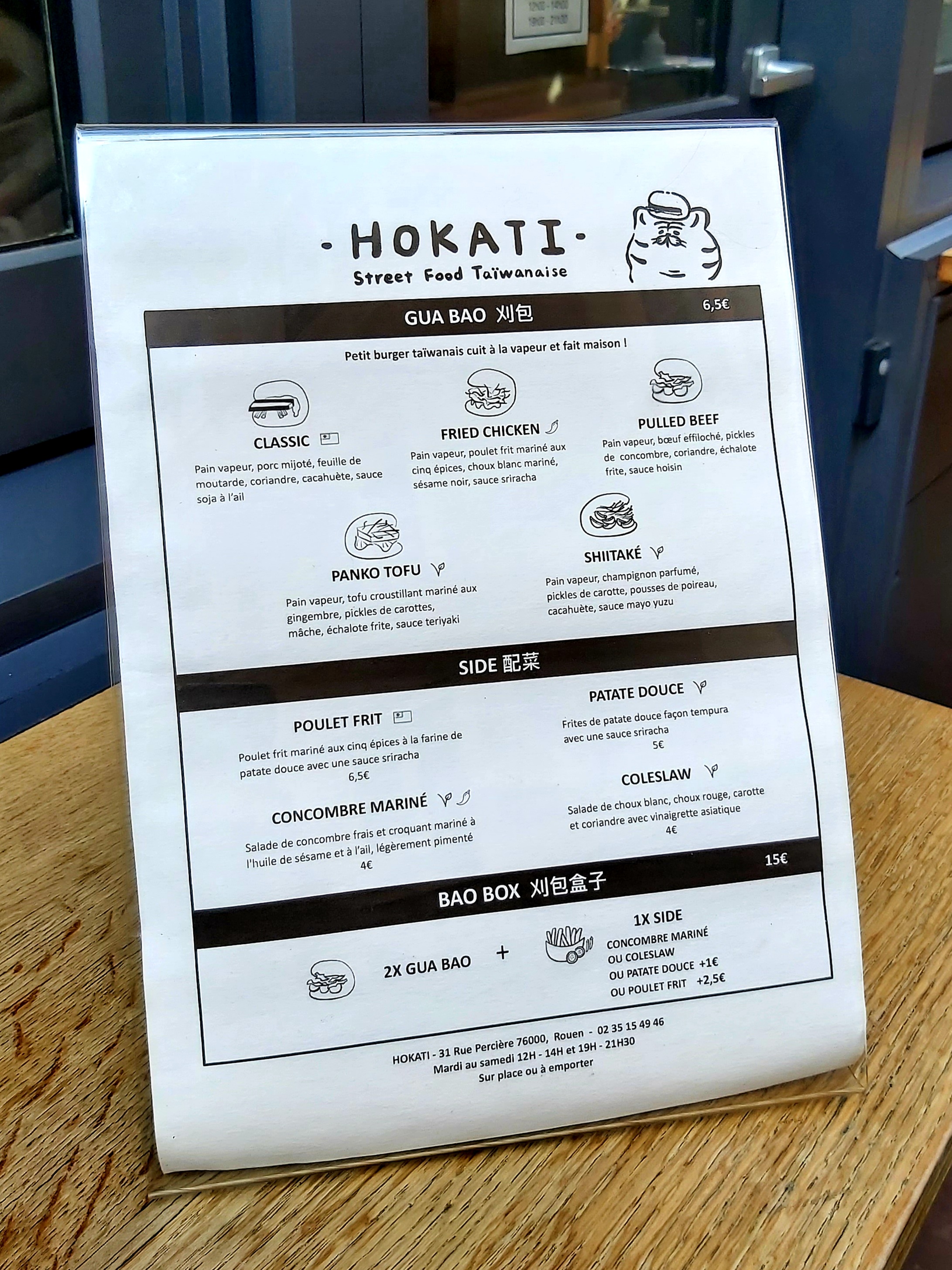 Ça faisait longtemps que je cherchais un bon restaurant Taiwanais.. HOKATI est une de mes plus belles découvertes sur Rouen. Nous y sommes allés entre amis, le serveur était très sympathique et les Guabao sont excellents (le classique était vraiment exceptionnel) A recommander : Le ice cream guabao en dessert avec la glace de sesame noire est délicieux !