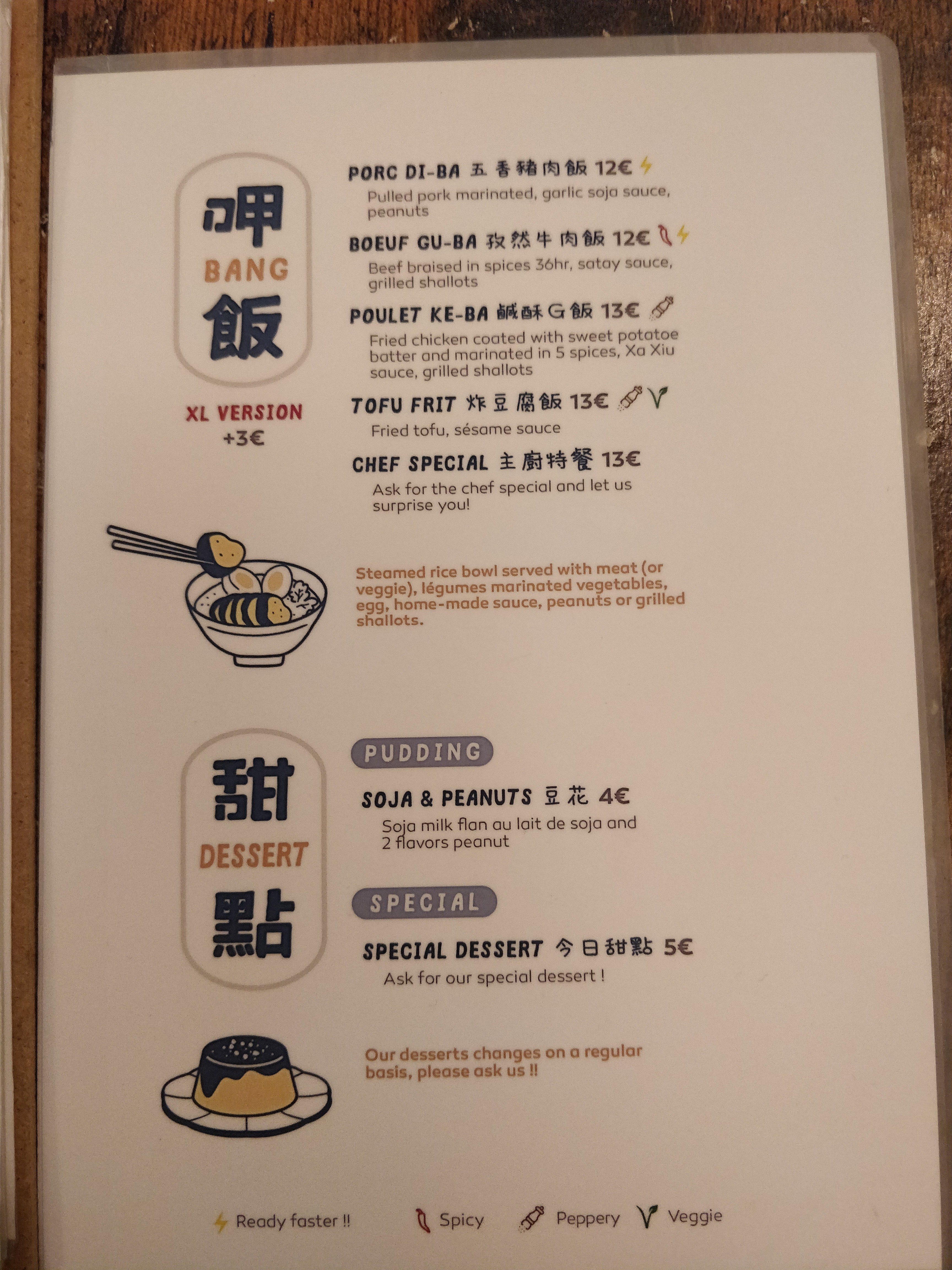 Restaurant taïwanais mignon et délicieux. Manger ici est devenu une partie de ma routine lorsque j'ai terminé mes cours à L'Alliance Française (Bonus ! Les étudiants bénéficient de 2 euros de réduction sur le menu du déjeuner).