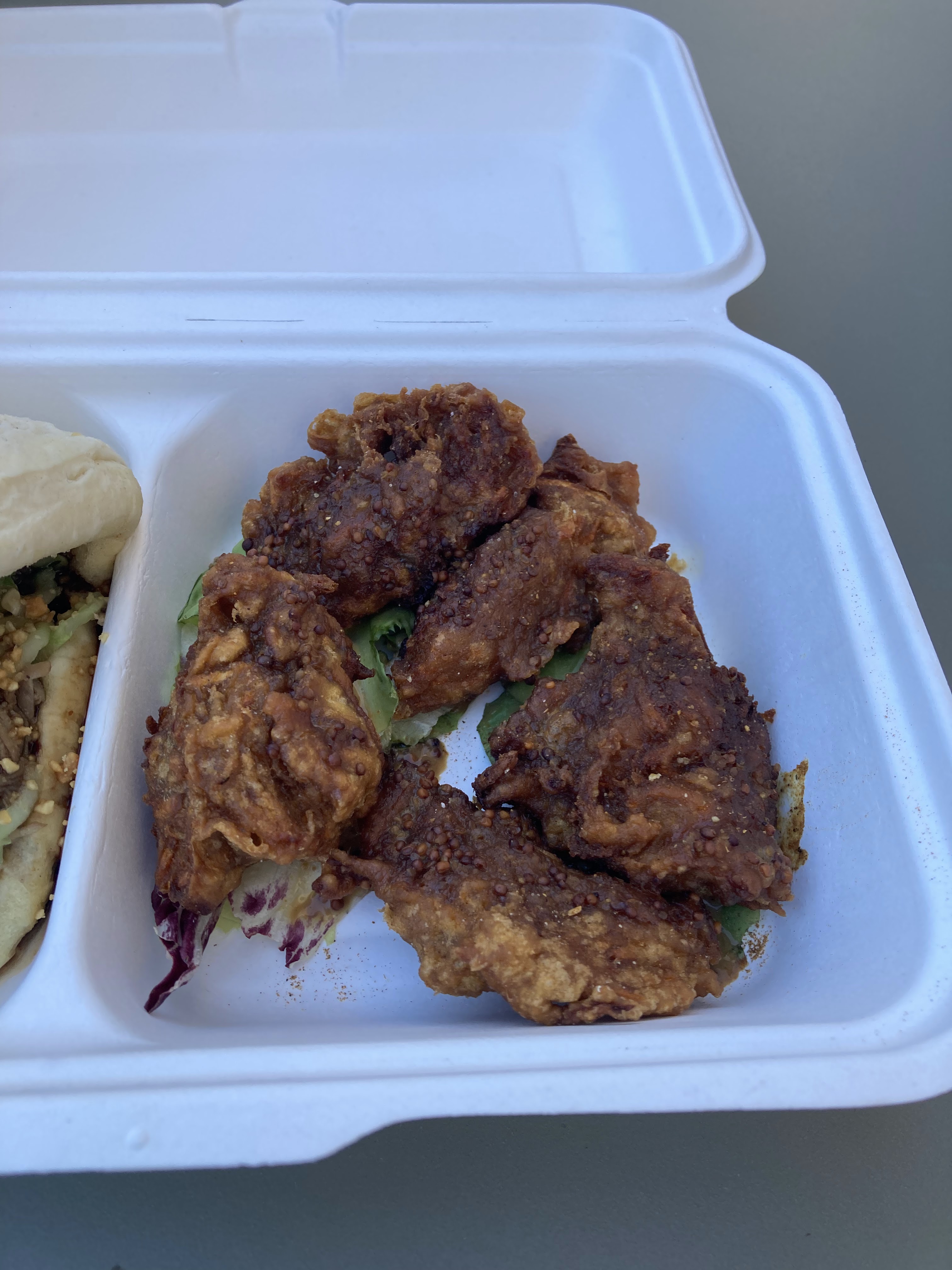 Excellent bao avec du très bon poulet frit 🍗 (Pour commander c’est dehors 😅)
