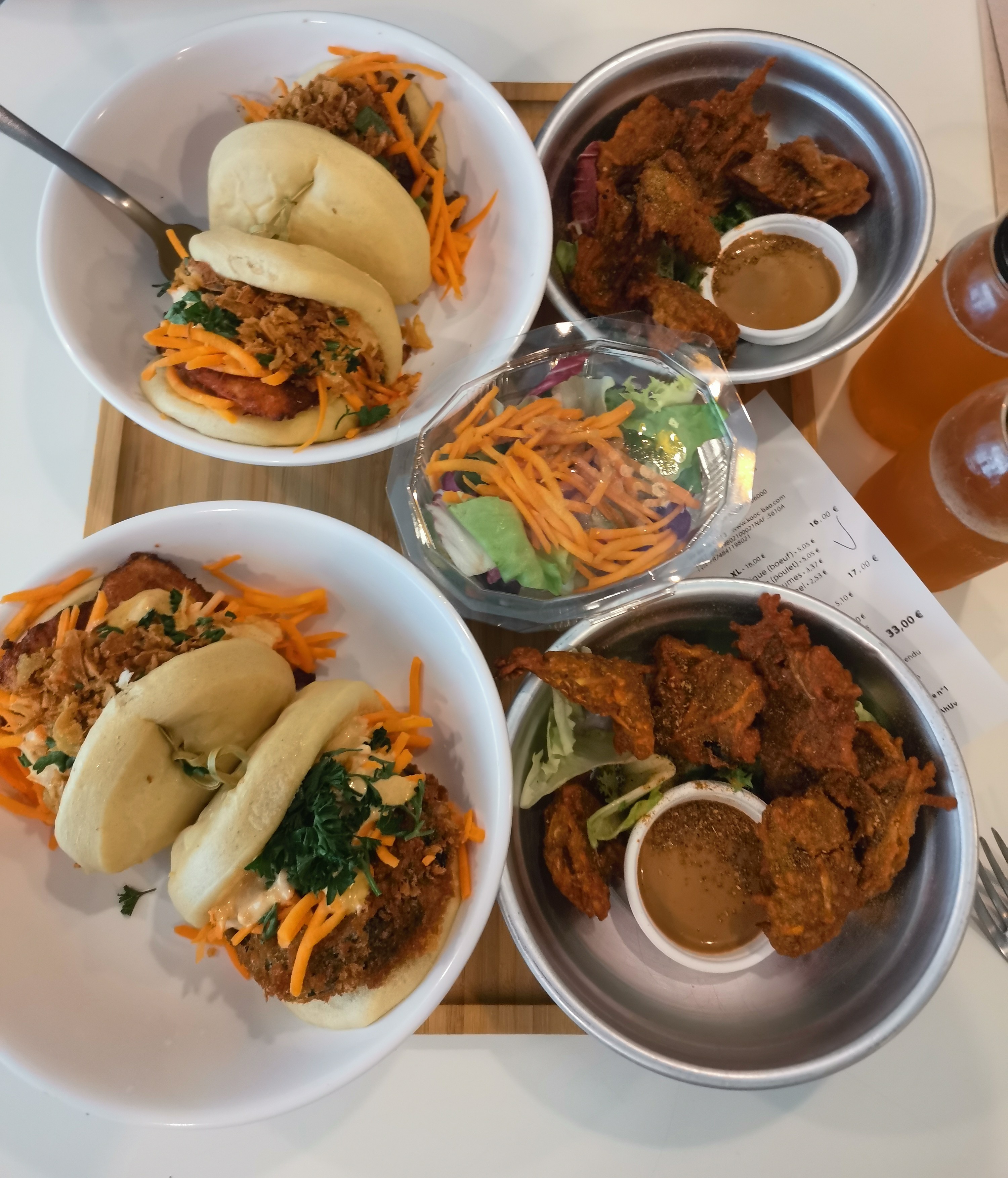 Avis mitigé. Nous venions beaucoup il y a quelques années. Les bao restent très bon notamment le poulet, avec une sauce spicy mayo bien relevée. Mais nous constatons une hausse des prix, une diminution des quantités et des saveurs inégales. Le bao bœuf était très très salé et sec. Les beignets de légumes ont diminué de moitié et servi avec une sauce vinaigrette balsamique qui ne va pas avec. Bref 50 euros pou 2 lorsqu auparavant il y avait un très bon menu à 16 euros par personne pour une qualité qui a diminué, c’est dommage!