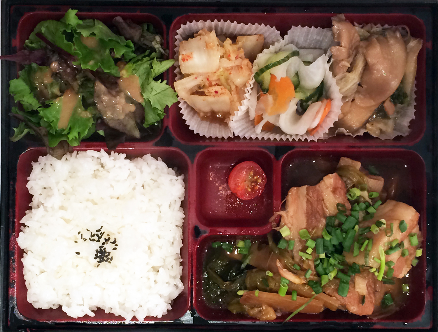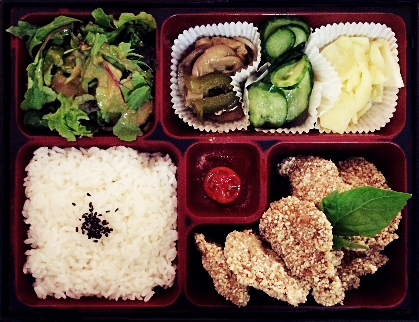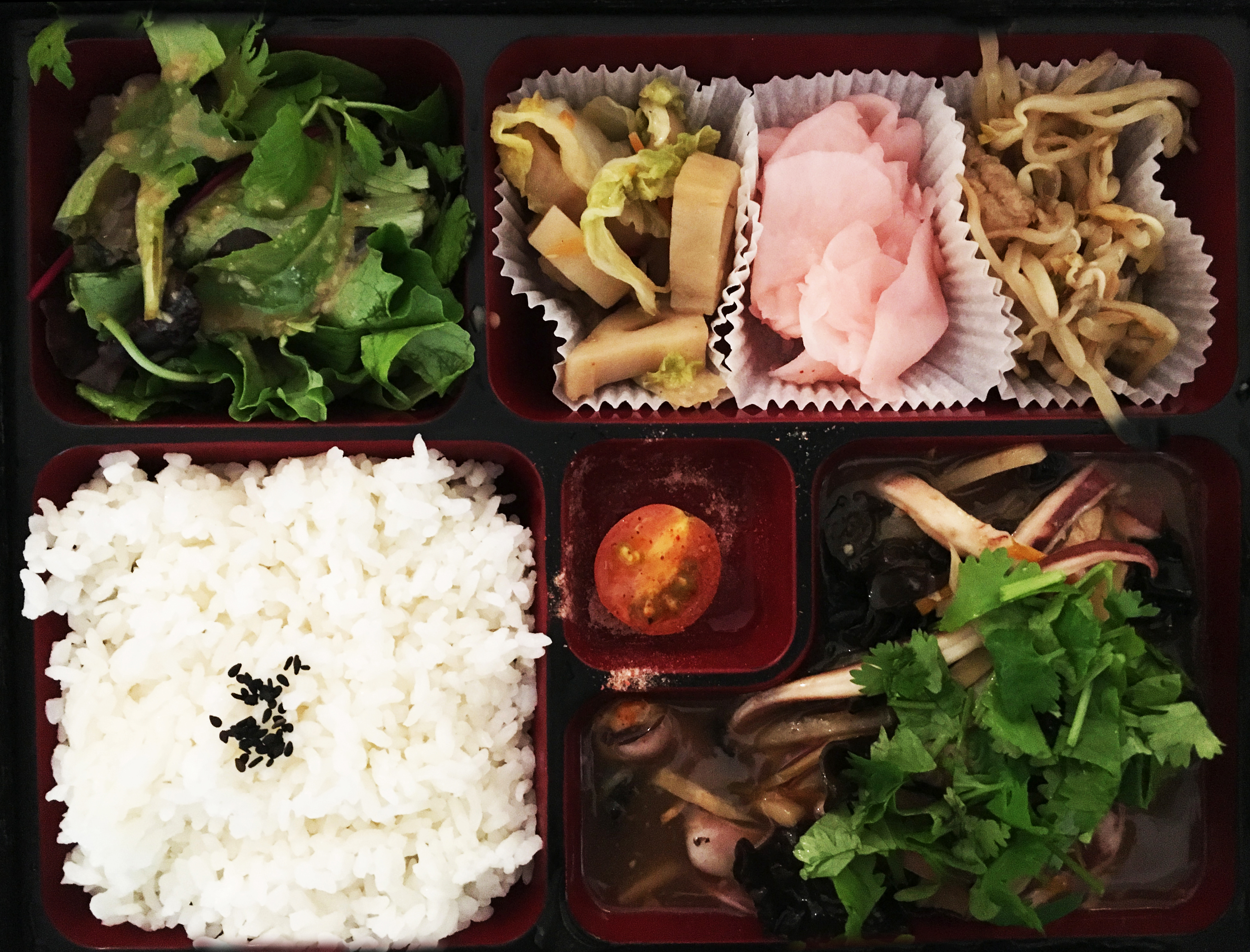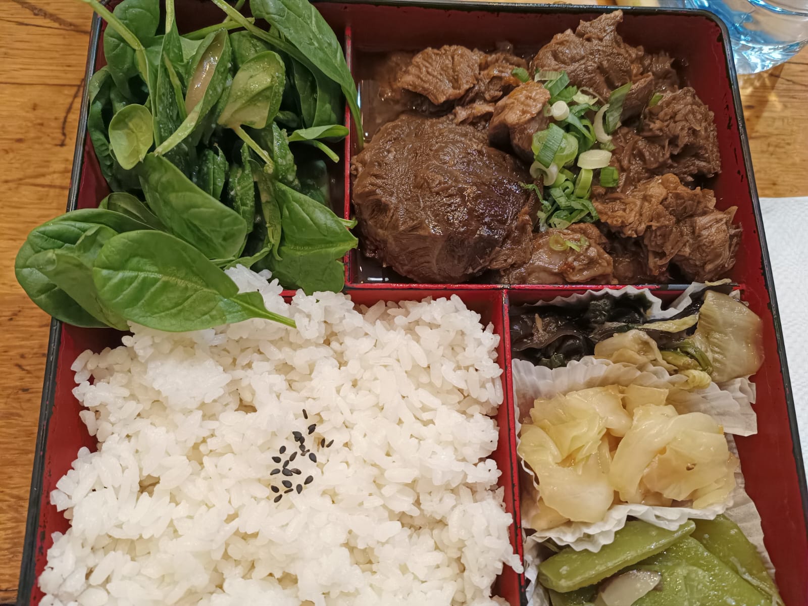 Très bon bento avec plusieurs petit légumes et la quantité est importante !! Pour 12€ environ vous ressortez rassasié !