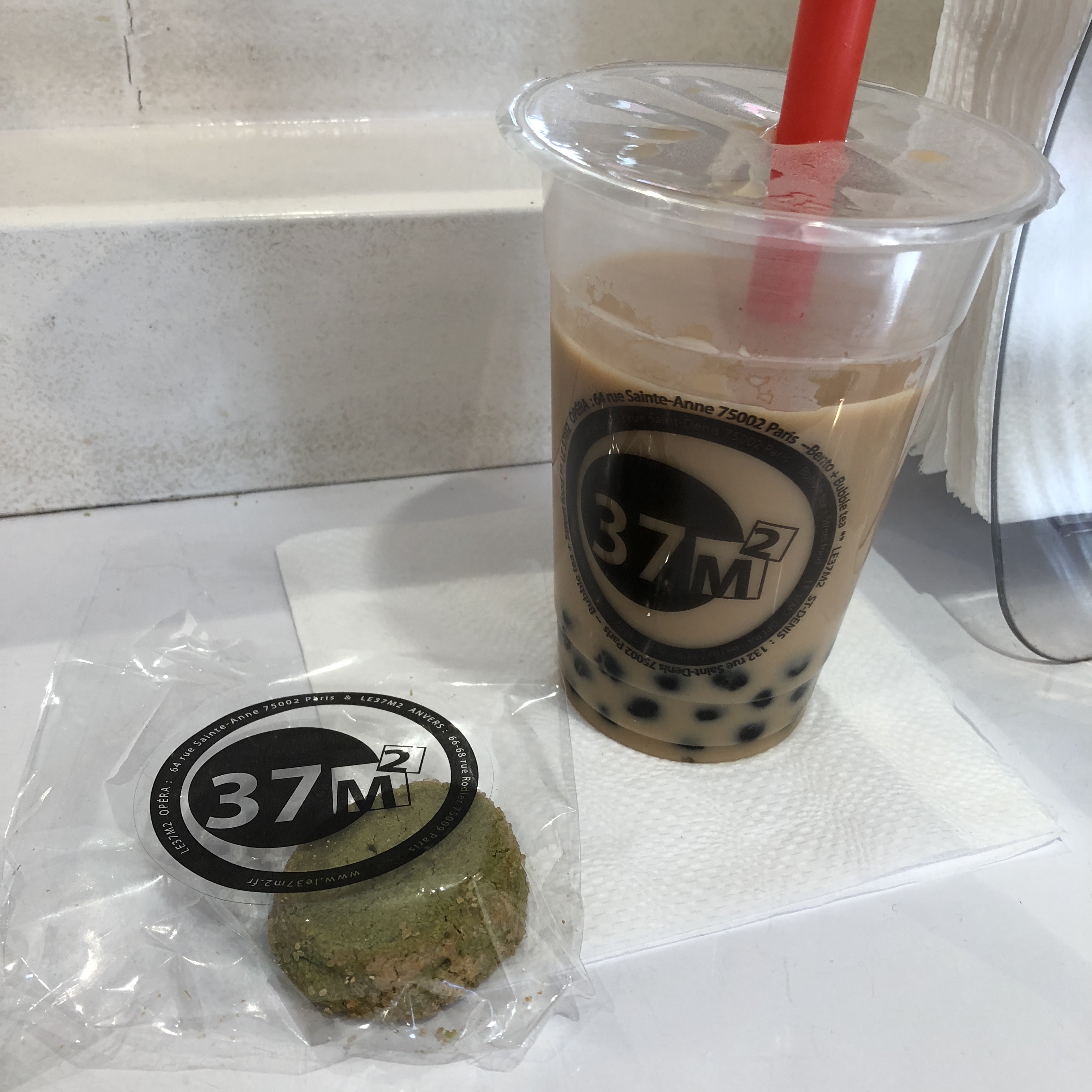 Je suis une très grande fan des bubble Tea de Zen zoo. Le restaurant étant fermé, nous avons décidé d'essayer le 37m2. il nous avait été conseillé par notre entourage. Nous avons pris un thé passion et un coco. Celui à la passion était trop sucré, on sentait le sucre de riz dans les boules de tapiocas. Celui à la coco était fade, sucré et hyper lourd. Pour les deux les boules de tapiocas étaient très molles. Pour couronné le tout, les boissons nous sont restées sur l'estomac. A part ça, le service était agréable.