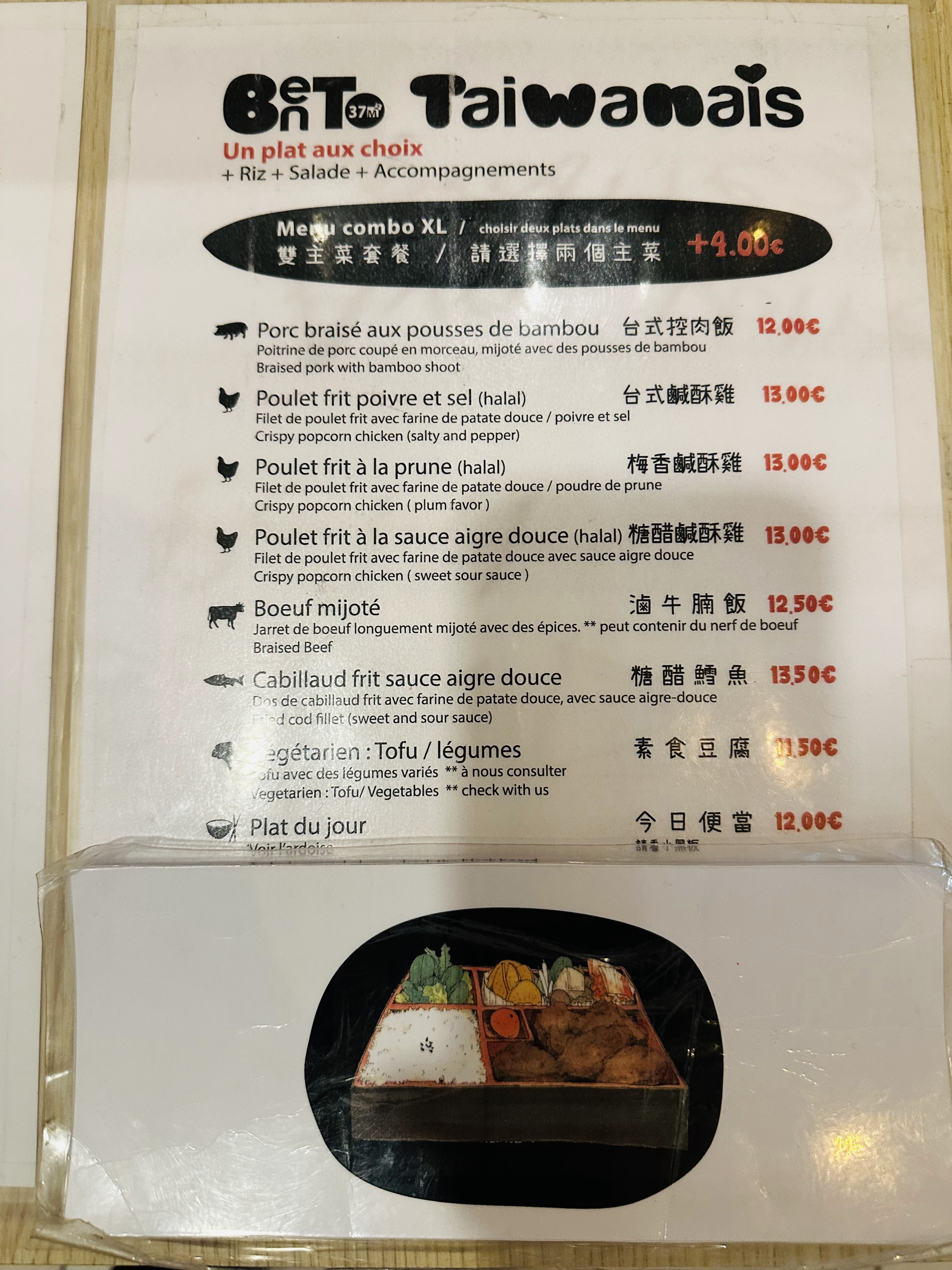 D'excellents typiquement taiwanais bentos à un prix raisonnable ! Les accompagnements changent régulièrement. Le bento poulet frit poivre et sel est excellent !