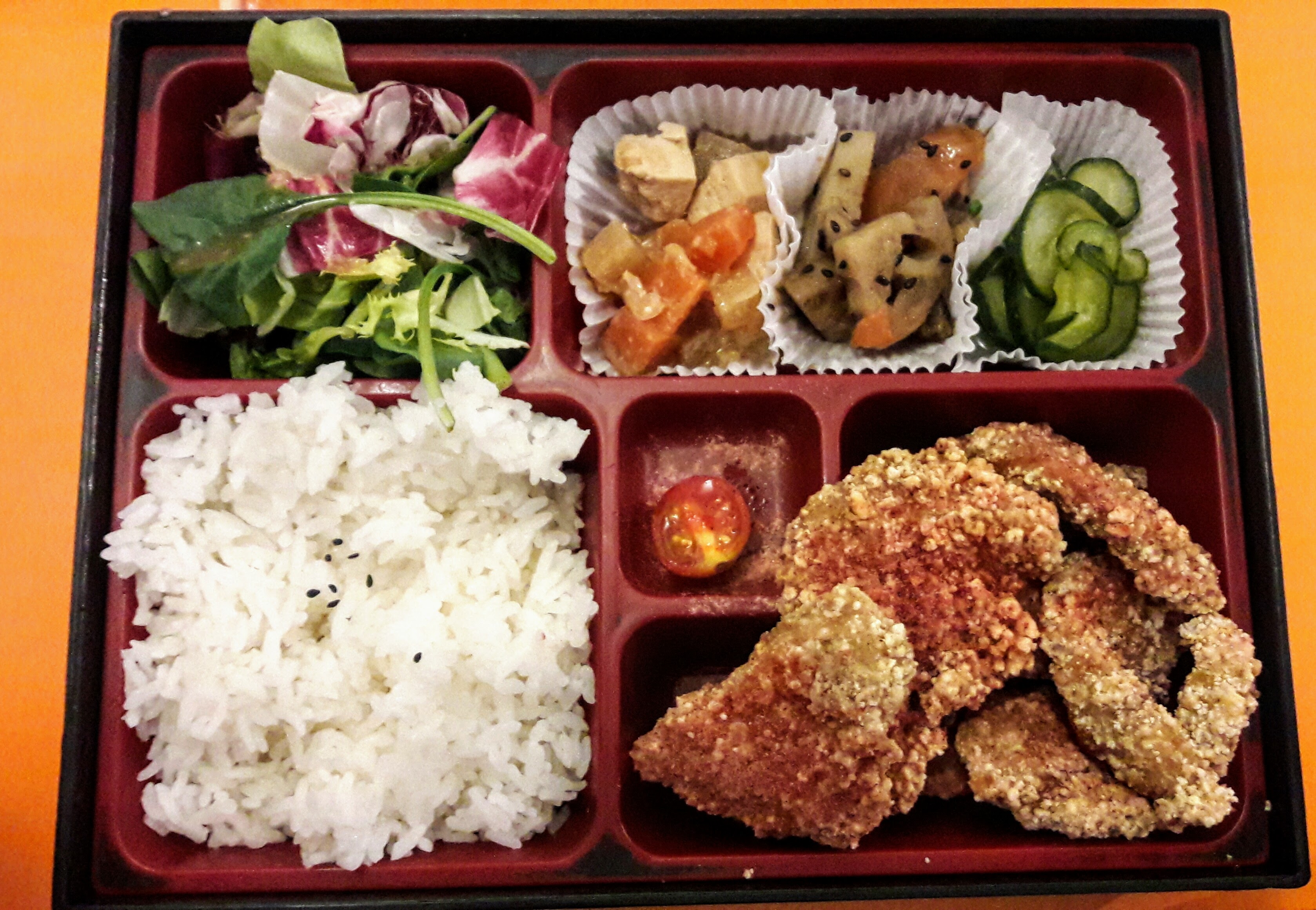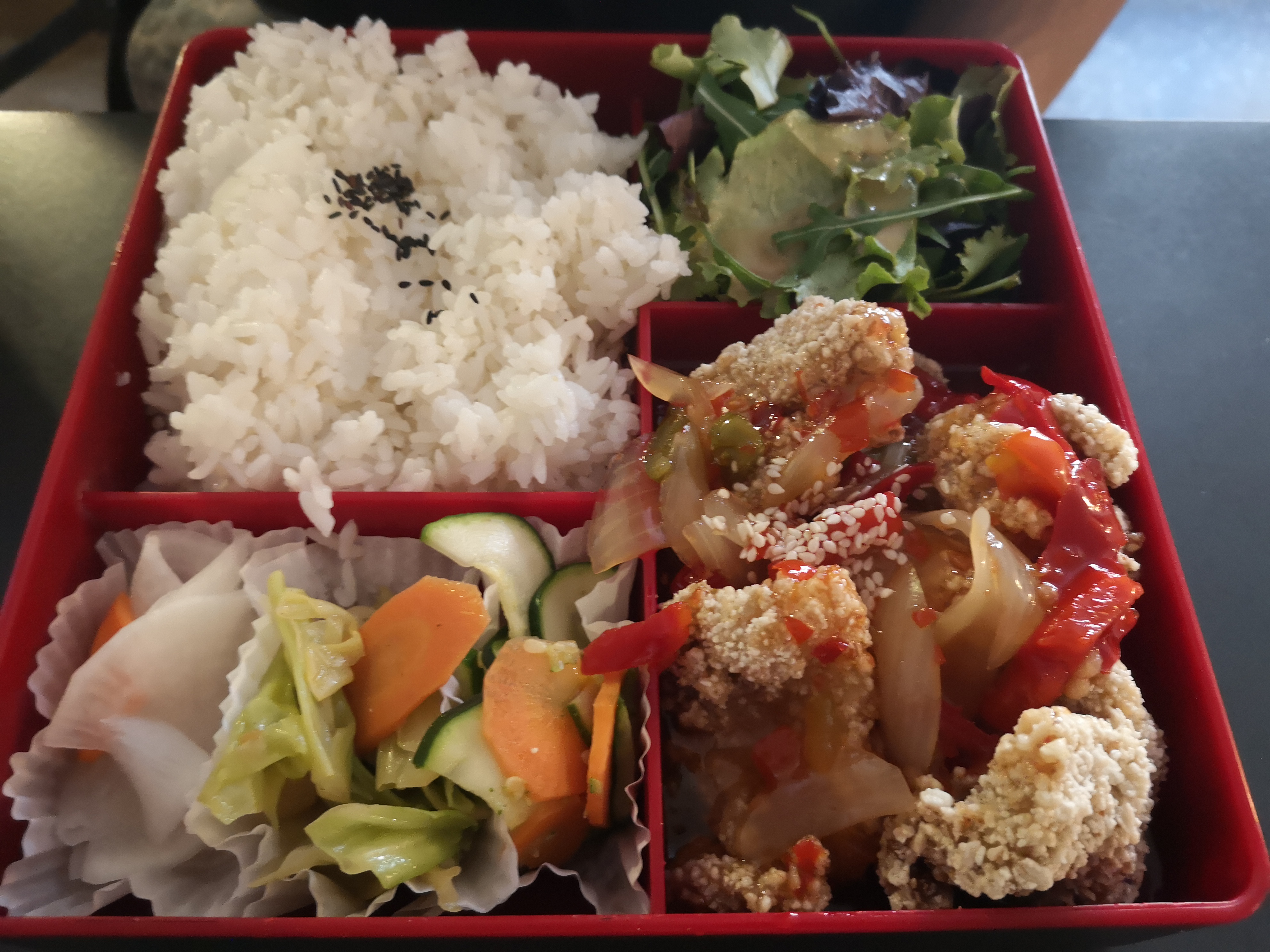 J'ai pris le bento poulet frit à la prune et c'était très bon. Personnel très sympa aussi