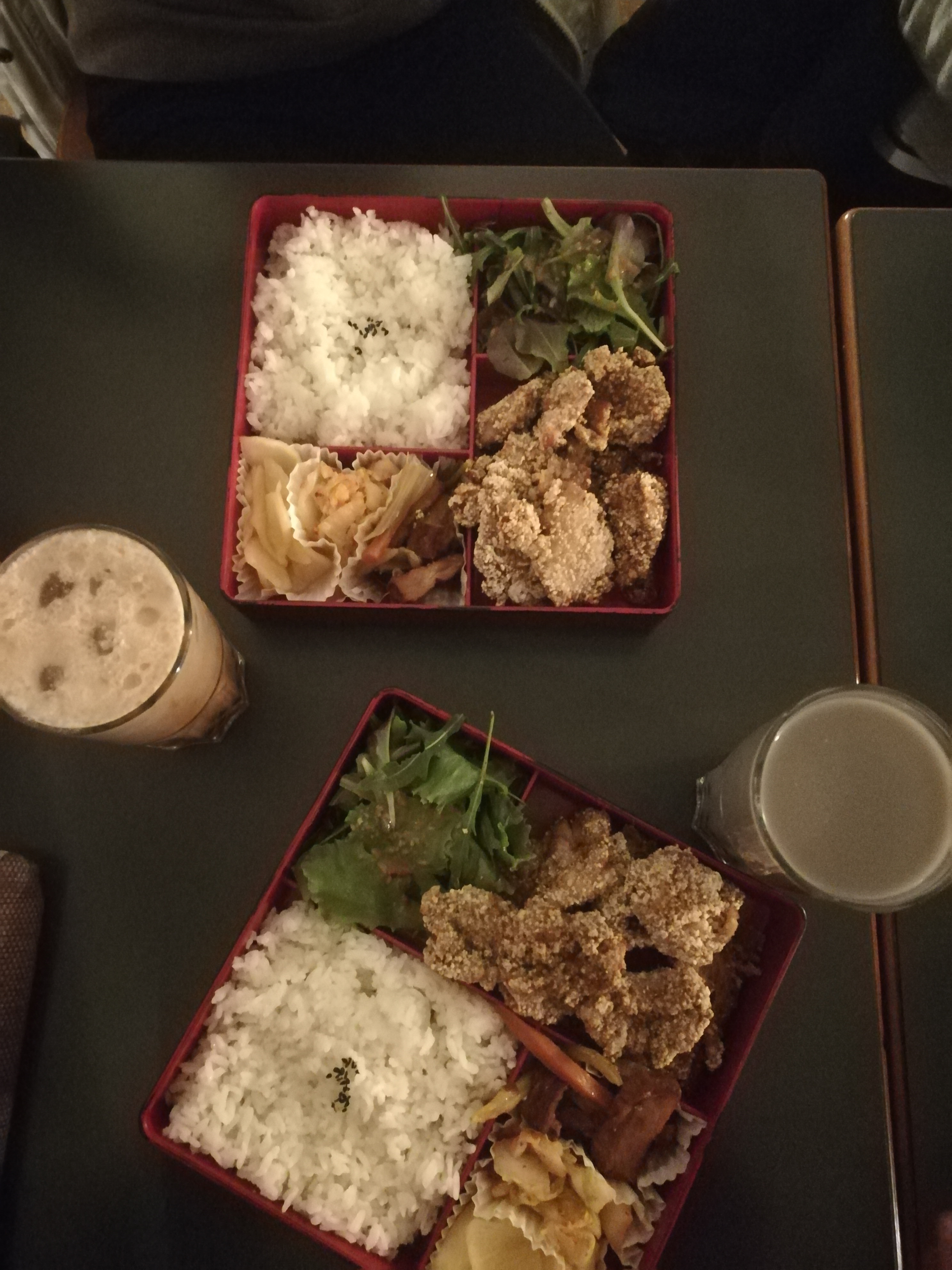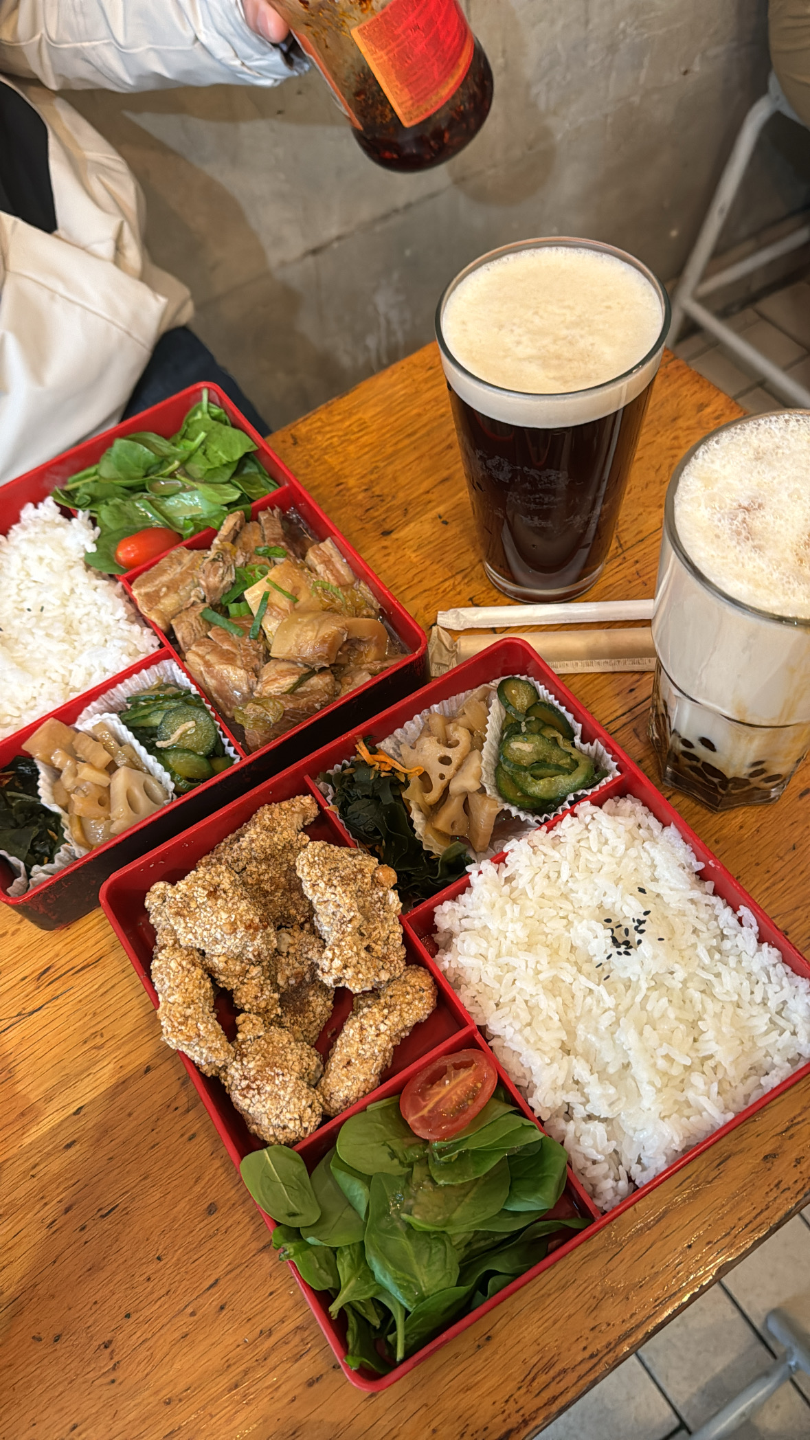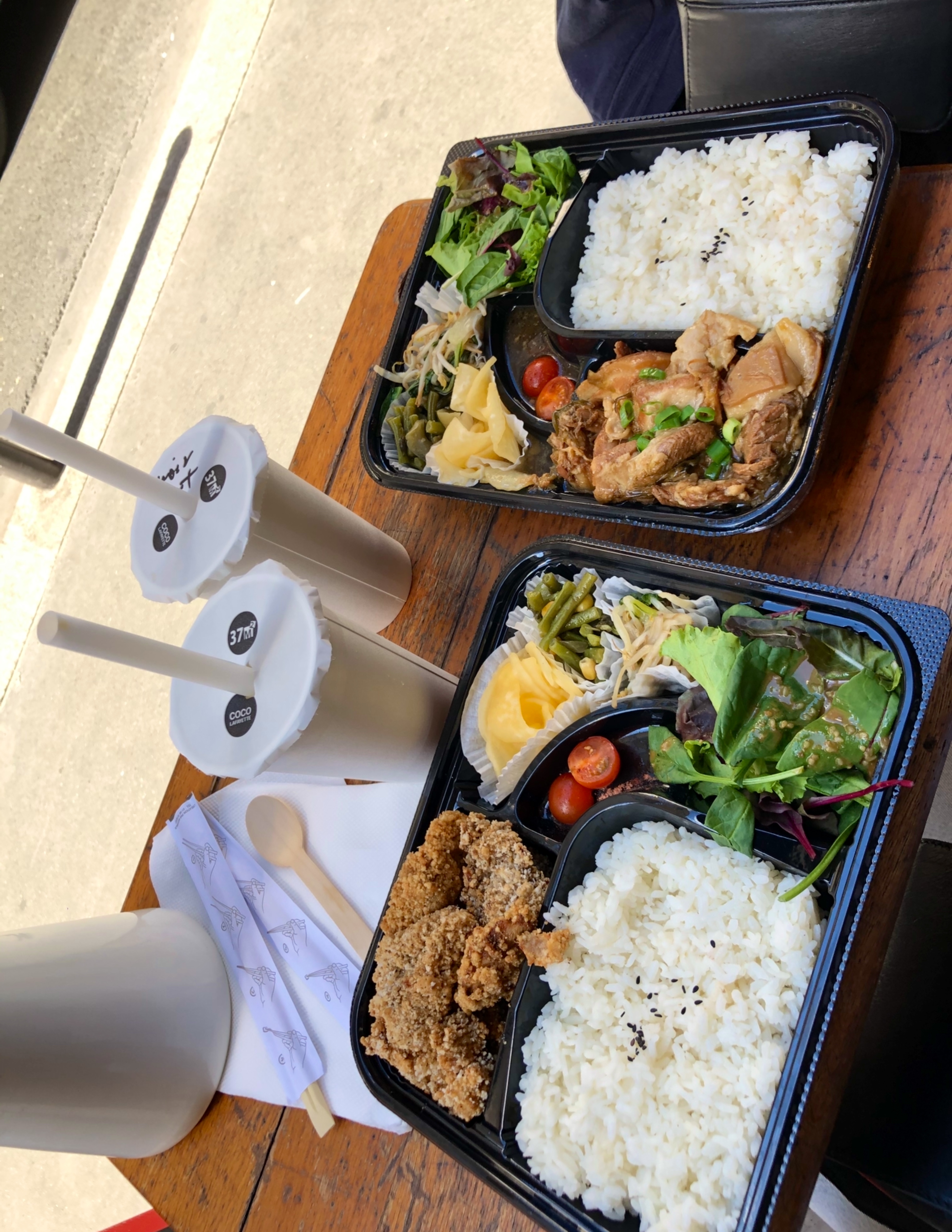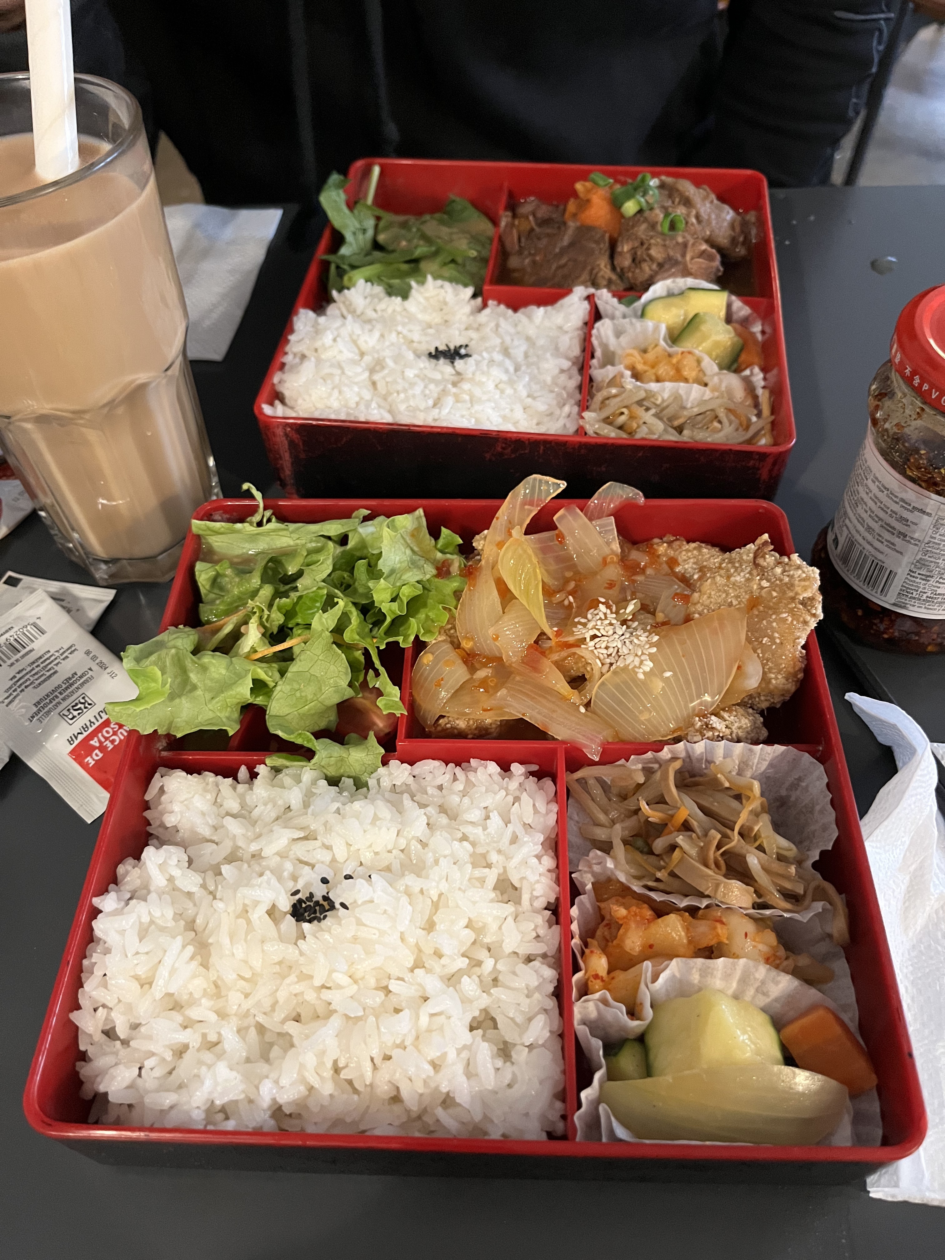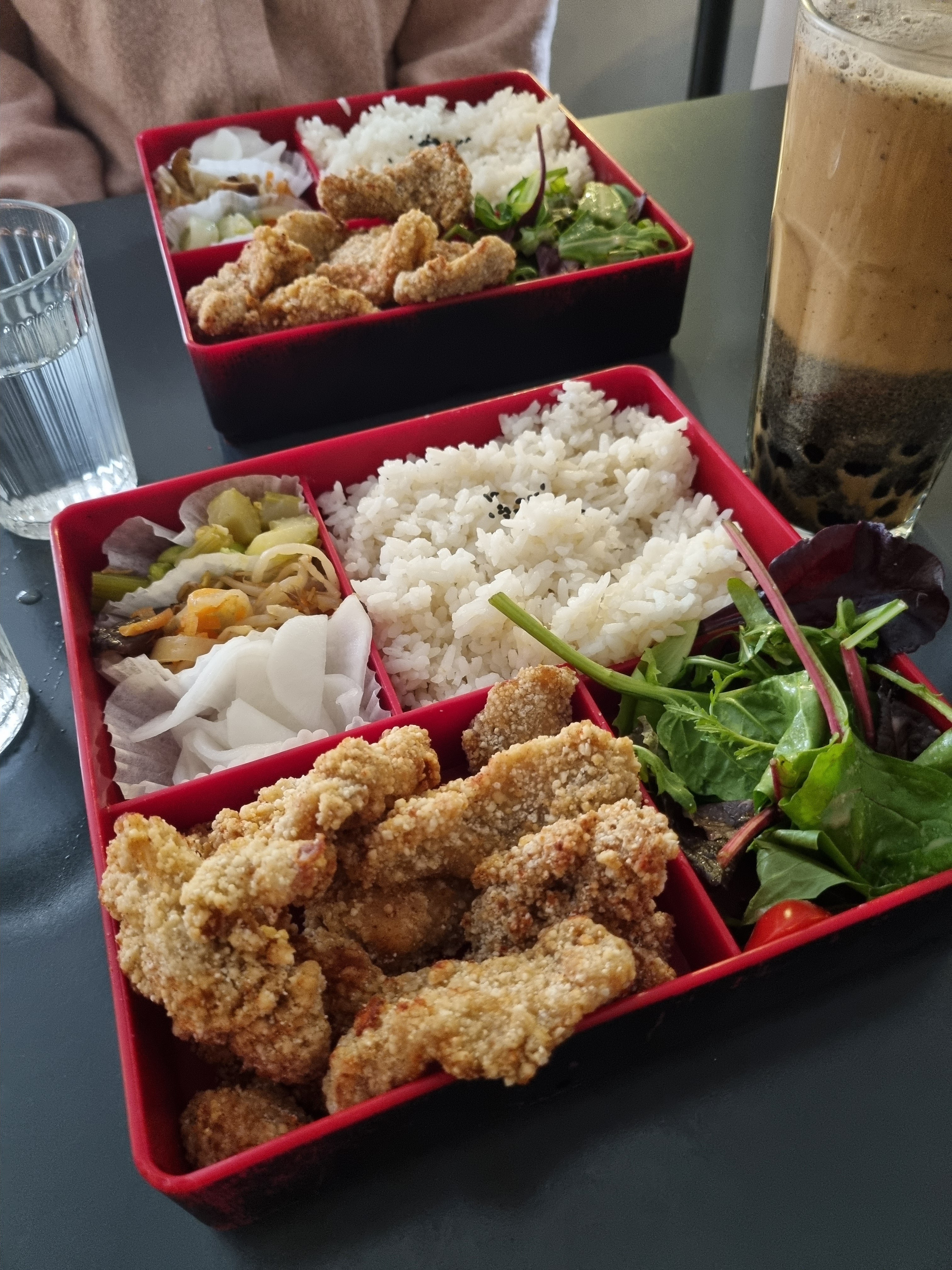 Superbes bentos poulet frit poivre et sel et aigre douce, nous n'avons pas eu la chance de goûter les bubbles teas mais nous reviendrons sans aucun doute. Allez y sans hésiter !