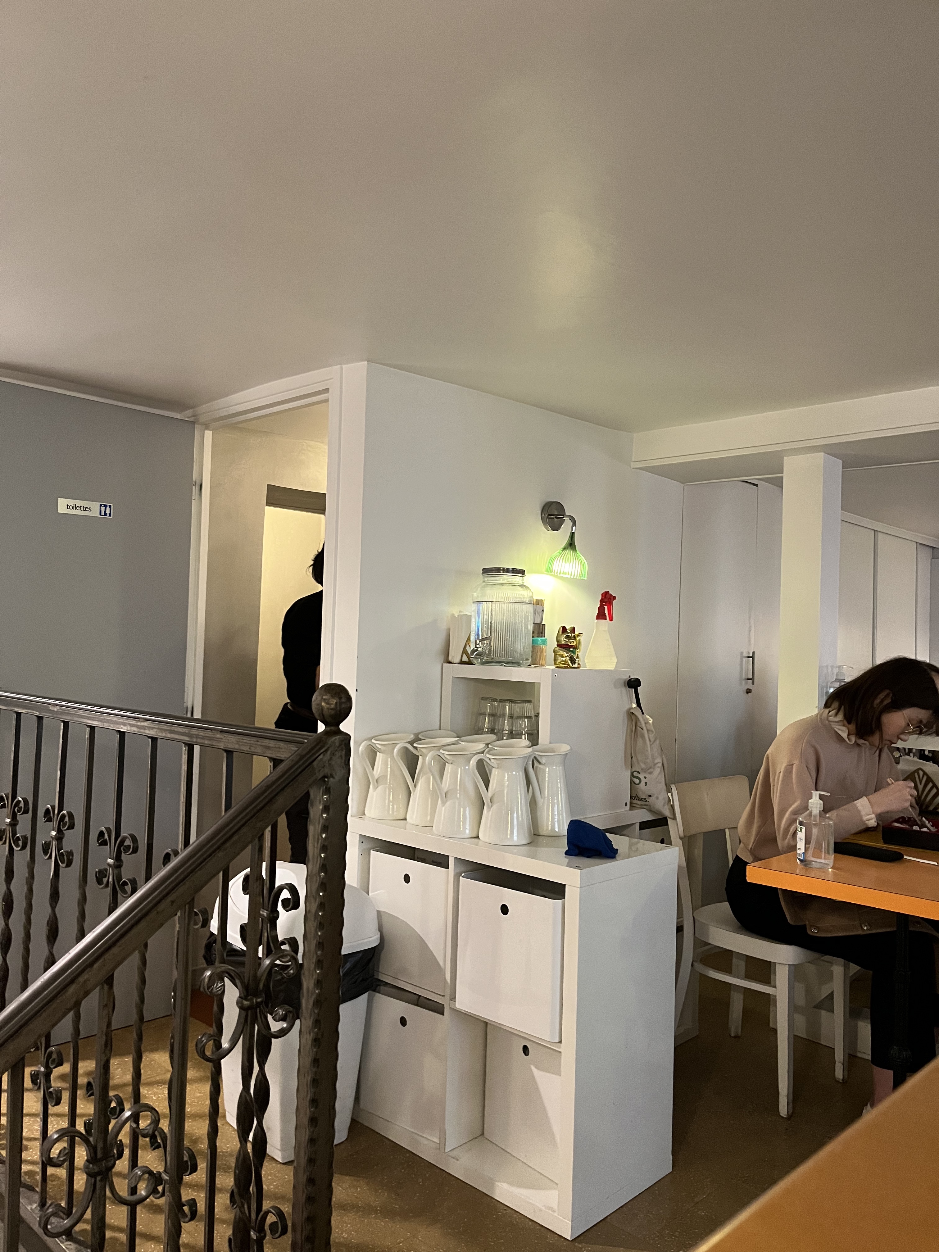 Grand choix de bubble tea, froid ou chaud, y compris avec lait de soja 😉. Pâtisserie maison : sablés matcha. Bentos préparés sous vos yeux. Formule bubble & bento 13€ L’affluence est critique dans ce lieu chaleureux et petit comme son nom l’indique.