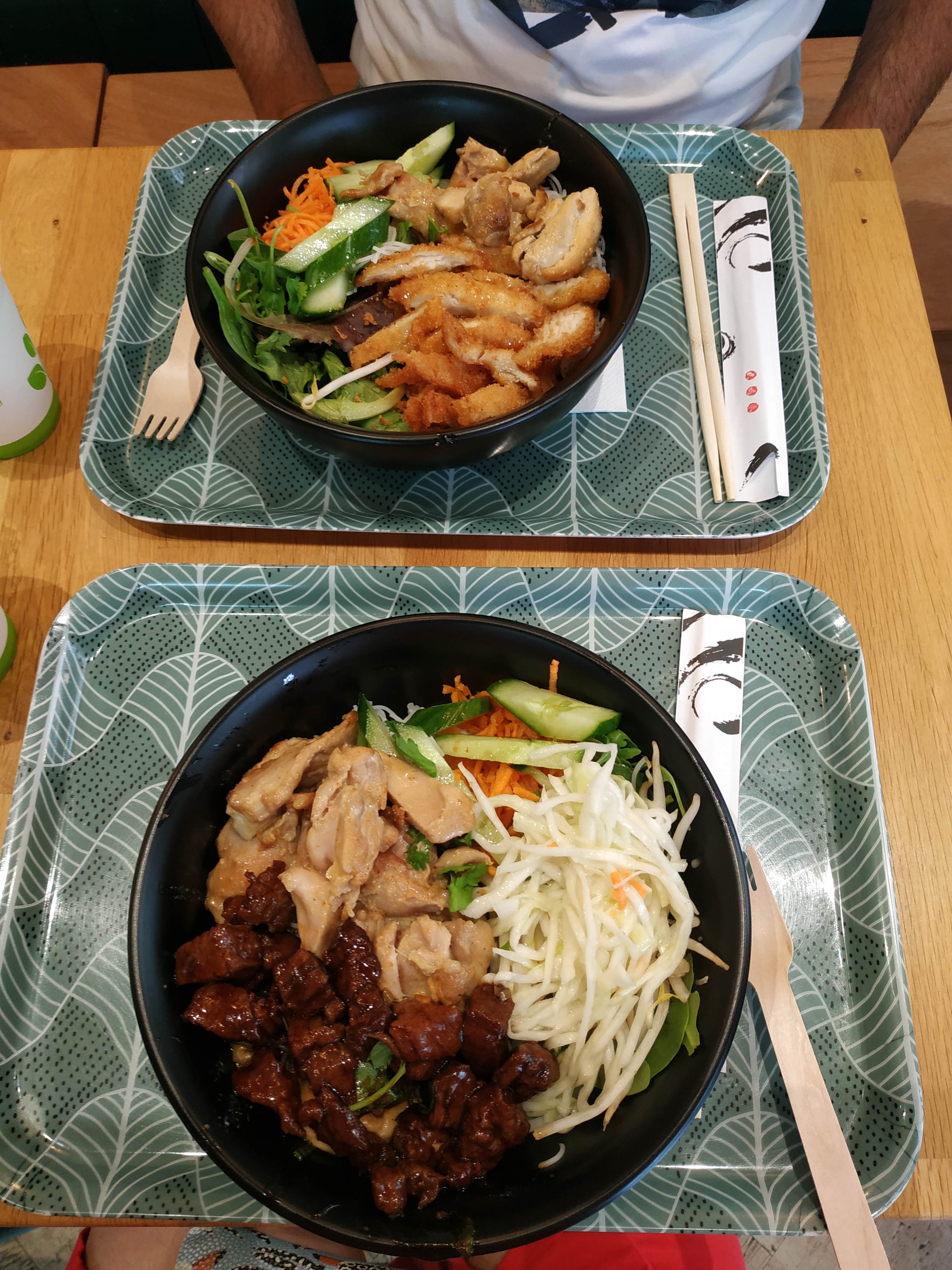 Grosse déception, la qualité des produits est à revoir. Nous avons pris 3 bento ...2 poulet et 1 boeuf Les légumes d'accompagnement réchauffés, resservis ....ils étaient imbibés dans leur emballage, pas frais du tout ! La viande bouillit et re-bouillit. Le poulet à été apprécié. Le bento en lui même bien présenté. Deux vont fumer rune cigarette, ils voulaient déjà tout débarrasser alors que le bento étaient à moitié plein, service express pas de réel contact hormis le bonjour, au revoir Sincèrement aucun plaisir, quel dommage !