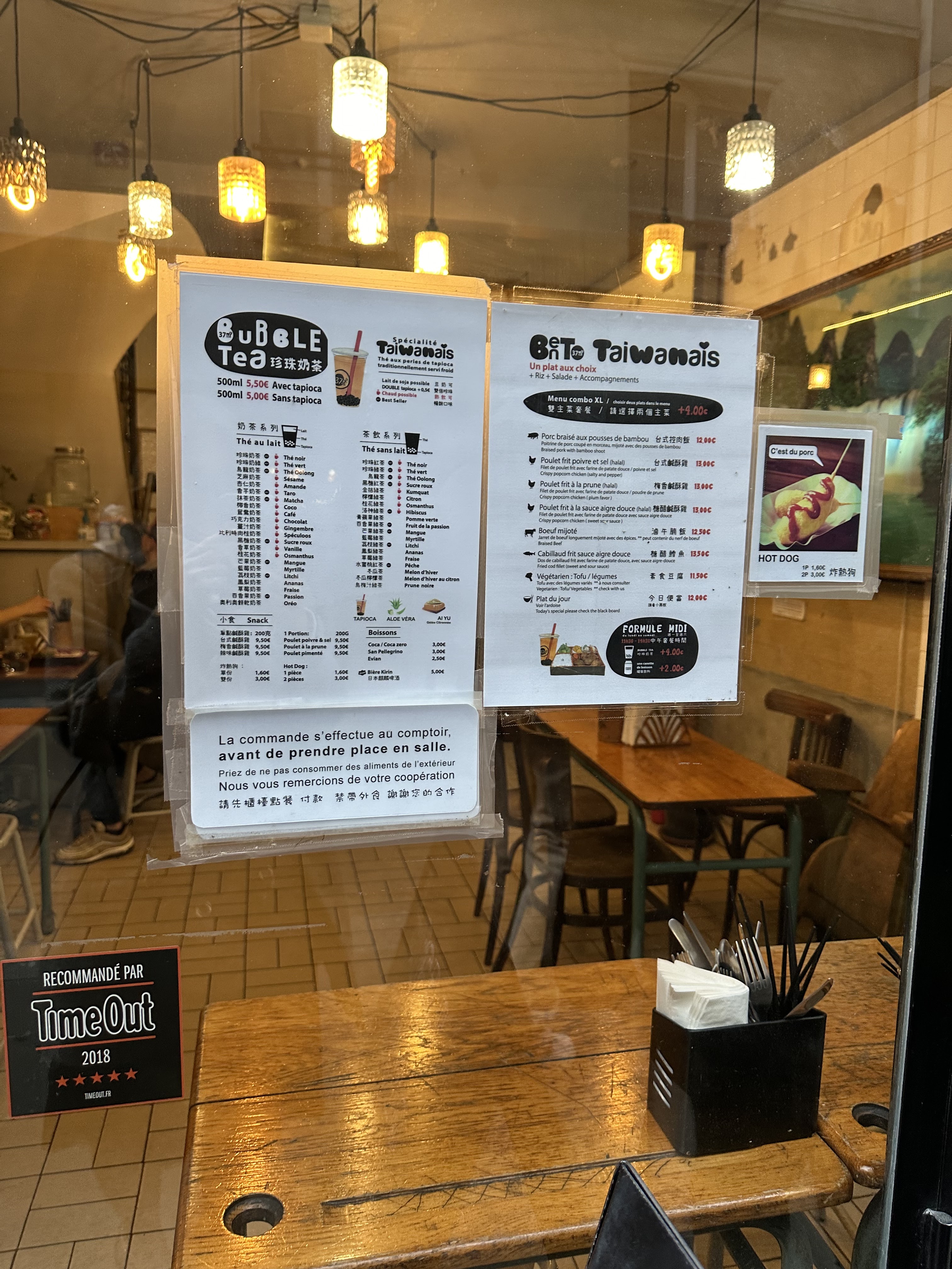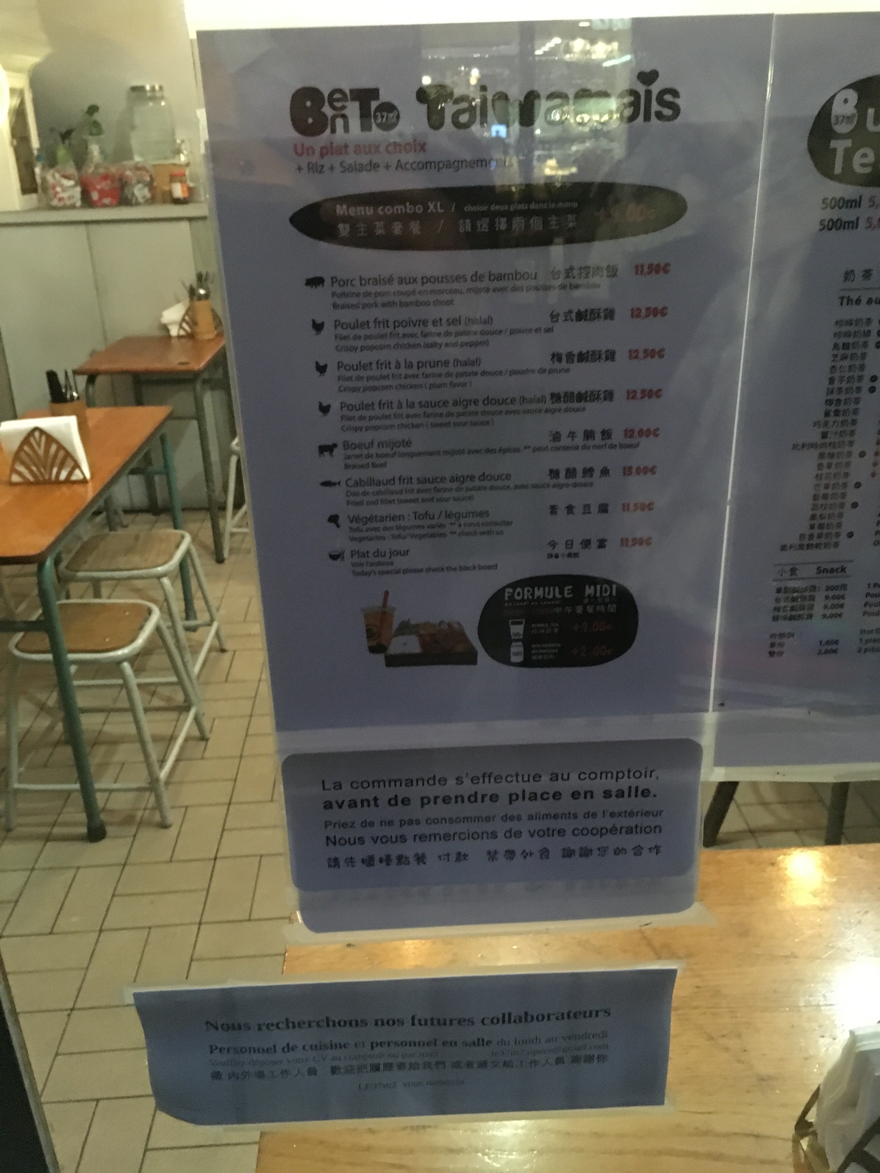 Excellent bubble tea et les menus bentos sont typiques de Taïwan. En plus : c'est pas cher !