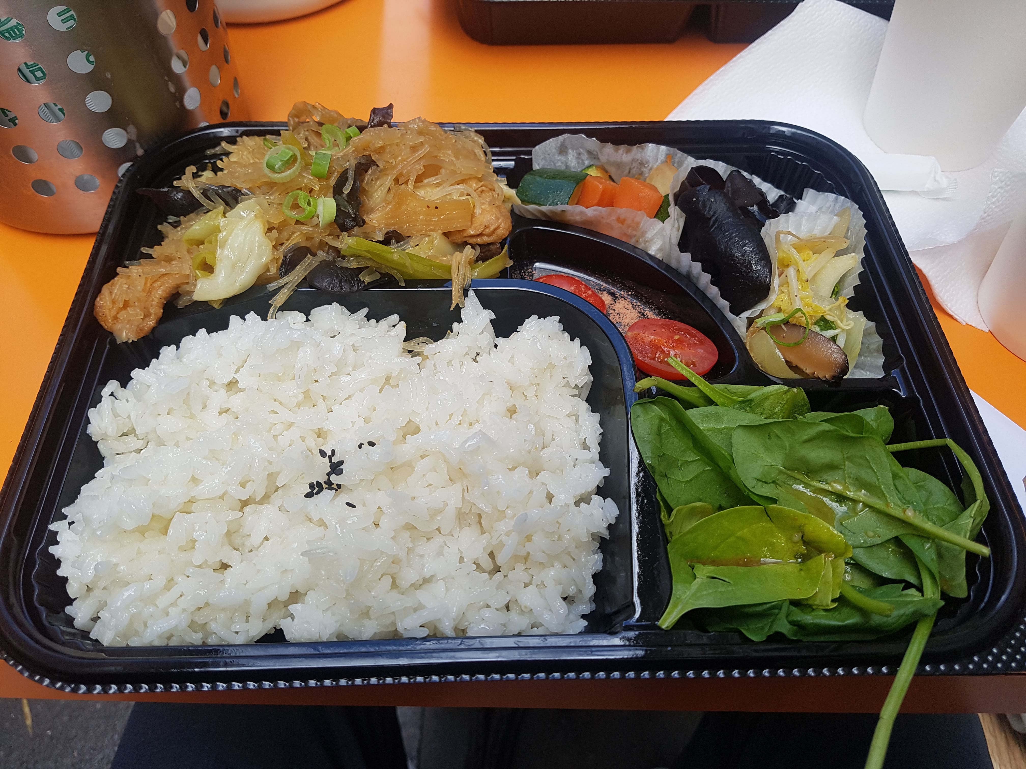 J'ai pris le bento végétarien et je peux vous le recommander ! Les sauces (plats et même salade) sont délicieuses tout comme le bubble tea. Si vous mangez sur place c'est assez petit et il fait vite assez chaud dommage.