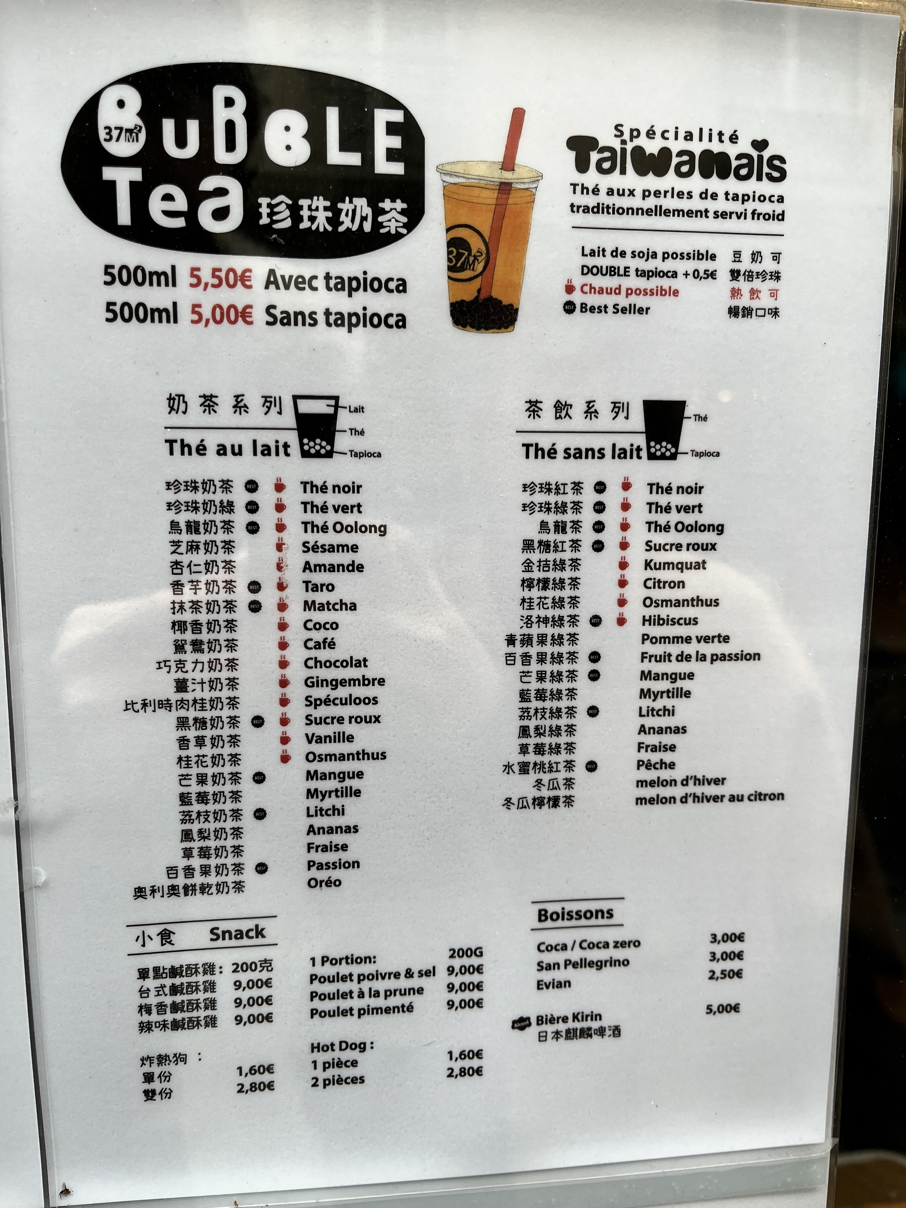 Les meilleurs bubble tea de Paris. Aussi bons qu'à Taiwan. Préparés à la commande avec de bons ingrédients. Je suis accro .... Les bentos sont super bons, poulet aigre douce. miam Merci l'équipe de 37m2.