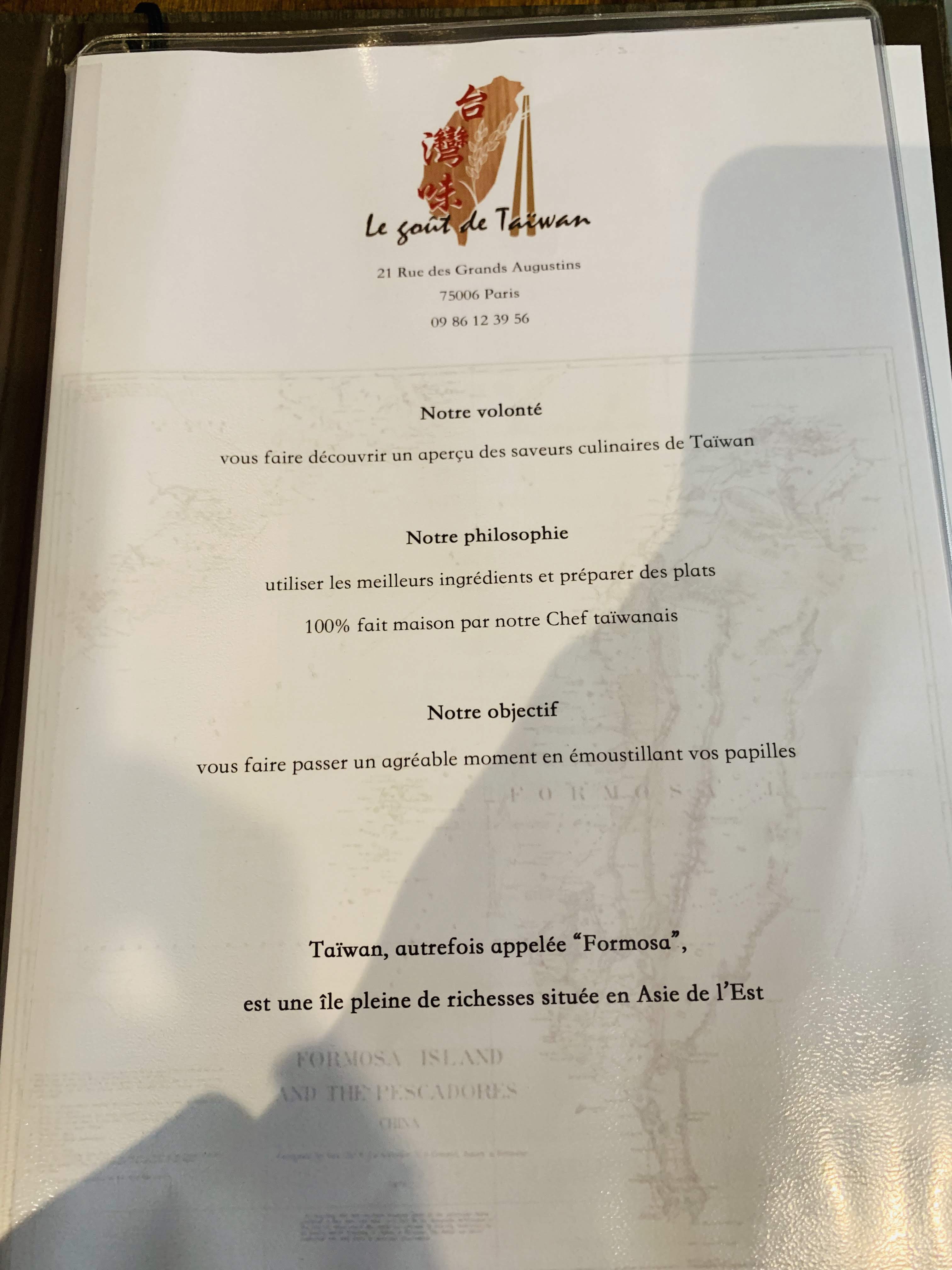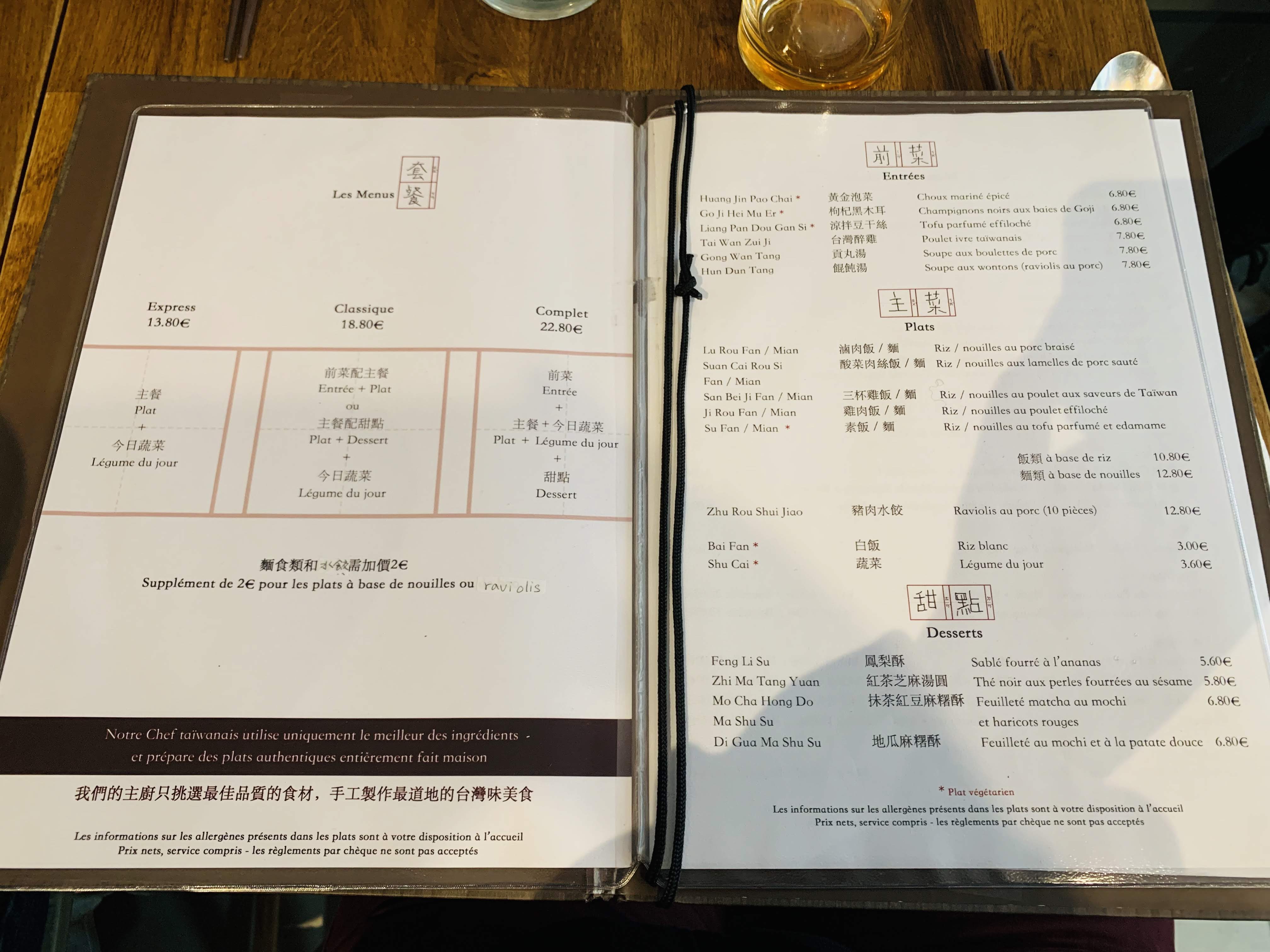 Petit restaurant taïwanais au cœur du quartier latin. Menu traditionnel plein de saveurs et pas trop long, ce qui est bon signe. Le service a été impeccable et la serveuse très cordiale et sympathique. Nous sommes sortis du restaurant avec le ventre plein et des conseils touristiques sur Taiwan. Restaurant à tester !