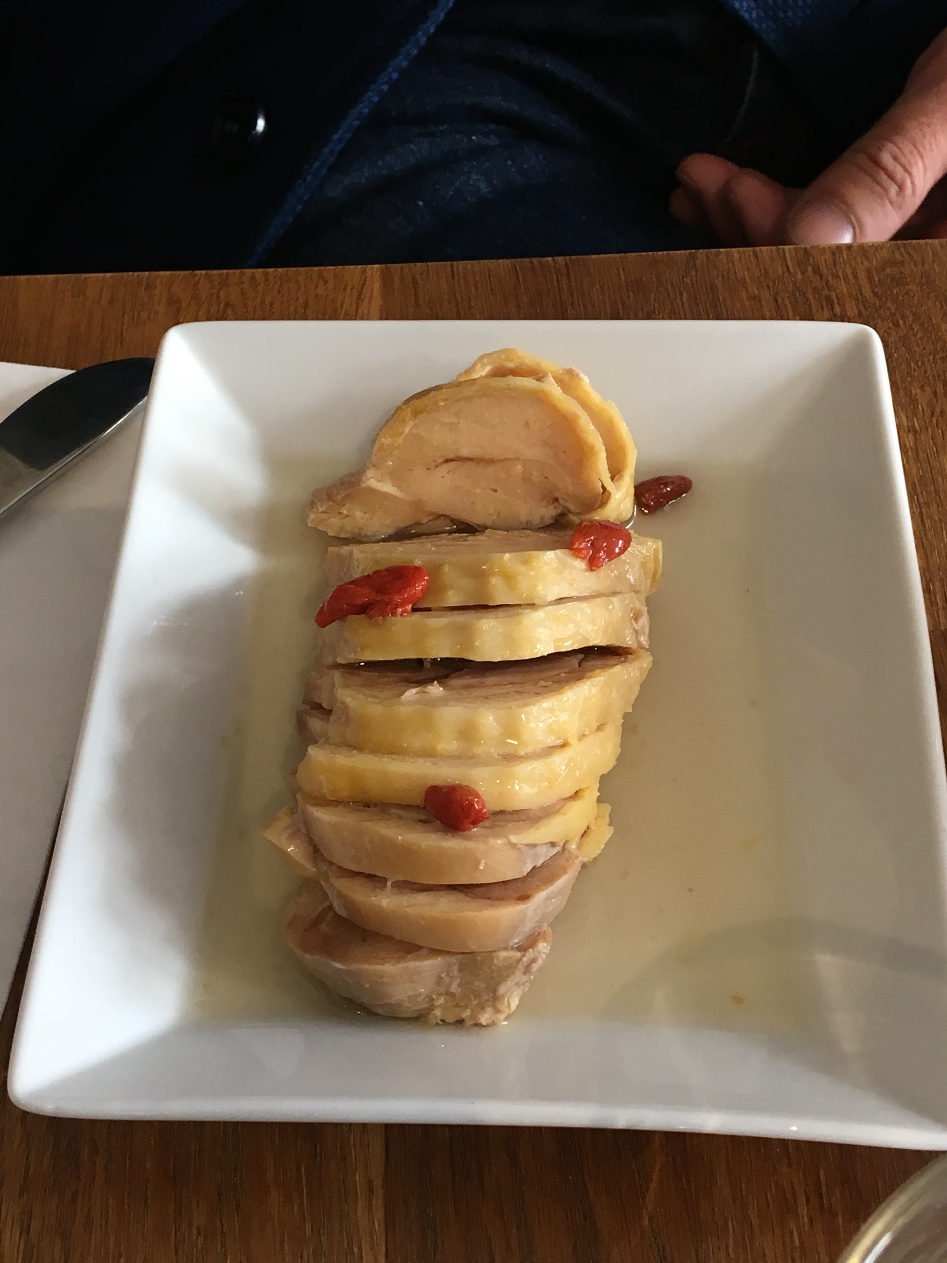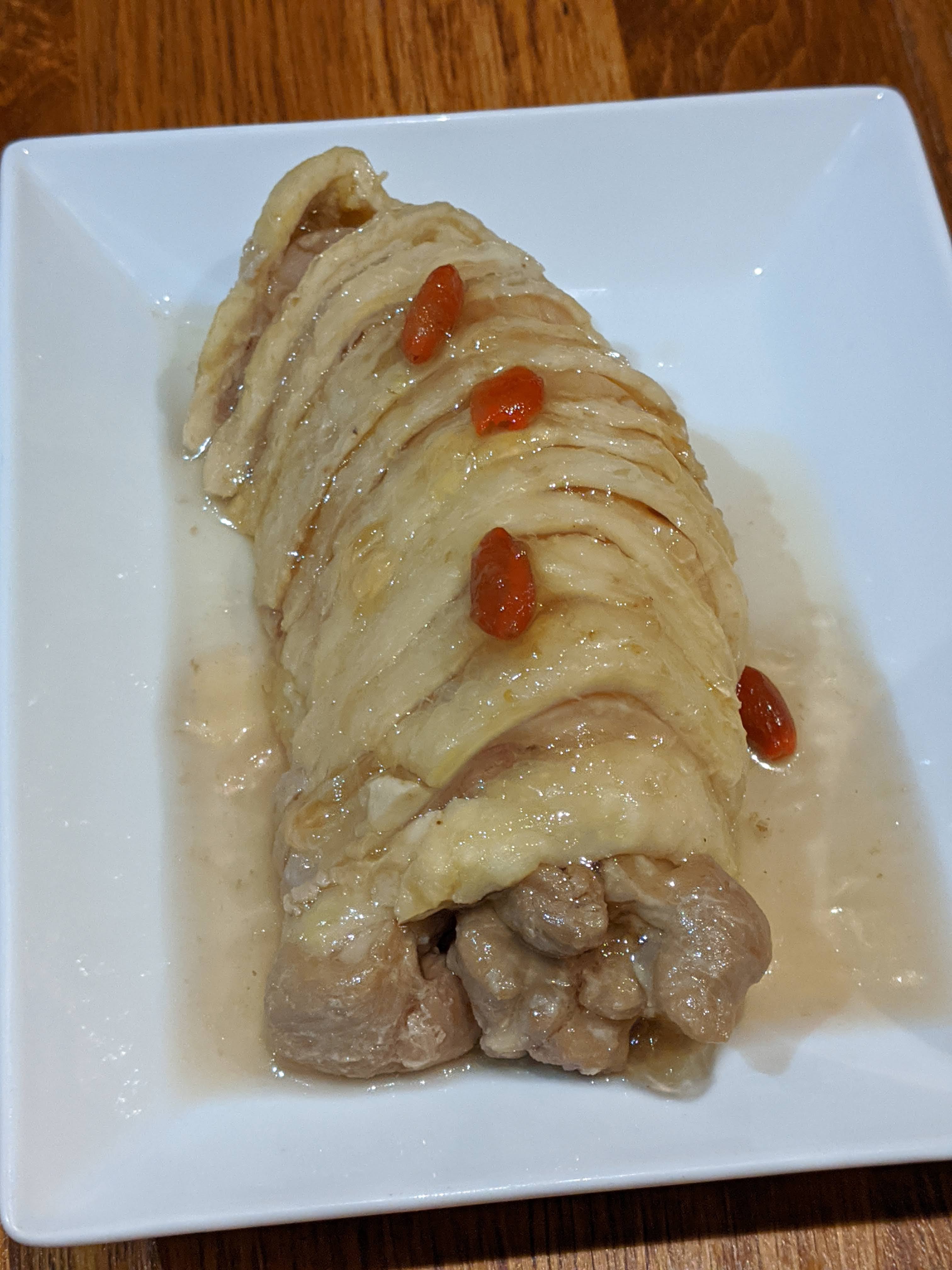Merci pour votre commentaire Alexia. Le poulet ivre en entrée est mijoté dans de l'alcool de riz avec un équilibre subtil. Trop d'alcool rendrait l'entrée trop amère. Je peux vous garantir que la gélatine présente sur le poulet est naturelle et provient de cette même cuisse. Les légumes changent régulièrement, et nous varions également les méthodes de préparation, en combinant des légumes au goût prononcé avec des légumes plus légers. A très bientôt, Le goût de Taïwan