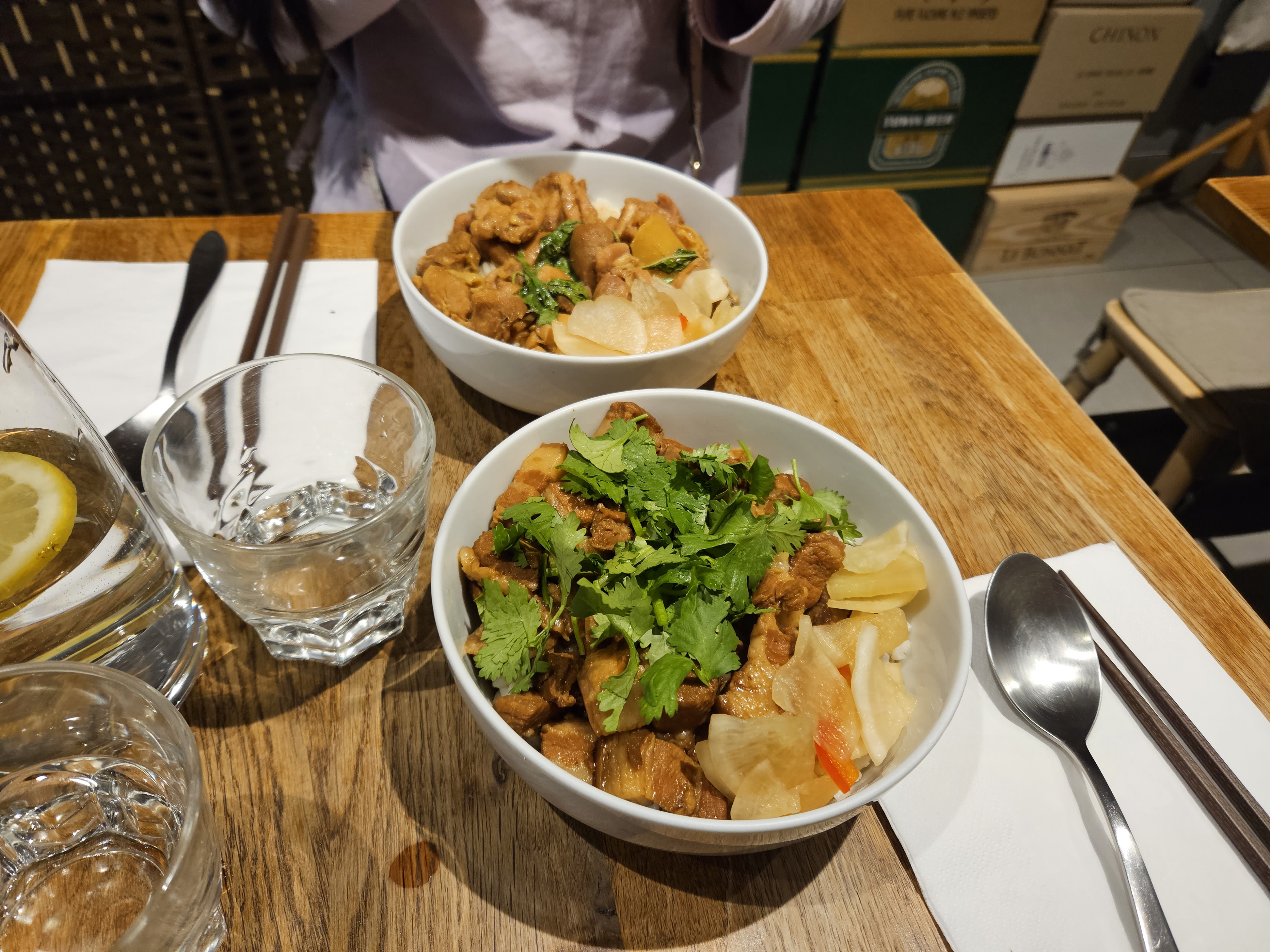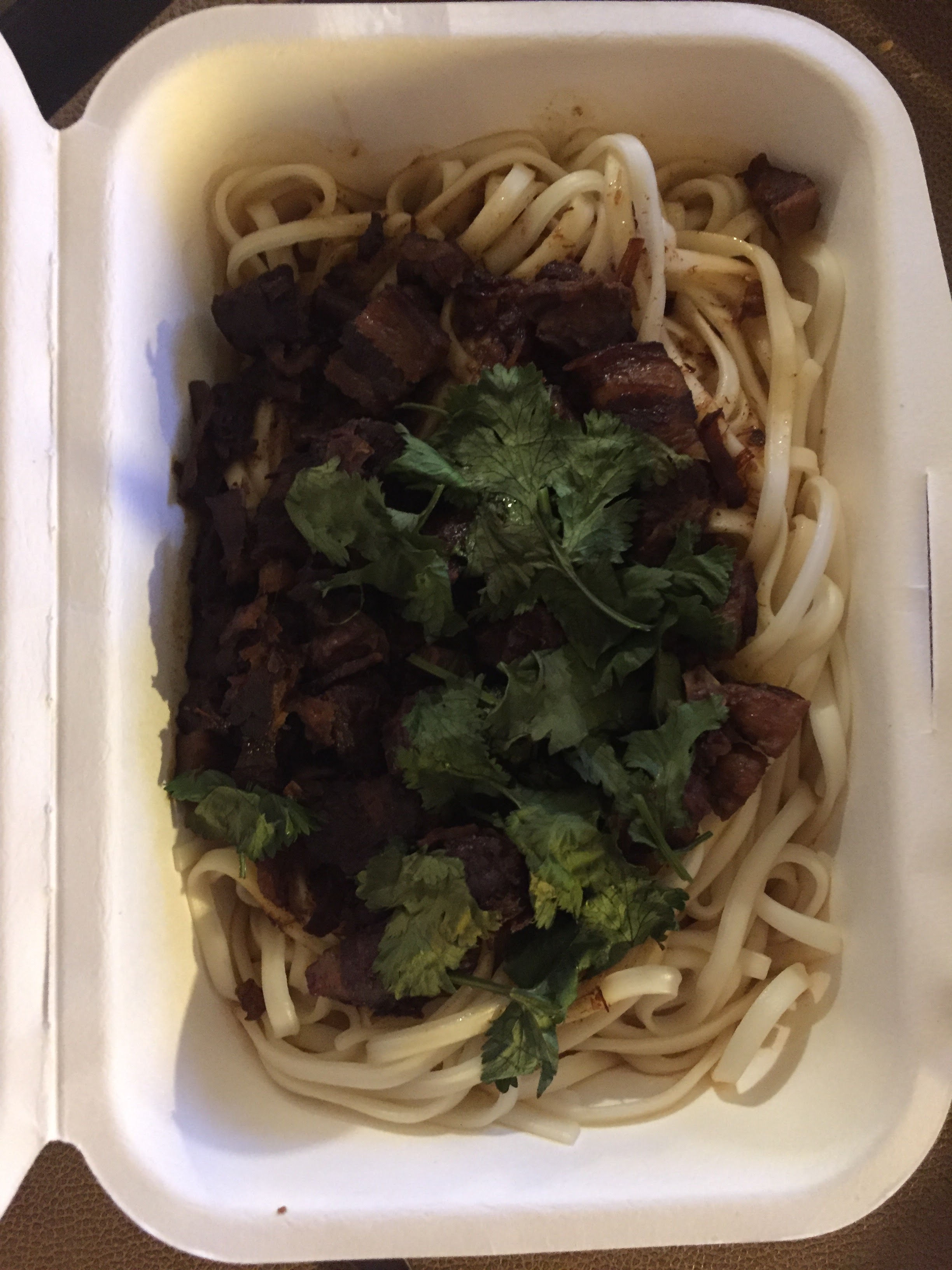 Je ne recommande pas du tout, payer très cher pour un plat huileux (nouilles et poulet façon Taïwan), des nouilles sans saveur et de la viande pleine de gras, très peu pour moi
