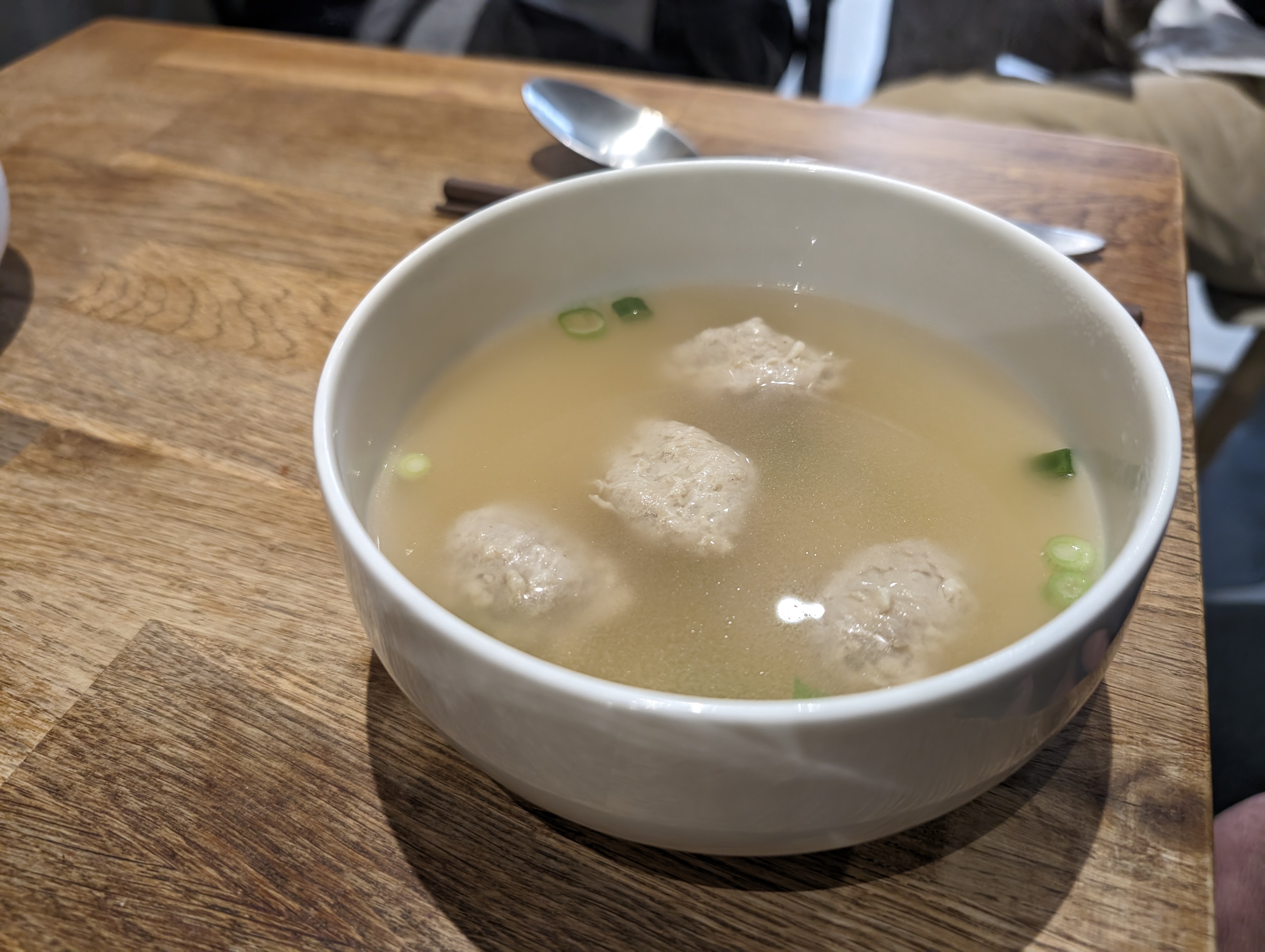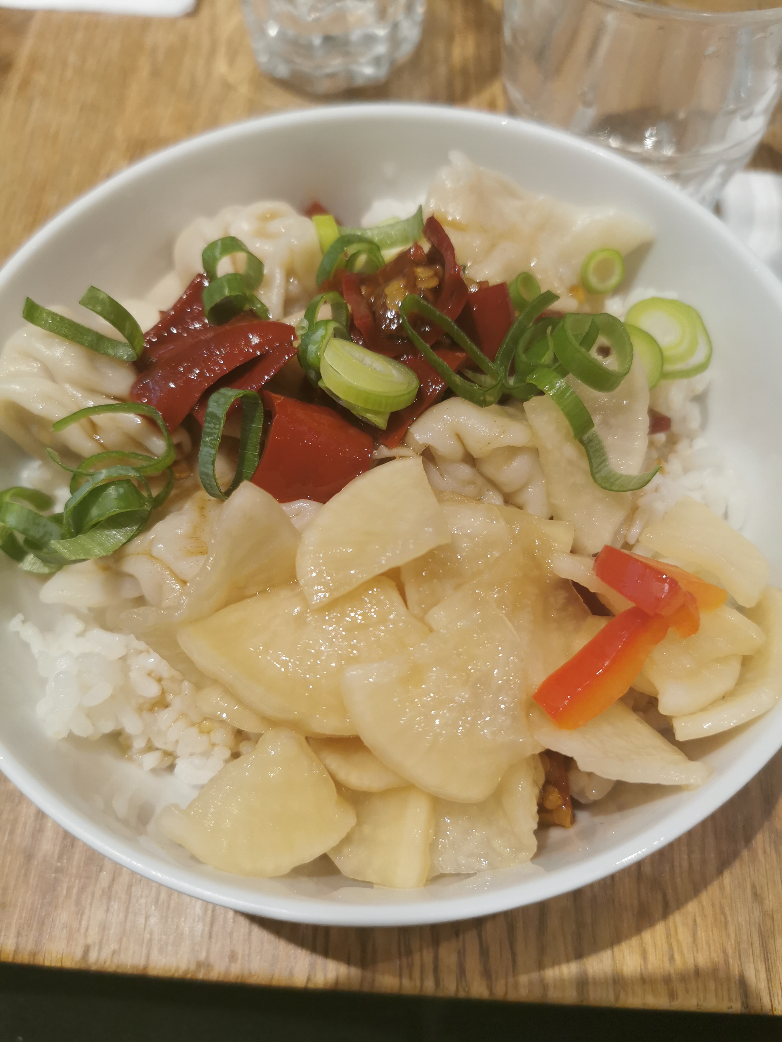 C'est le plus petit restaurant que j'ai vu de ma vie ! J'ai essayé les boulettes de soupe, la soupe wonton, les boulettes de viande et d'autres plats de riz. C'est comme si quelque chose manquait de goût. c'est trop cher pour 6 petites boulettes à 13 €. Il n'y a pas de soupe à l'intérieur des boulettes de soupe ! Le dessert au moka est incroyable.