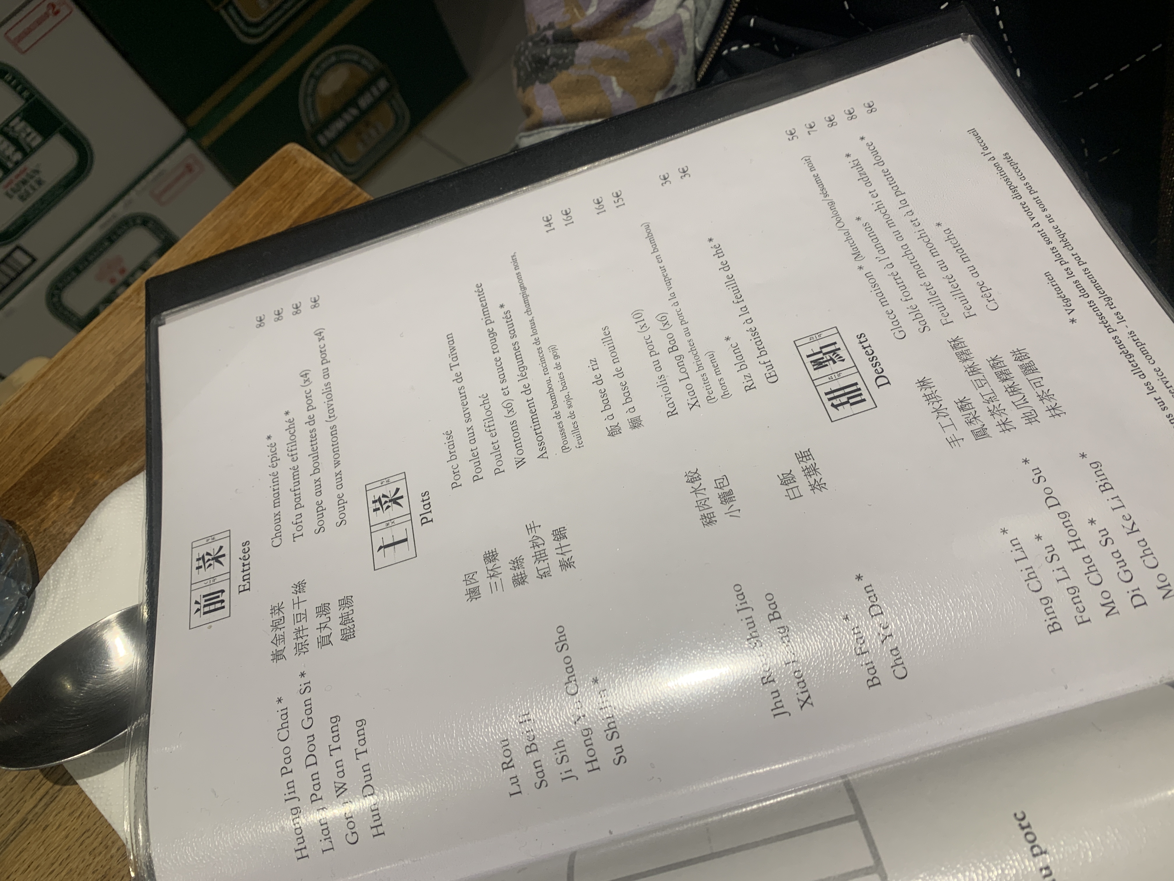 Super super bon ! Le service est bien et tous les plats sont fait maison ! Je recommande les champignons noirs en entrée c'est excellent. Le porc ivre est assez décevant on ne sent pas assez gout de l'alcool utiliser et beaucoup de gélatine. Le bouillon est plutôt bon. Le hamburger au porc est esquis ! Et est bien fournie. Le pain speciale à la vapeur est une vraie découverte ! J'avais pris des légumes en plus mais je ne recommande pas du tout c'était des légumes simplement cuit à la vapeur sans quelconque assaisonnement particulier. Je n'ai pas pris de dessert. La formule pour l'entre +plat avec légume = était entré 18€ et 21€