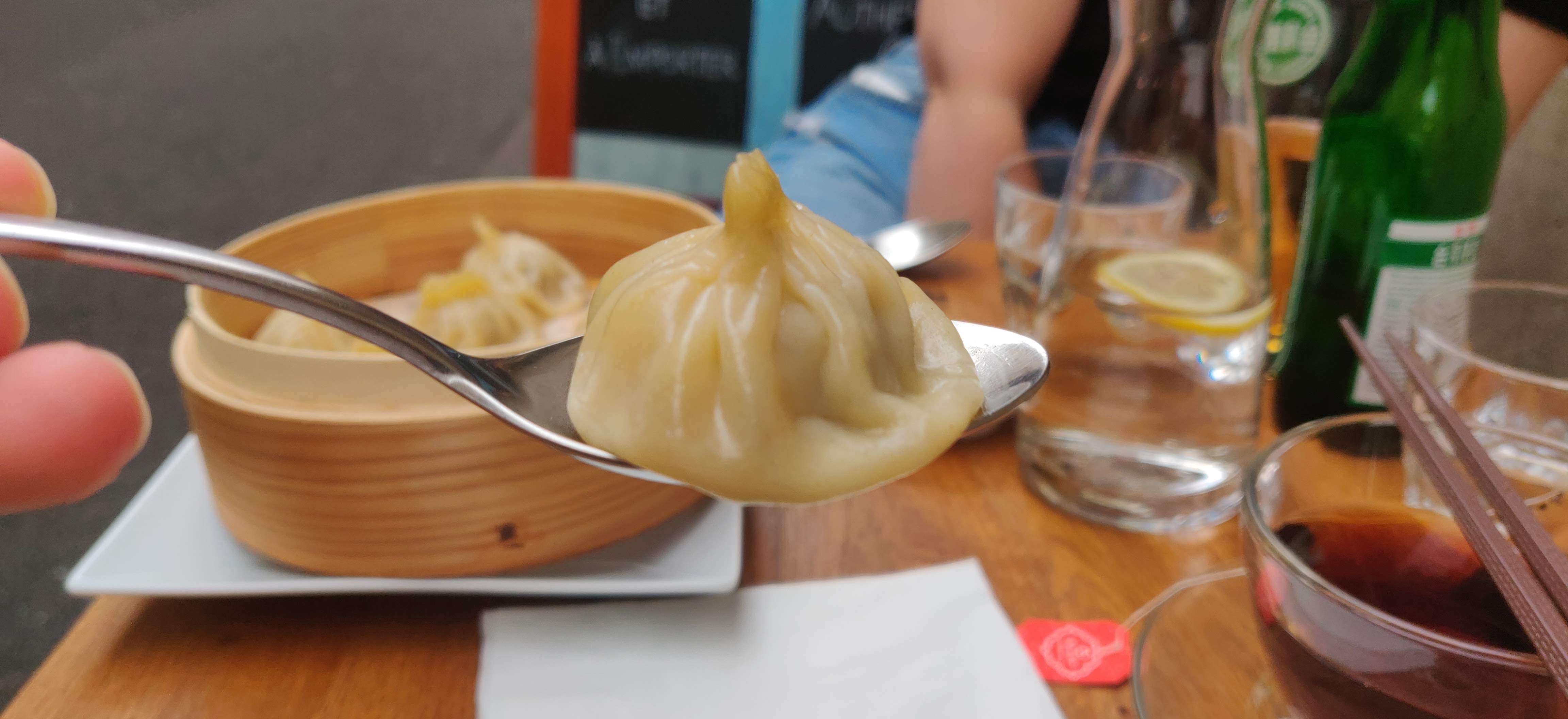 Tout en fraîcheur. Elles sont deux, fières de leur pays. Tout est fait sur place et cela donne des madeleines de Proust. Le vin est très bon et pas cher. Xiaolongbao, œuf braisé à la feuille de thé, nouilles au porc braisé. Rue iconique qui justifie le déplacement.