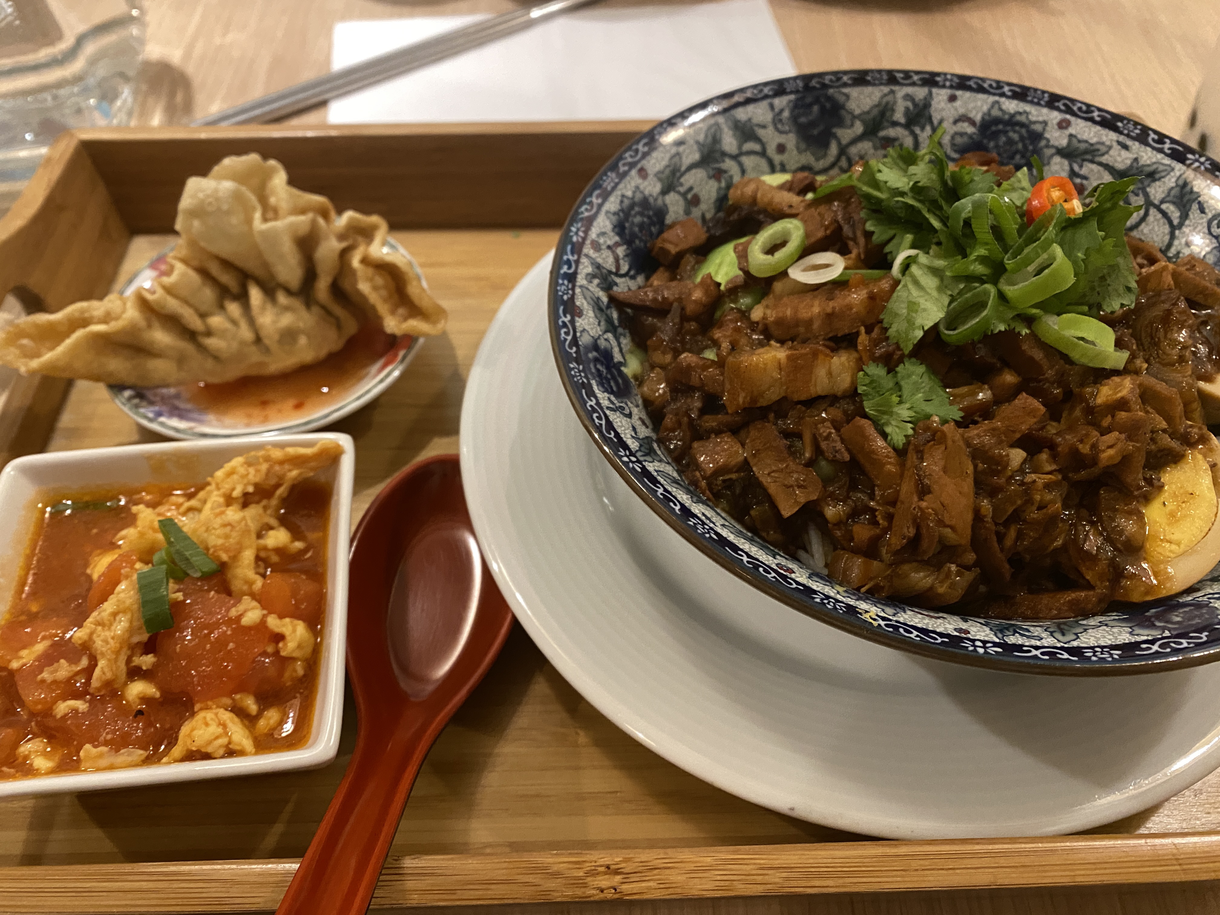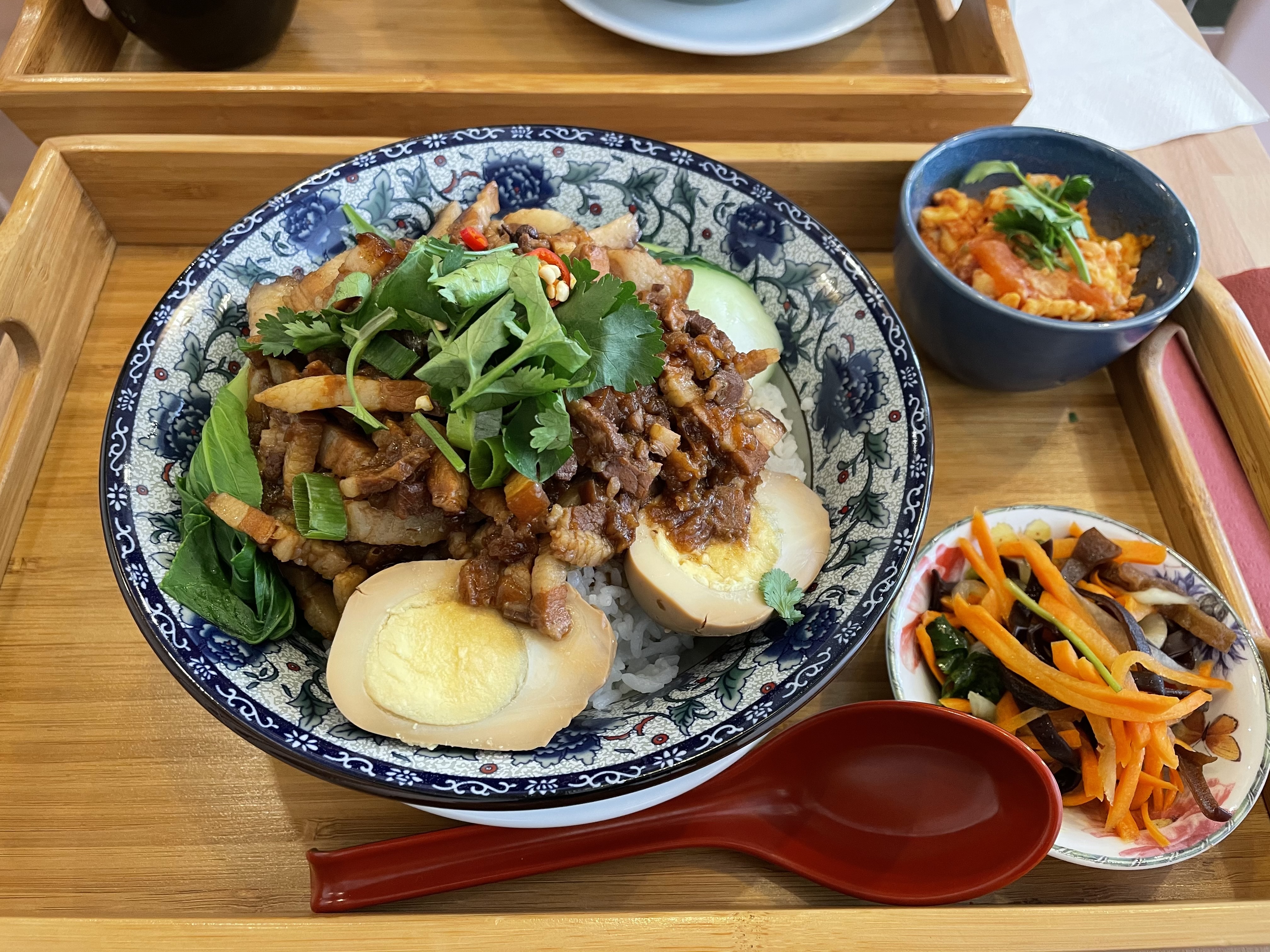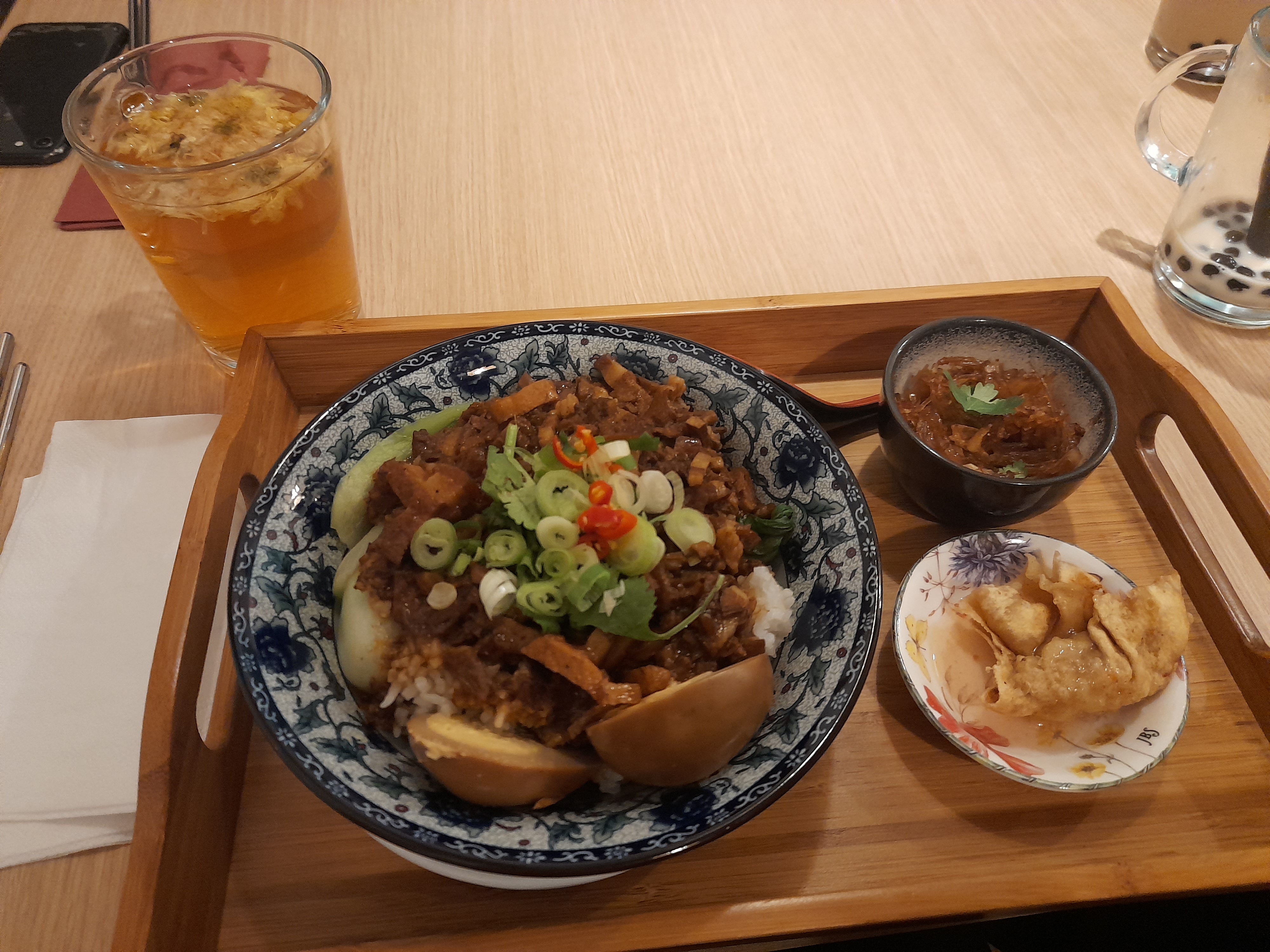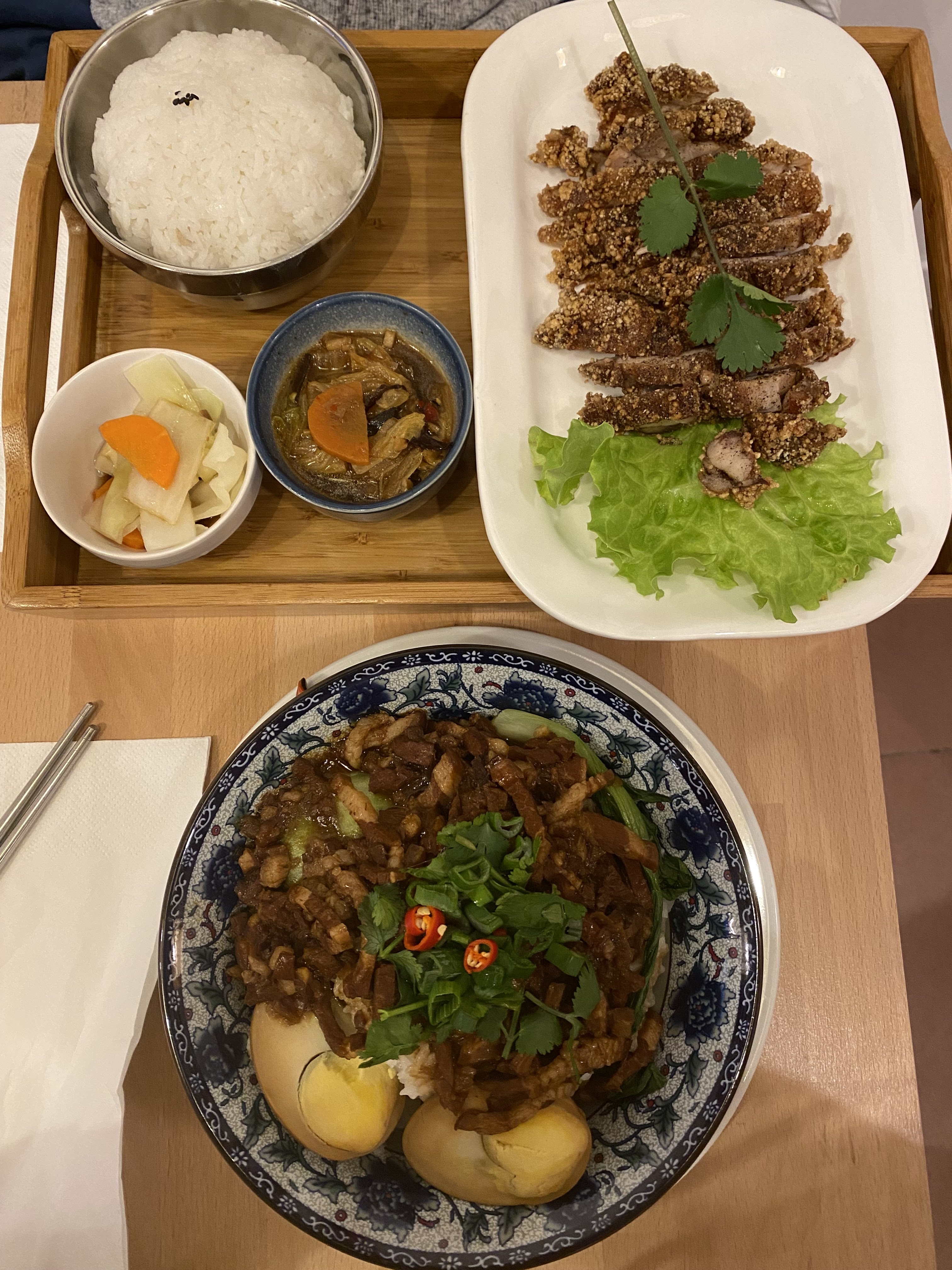 Goût personnel : le riz au porc braisé est trop salé😭 Prestations : Très bien