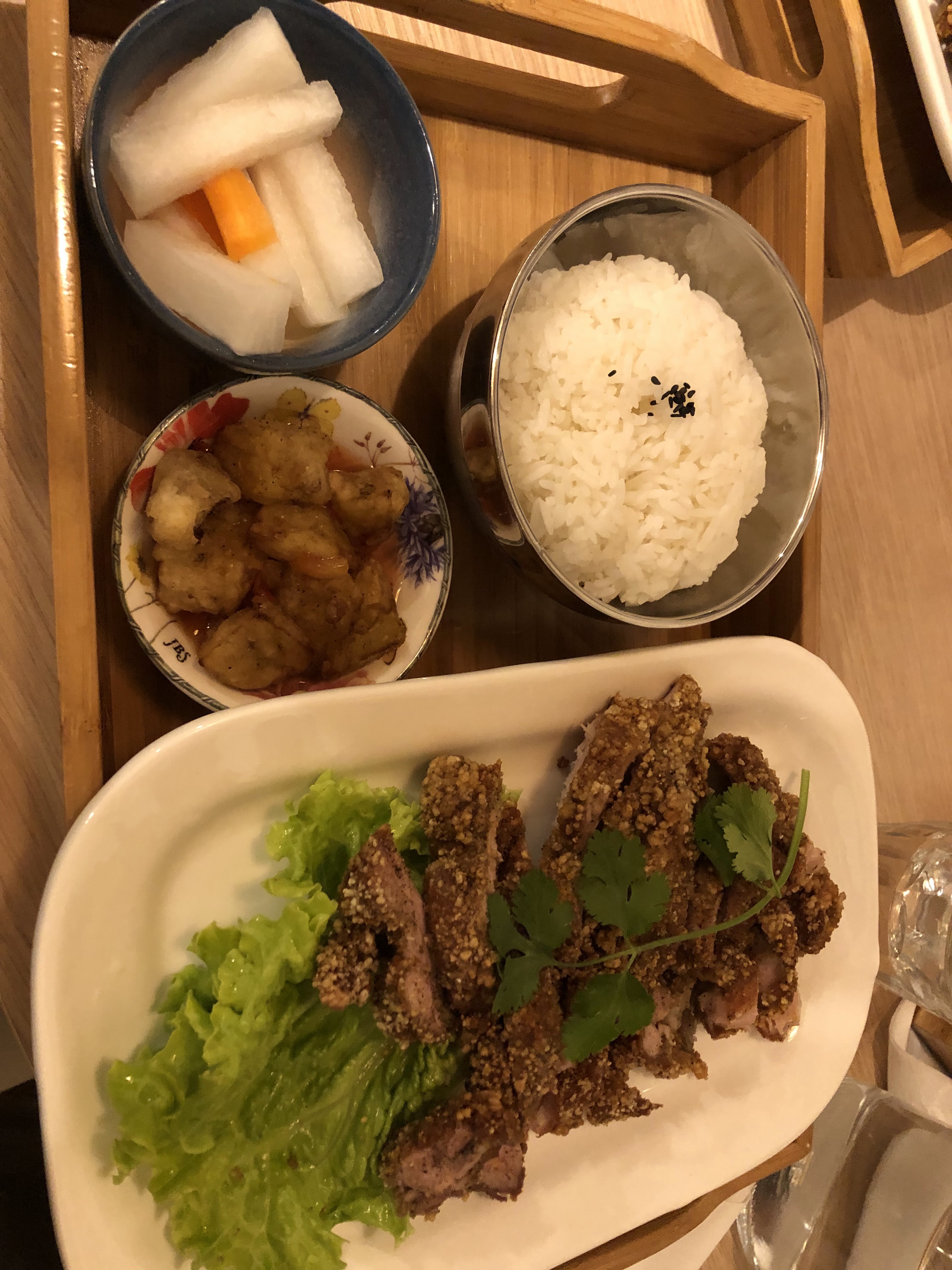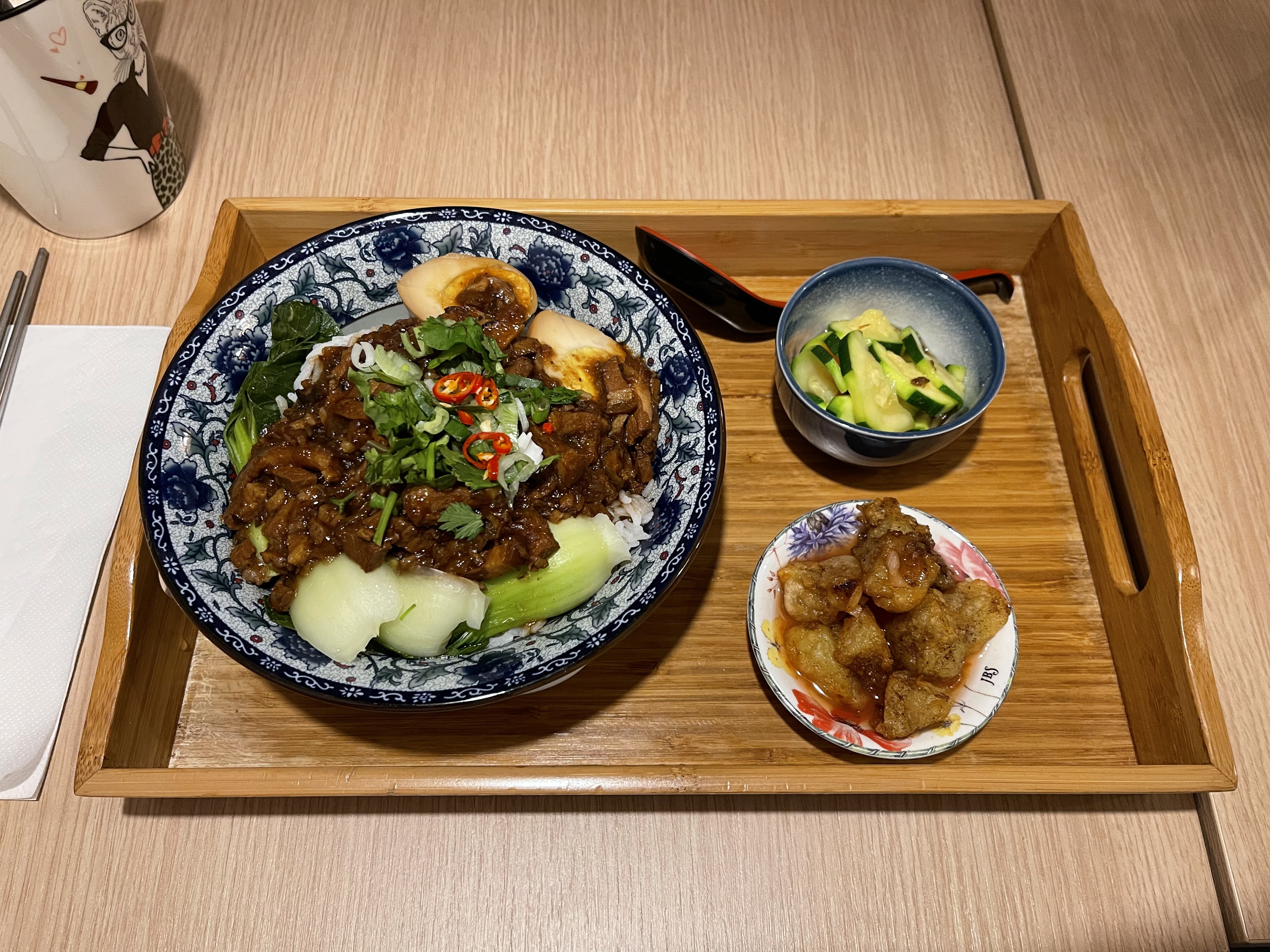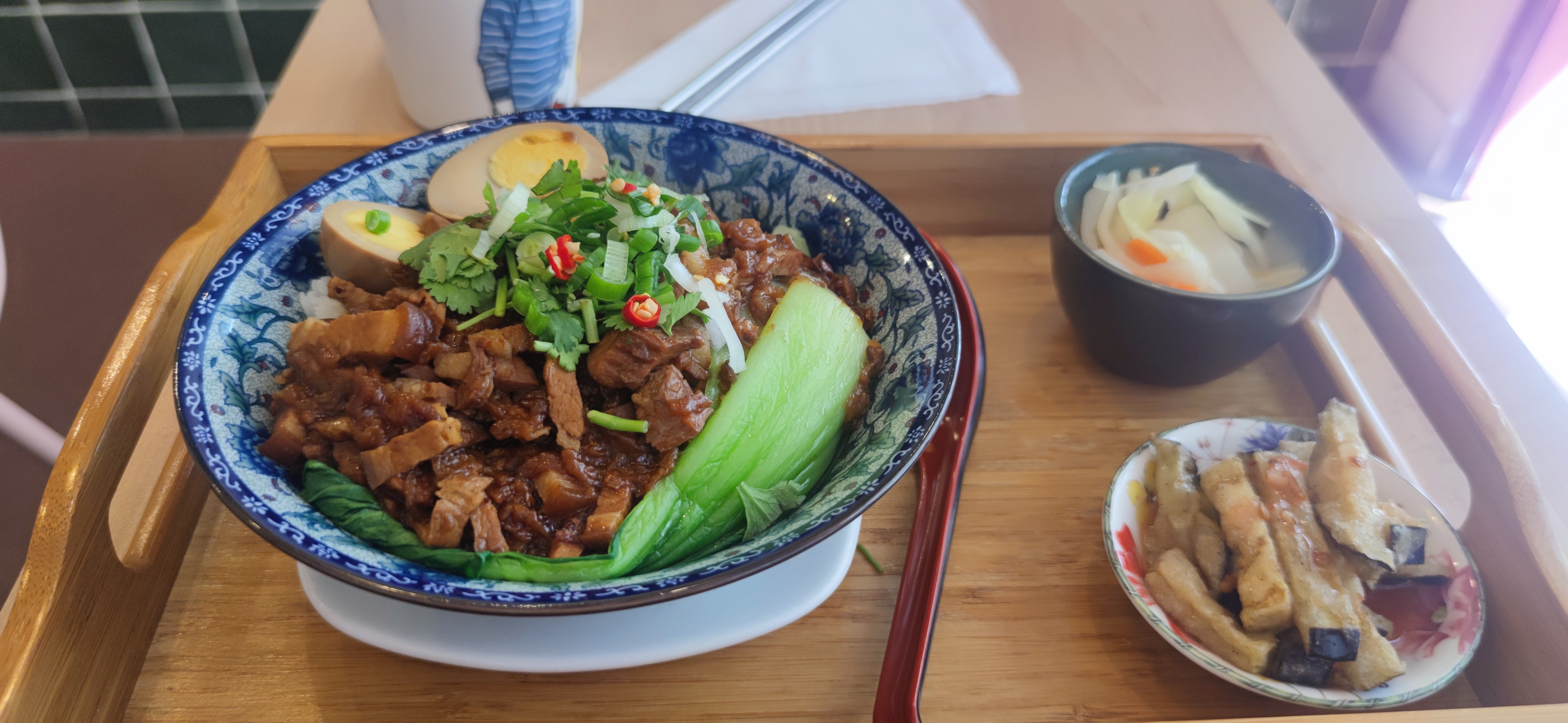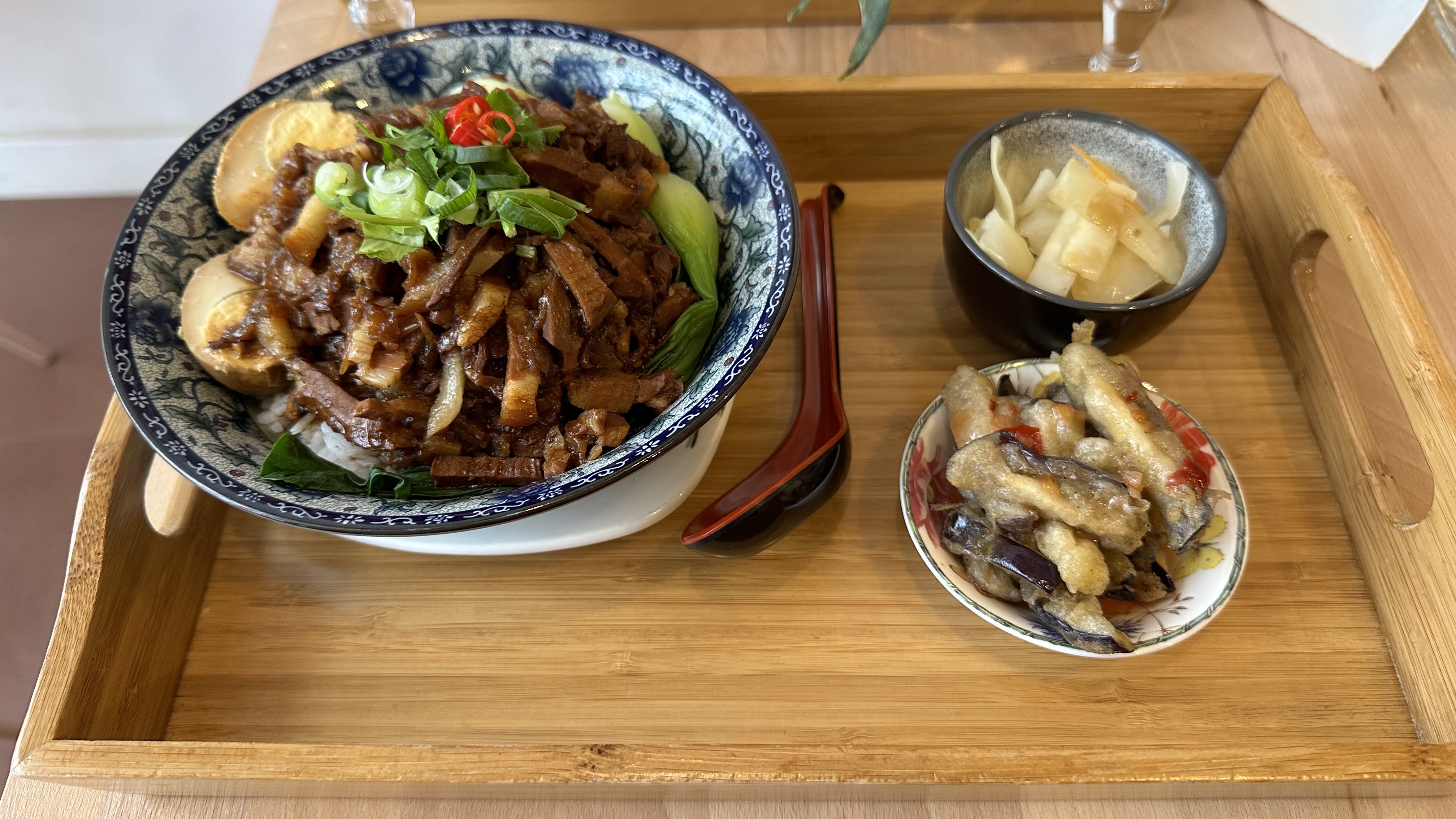 Goût personnel : le riz au porc braisé est trop salé😭 Prestations : Très bien
