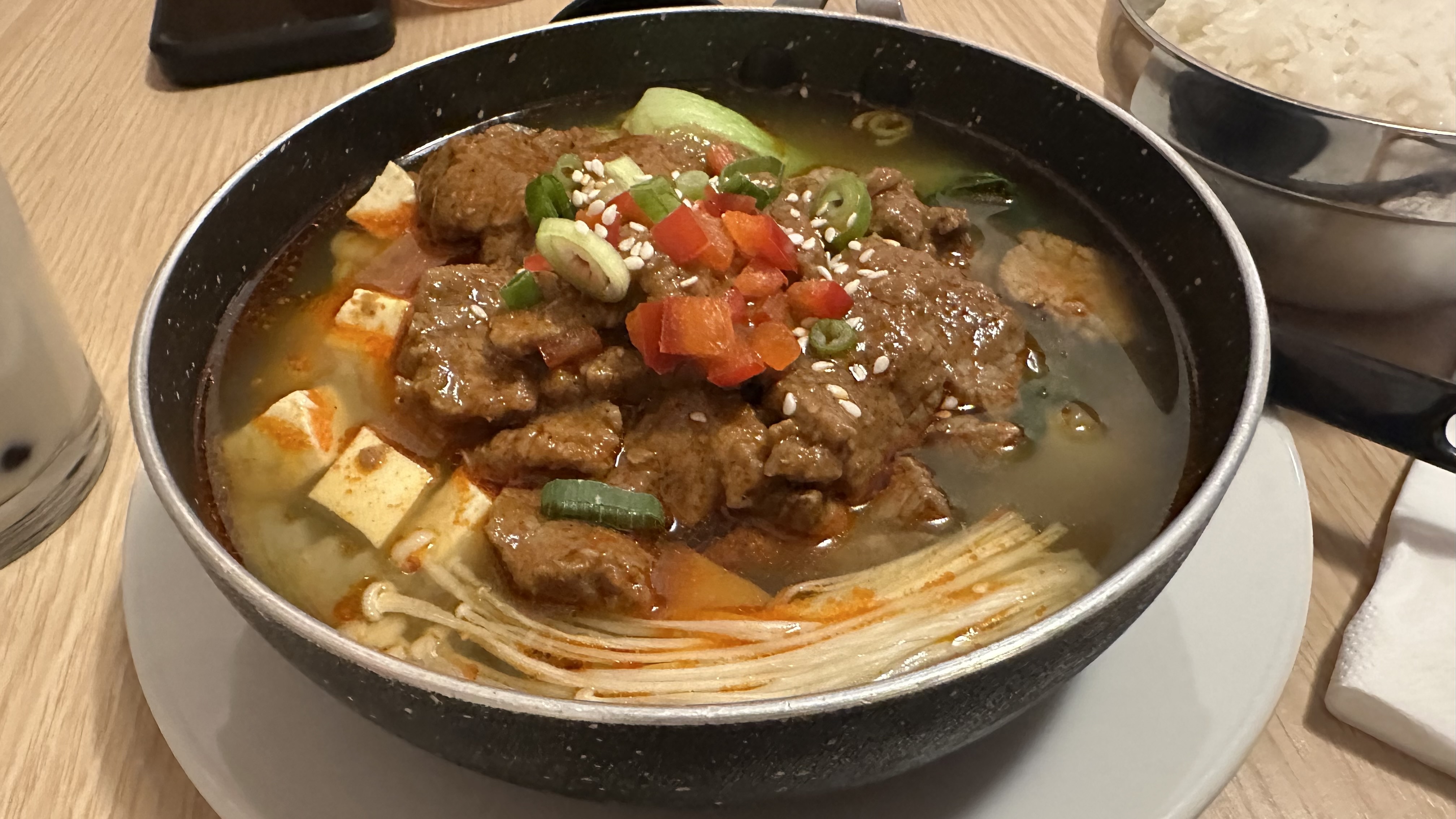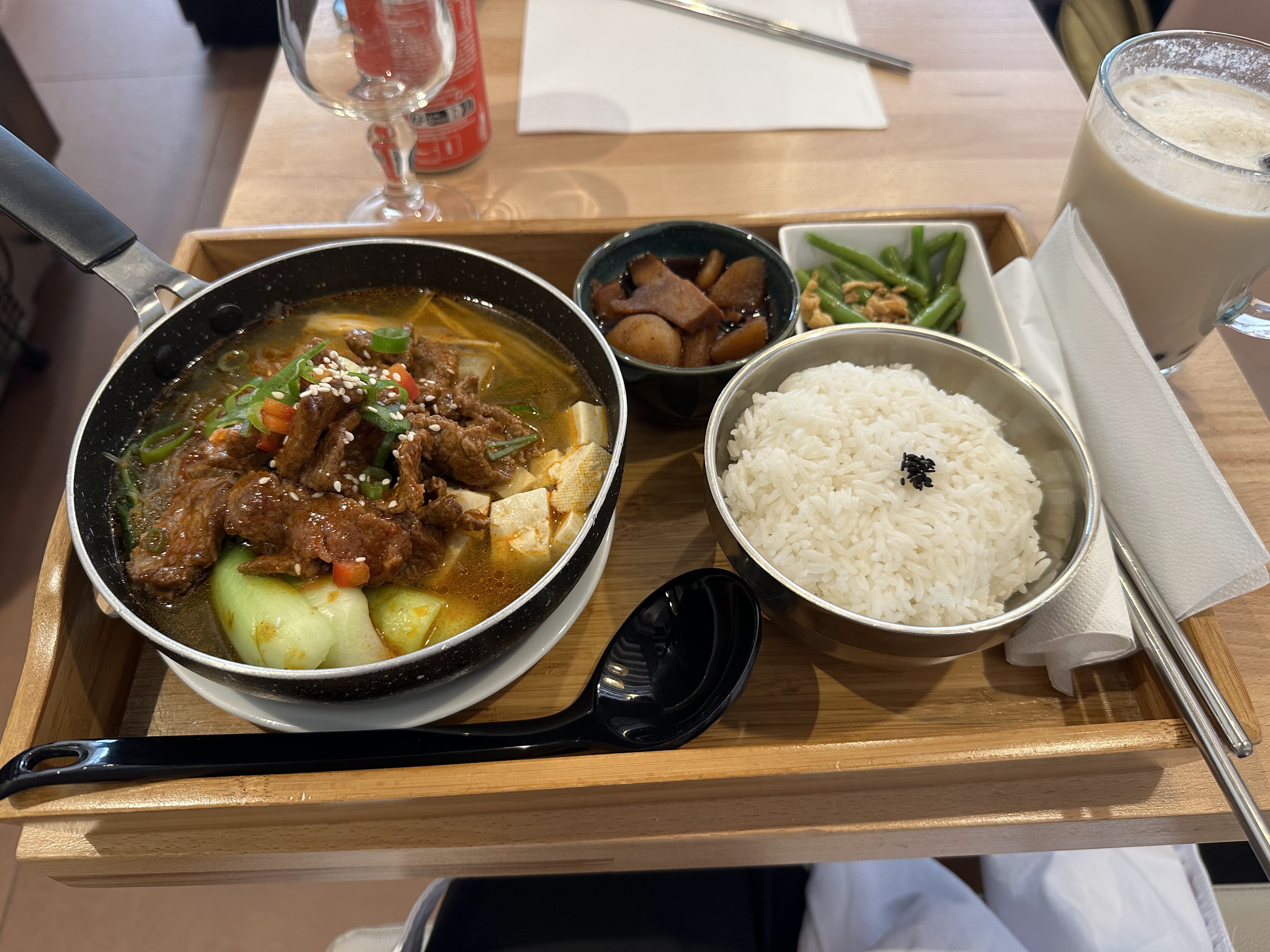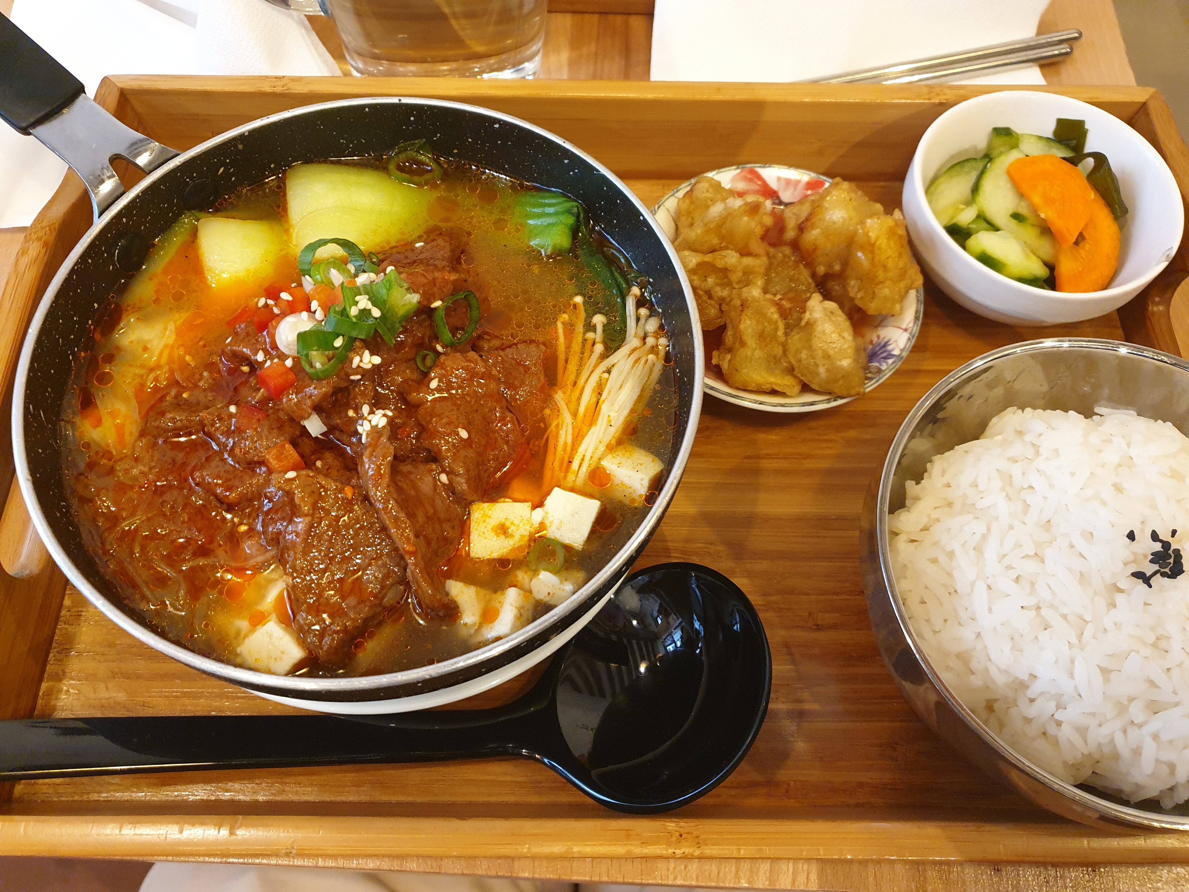 Ambiance vraiment conviviale, calme et cosy. C'est comme une nourriture préparée avec beaucoup d'efforts. Cela a en fait le goût d’un repas cuisiné à la maison. Cela ne correspondait tout simplement pas à mon goût... Que puis-je dire du ragoût de bœuf (?). Il a le goût d'une soupe de radis au bœuf fade à la manière du Gyeongsang-do.