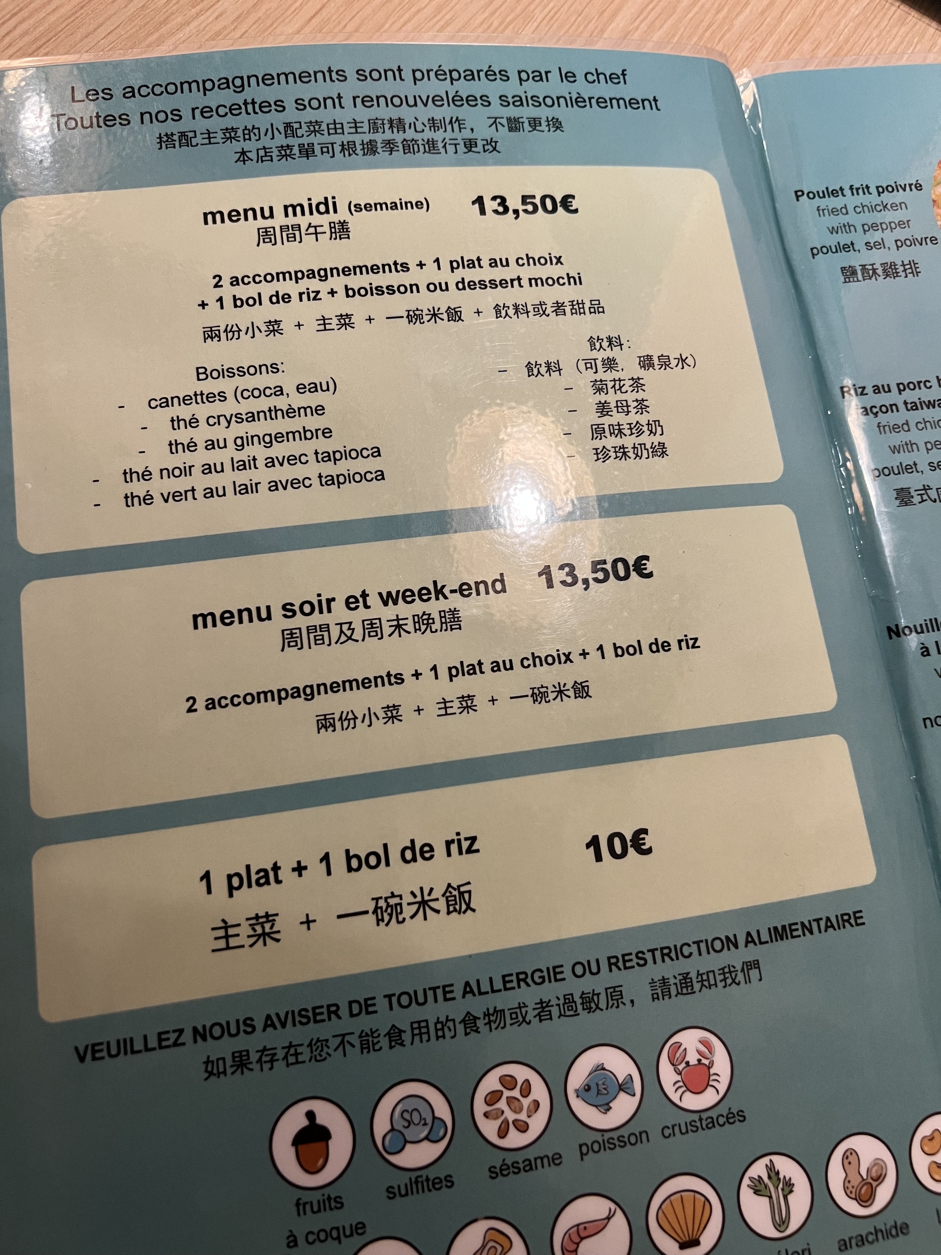 Petit restaurant taiwanais, qui propose des menus à très bon rapport qualité-prix. Le service était très rapide :) Je recommande !