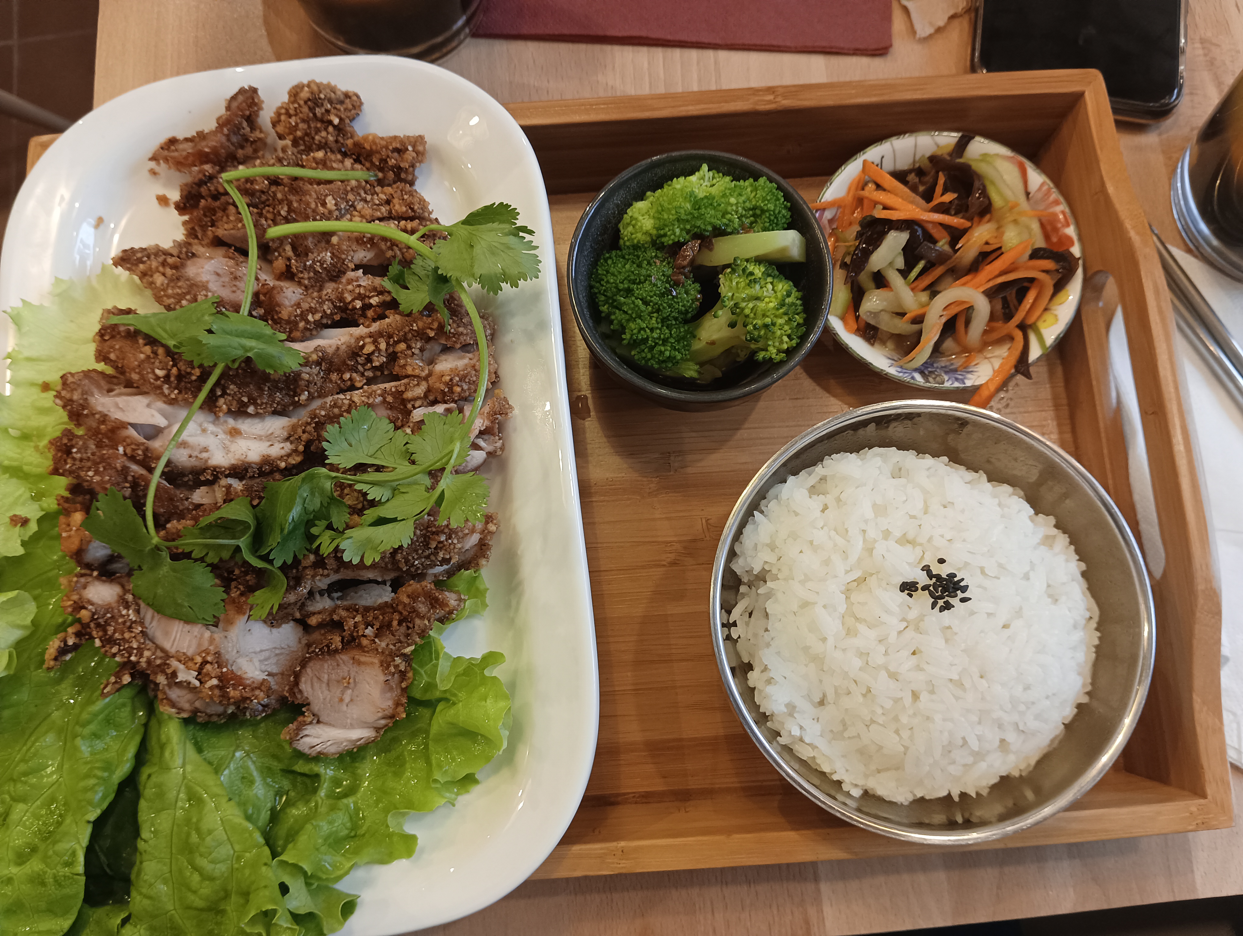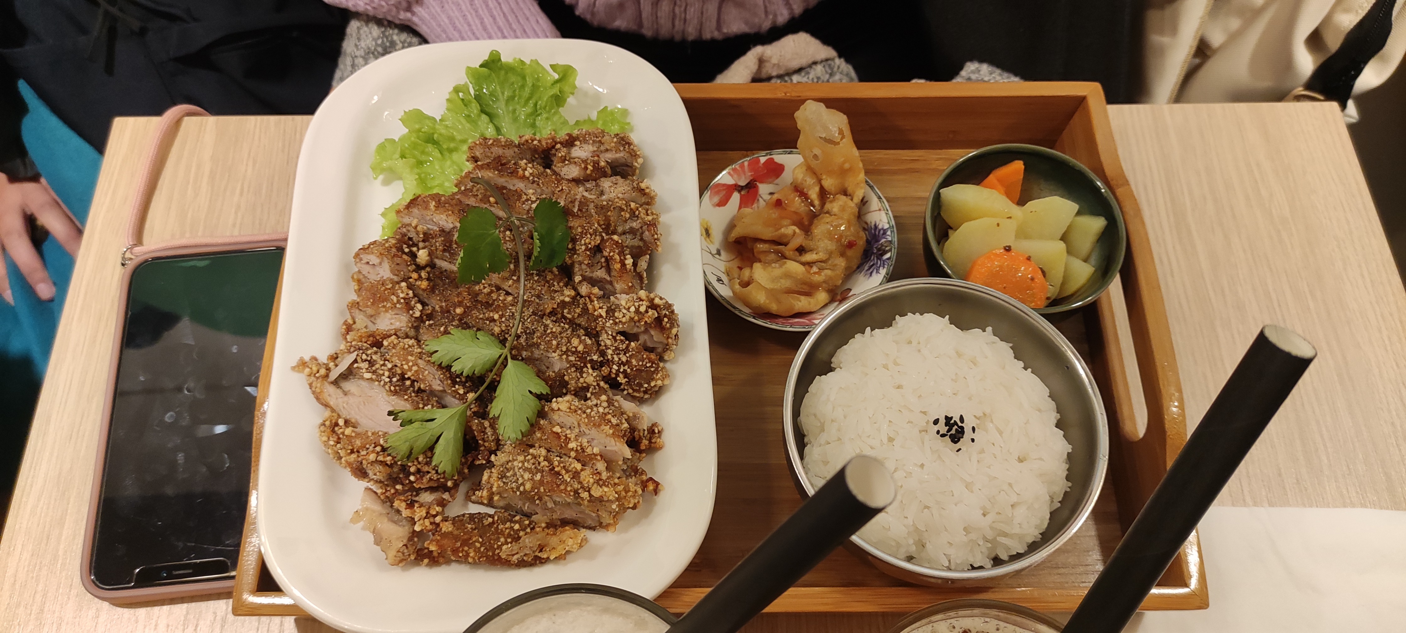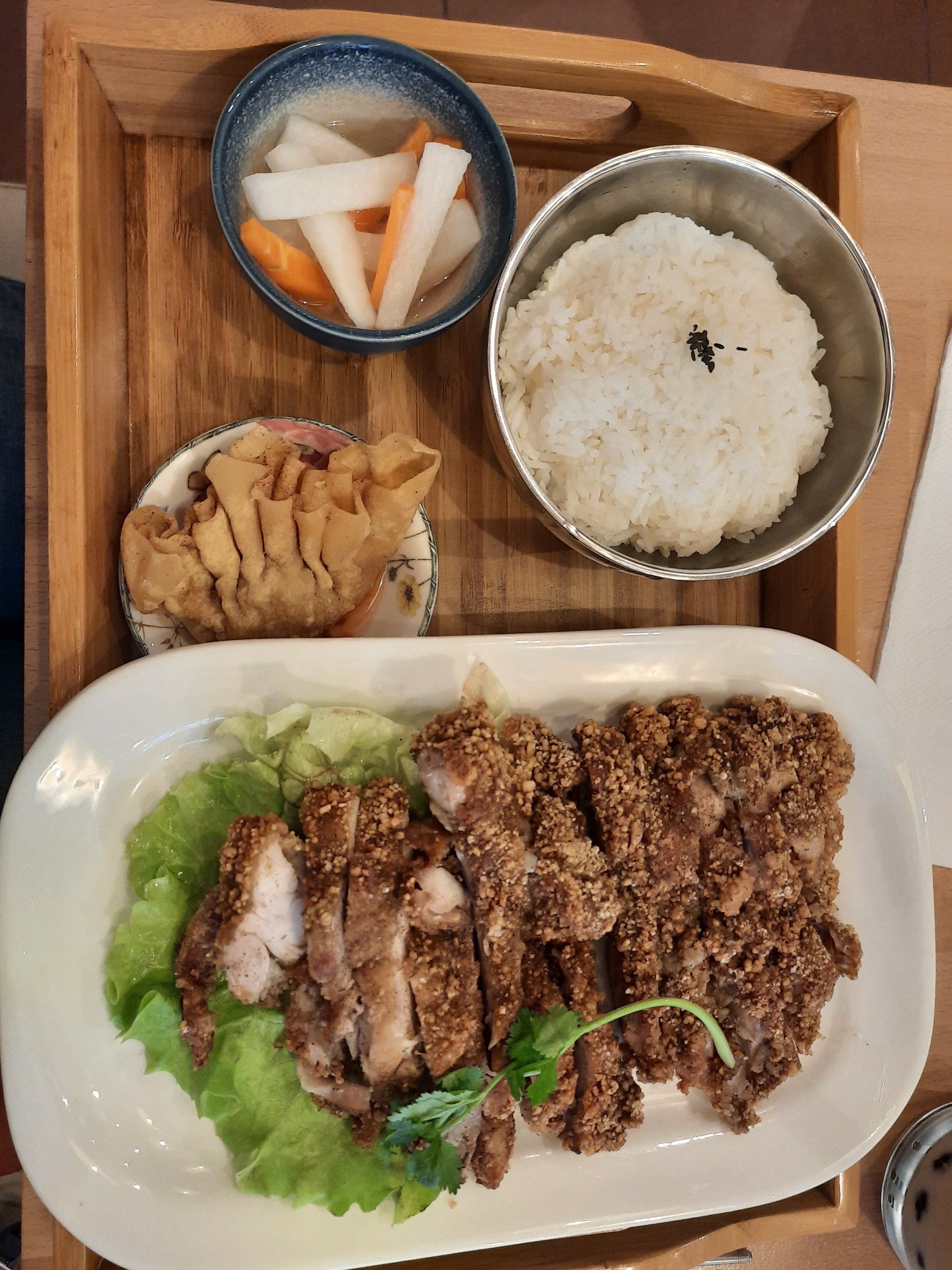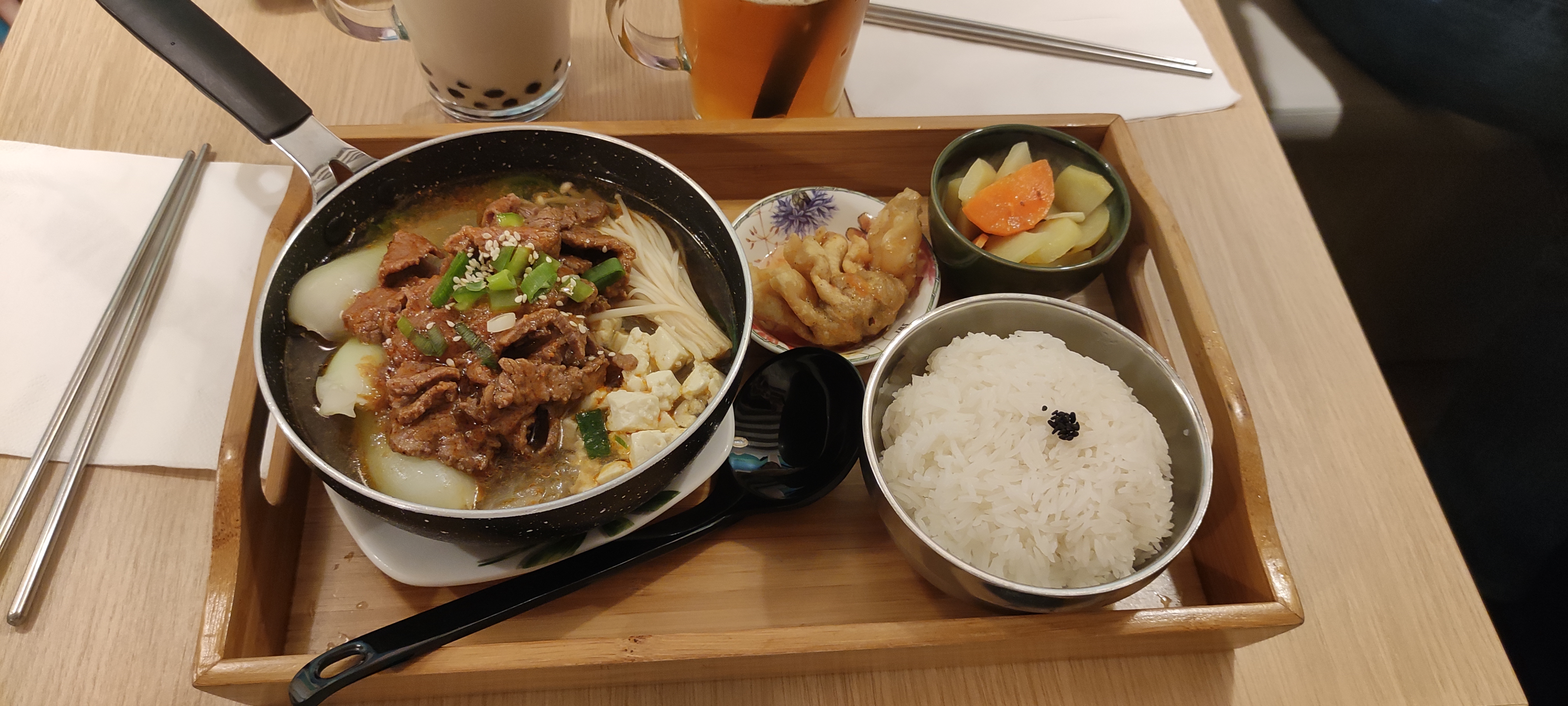 Nous avons été super bien accueillies et nous avons adoré notre plat. Le poulet croustillant était très bon et généreux. Le petit plateau est très bien pensé et suffit à bien remplir un estomac ! Nous avons pris un bubble tea pour finir qui était très bon, et pas trop sucré. Le service était adorable et nous avons convenu que nous reviendrons ! Merci pour le service ❤️