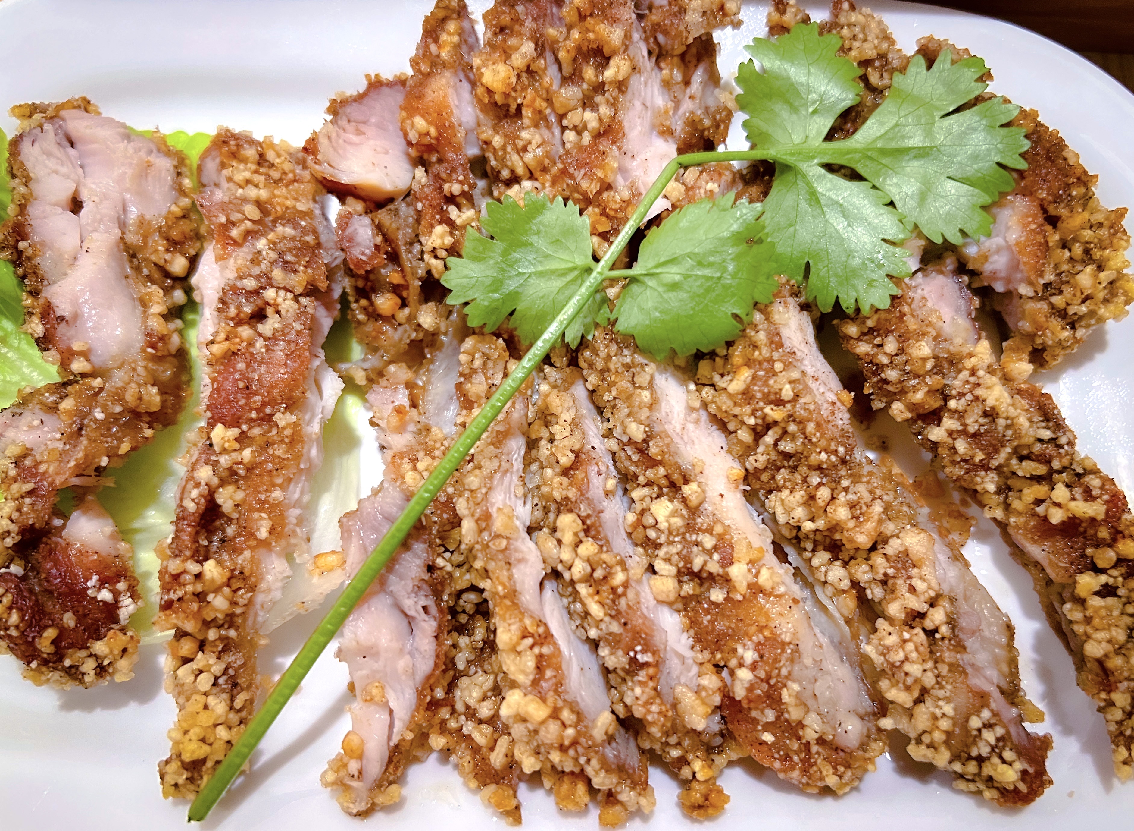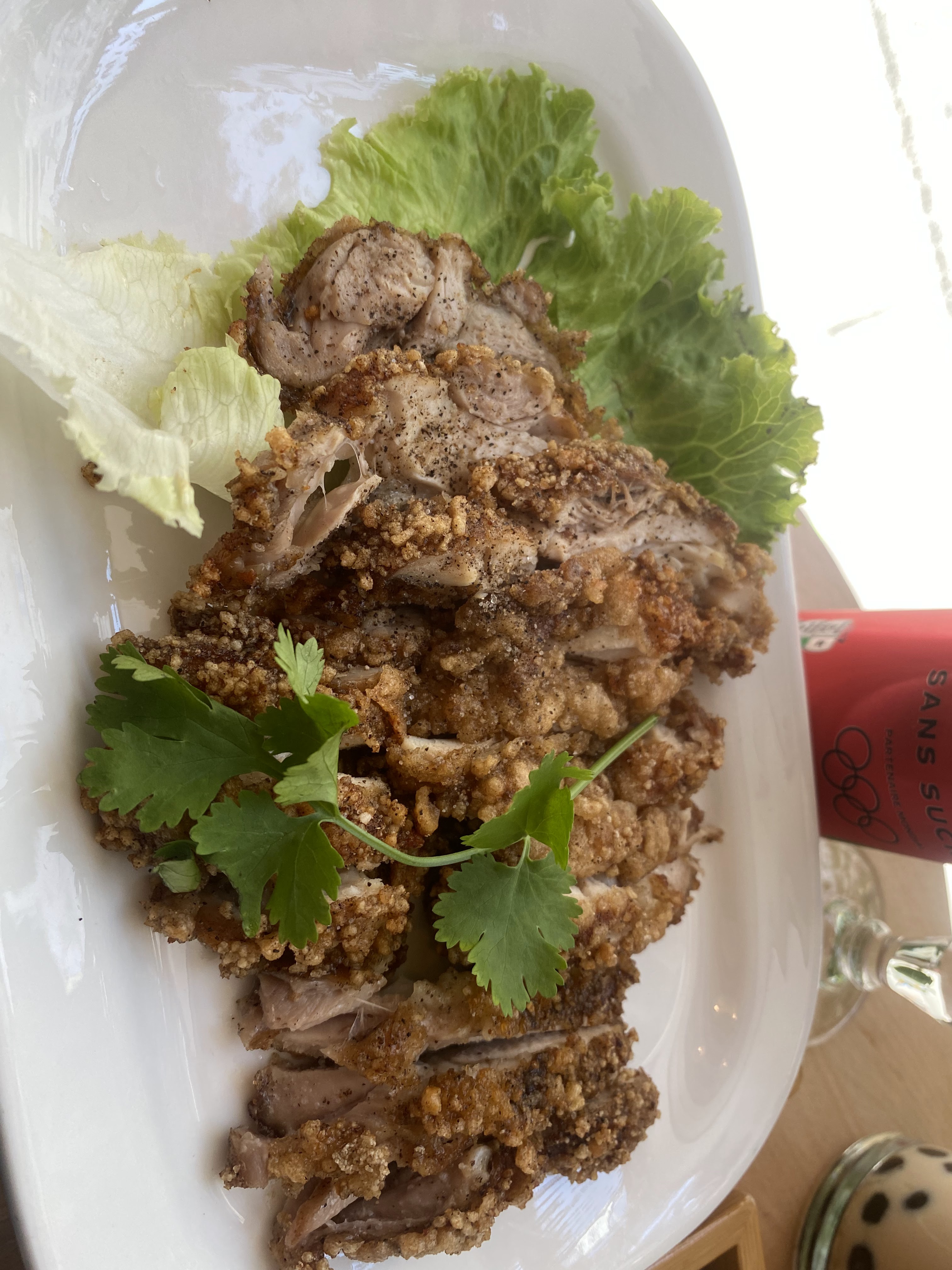 Le poulet frit est très croustillant. L'accueil est très chaleureux, personnels à votre entière disposition, aimable. Cadre agréable et prix très raisonnable pour cette qualité.