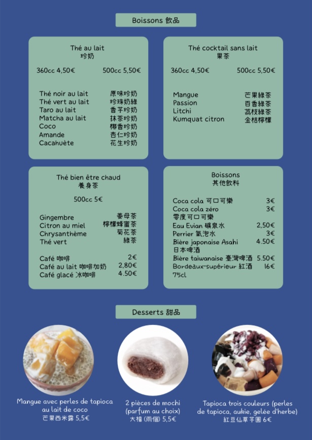 Bonne nouvelle , le restaurant Momo qui régalait par sa cuisine créative Taïwanaise le quartier Opéra a rouvert cette fois ci dans le quartier Mouffetard tout près du Panthéon. Les plats sont toujours aussi frais et bons ( cabillaud vapeur, marmite boeuf sate, riz au porc haché...). Excellent accueil avec la même ambiance familiale. Et puis 2eme bonne nouvelle, on a retrouvé d'excellents bubble tea dans le quartier.