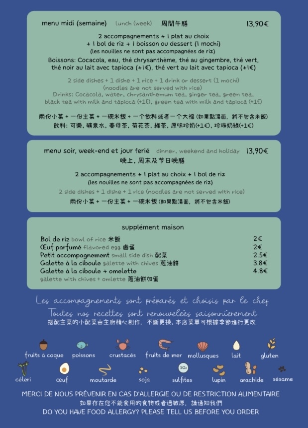 Il y a peu de restos asiatiques à paris que j’adore mais celui-ci fait partie de ma liste (très) courte. Les plats ressemblent ceux de ma grand-mère - je n’ai jamais trouvé ailleurs un plat poisson si délicat et souple. Les propriétaires sont très sympas et je reviendrais avec plaisir.