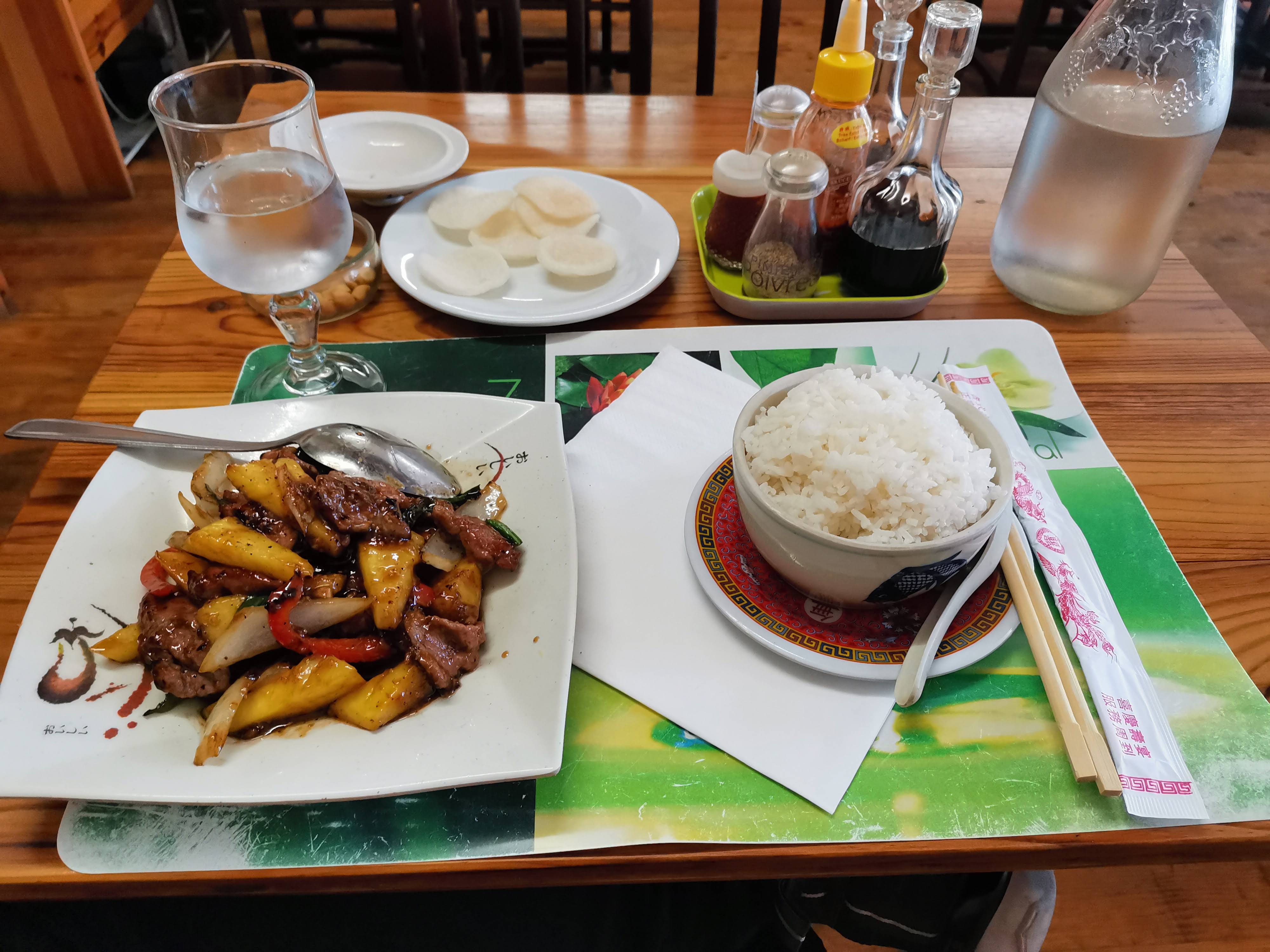 D'extérieur ça ne paye pas de mine, mais c'est vraiment très bon.😋 En quantité, il y a suffisamment dans les assiettes ! Par contre, l'attente a été un peu longue entre l'entrée et le plat (environ 40 min). J'ai payé 27,40 € pour une entrée + plat (avec riz cantonais) + une boisson. Bonne expérience tout de même de ce restaurant.