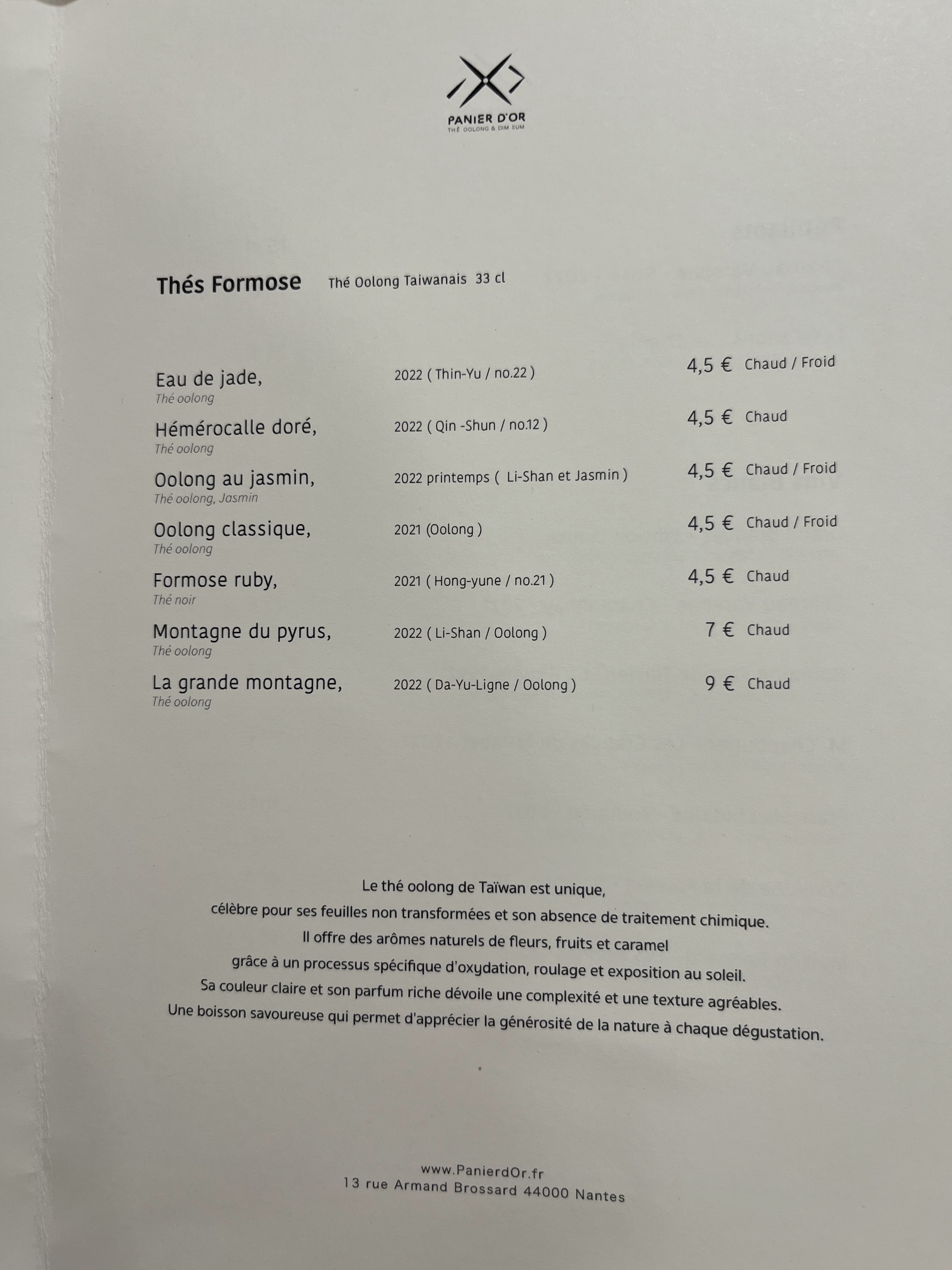 Vraiment parfait, un service chaleureux et ultra pro, des explications précises, des thés formidables, une carte exquise. Merci et longue vie au panier d'or !